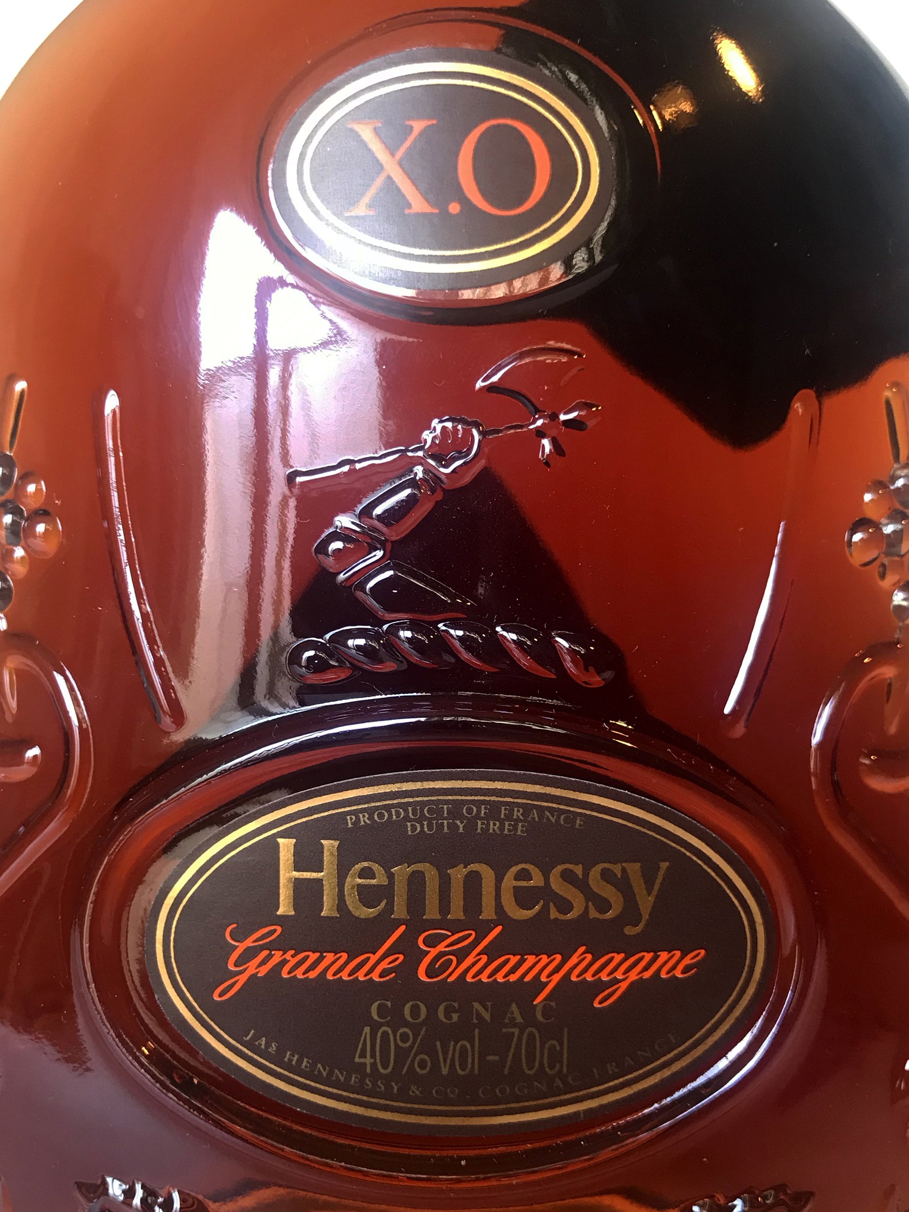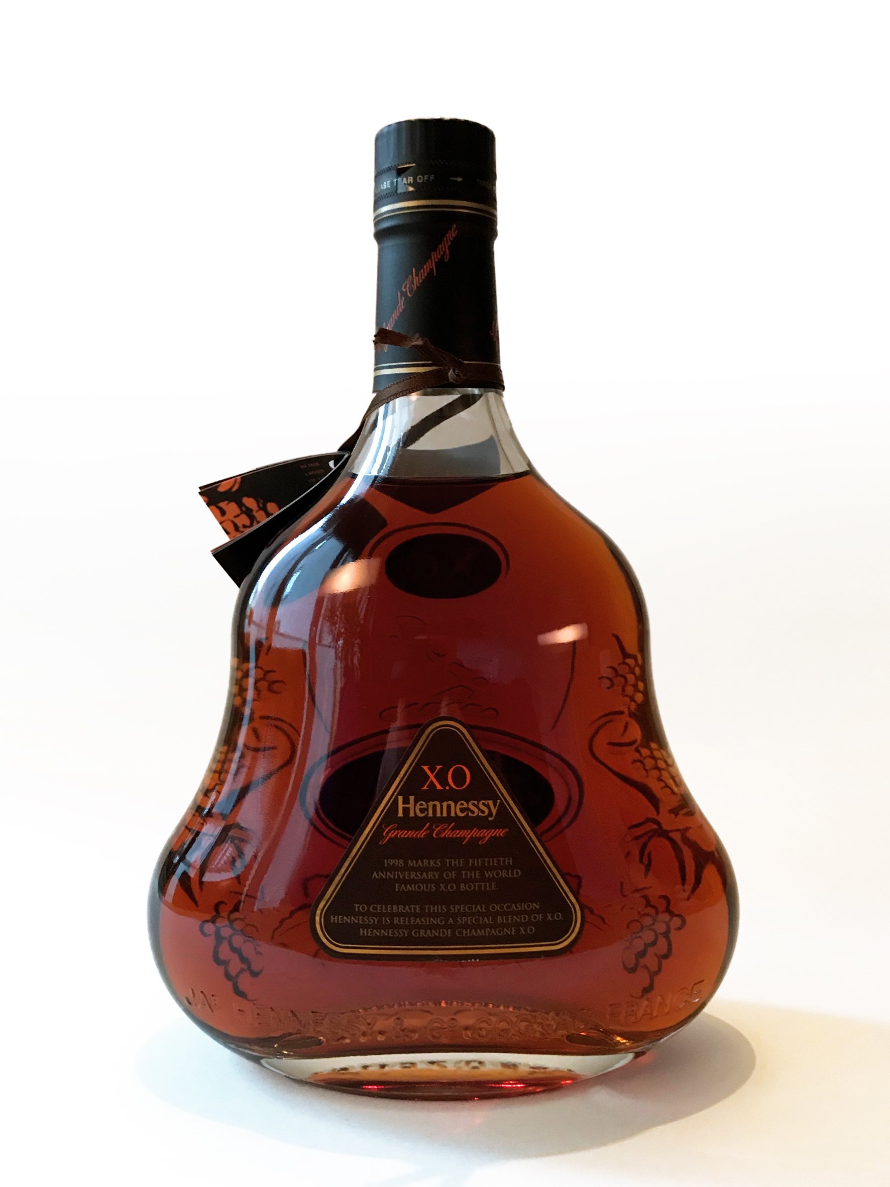 - Front: X.O Hennessy Grande Champagne Cognac, 40%vol–70cl Back: X.O Hennessy Grande Champagne 1998 marks the fiftieth anniversary of the world famous X.O bottle. To celebrate this special occasion Hennessy is releasing a special blend of X.O. Hennessy Grande Champagne X.O