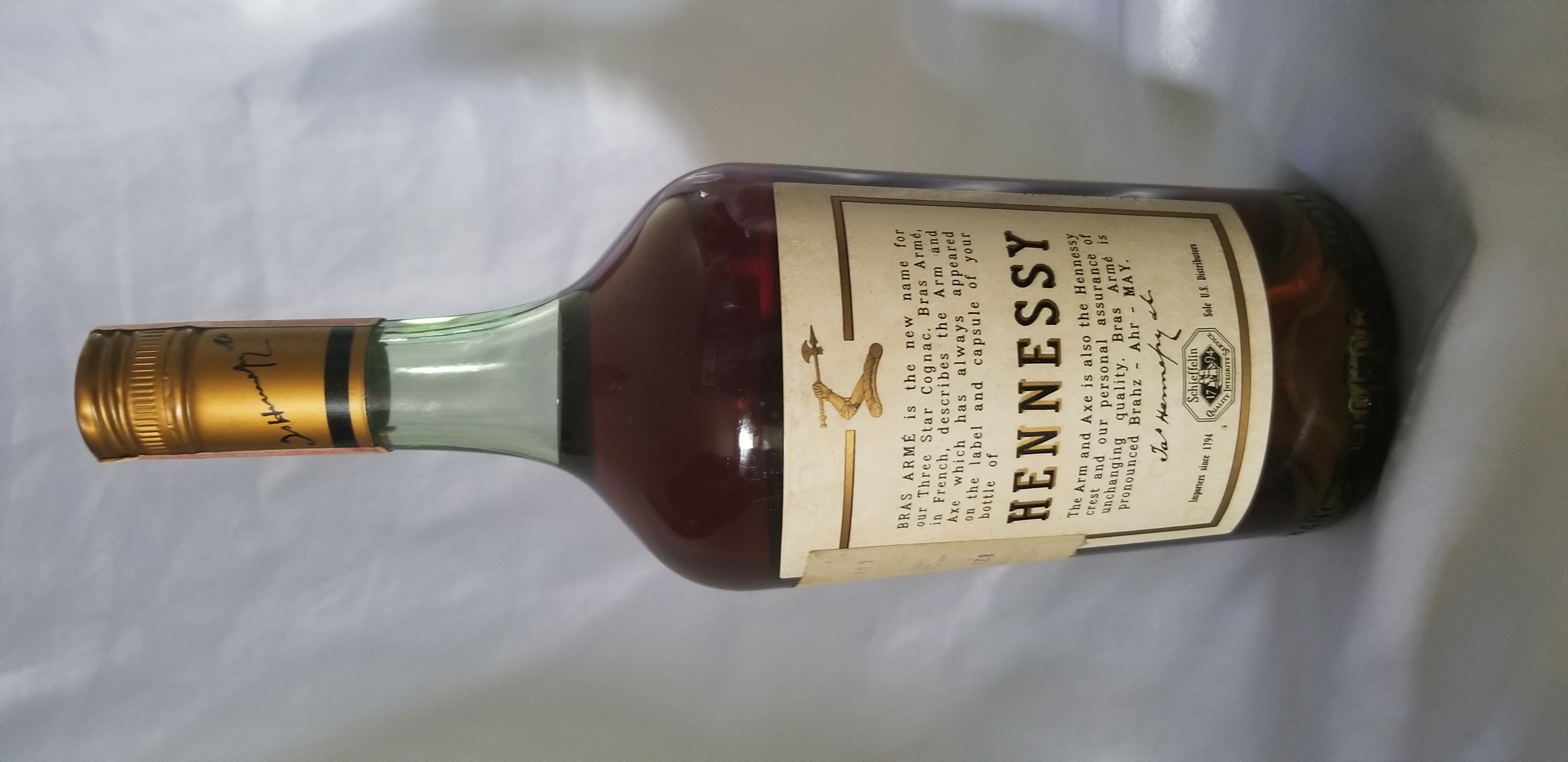 - BRAS ARME HENNESSY JA. HENNESSY & CO COGNAC 4/5 QUART 80 PROOF PRODUCED AND BOTTLED IN FRANCE SOLE UNITED STATES DISTRIBUTORS Schieffelin & Co New Your Importers Since 1794