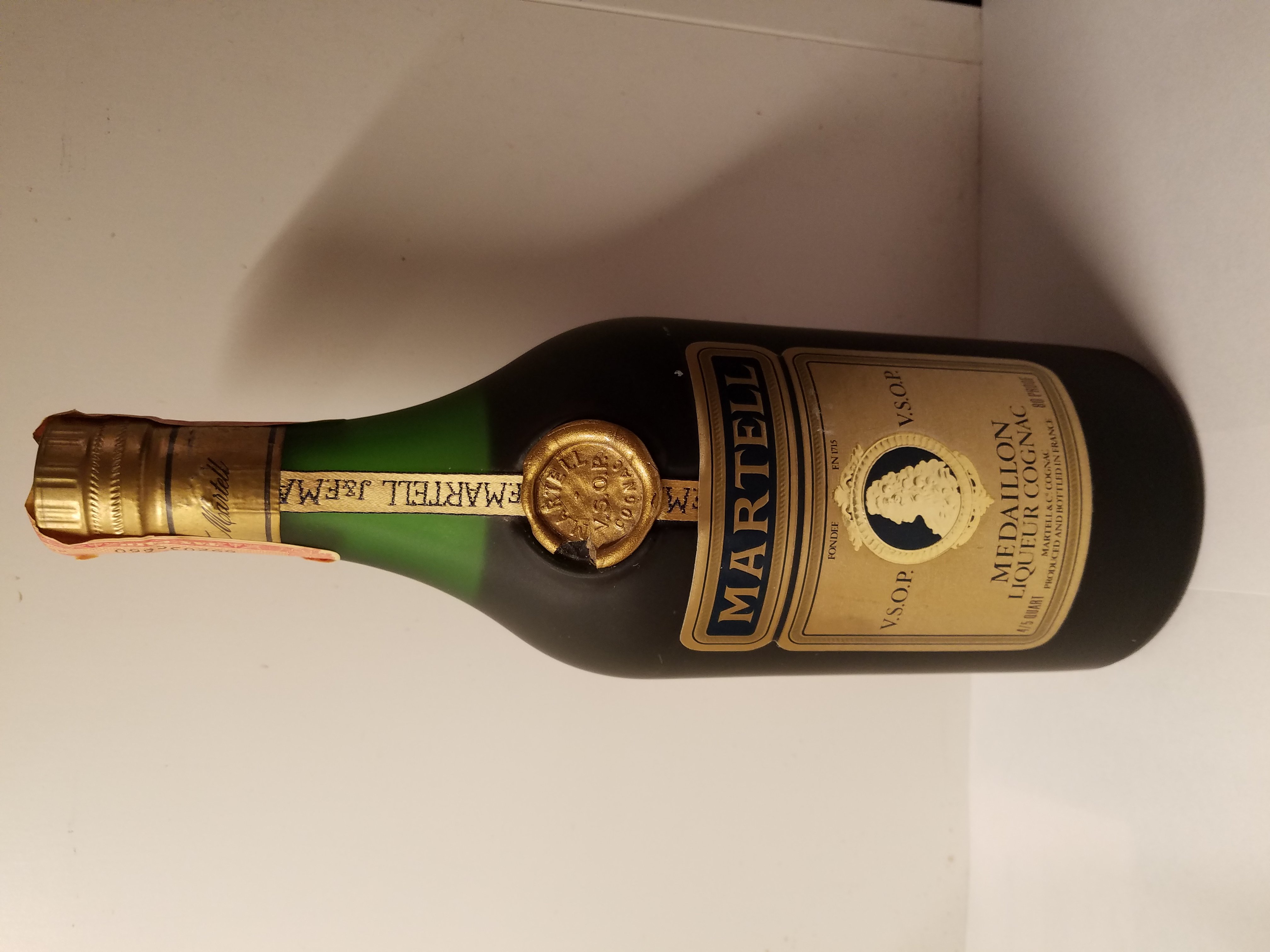 - FRONT: Martell. FONDEE EN 1715. V.S.O.P. Medallion Liqueur Cognac. 4/5 Quart. Martell & Co. Cognac. Produced and Bottled in France. 80 Proof. REVERSE: Produced and bottled in Cognac (France). Sole distributors for the U. S. A. The Jos. Garneau Co. New York, NY. V.S.O.P. "Martell Medallion Very Special Old Pale is a marrying of carefully selected Cognacs which have been patiently aged in the case for distinctive body and bouquet. Connoisseurs throughout the world favor this creation born from a tradition of eight generations of the Martell family."