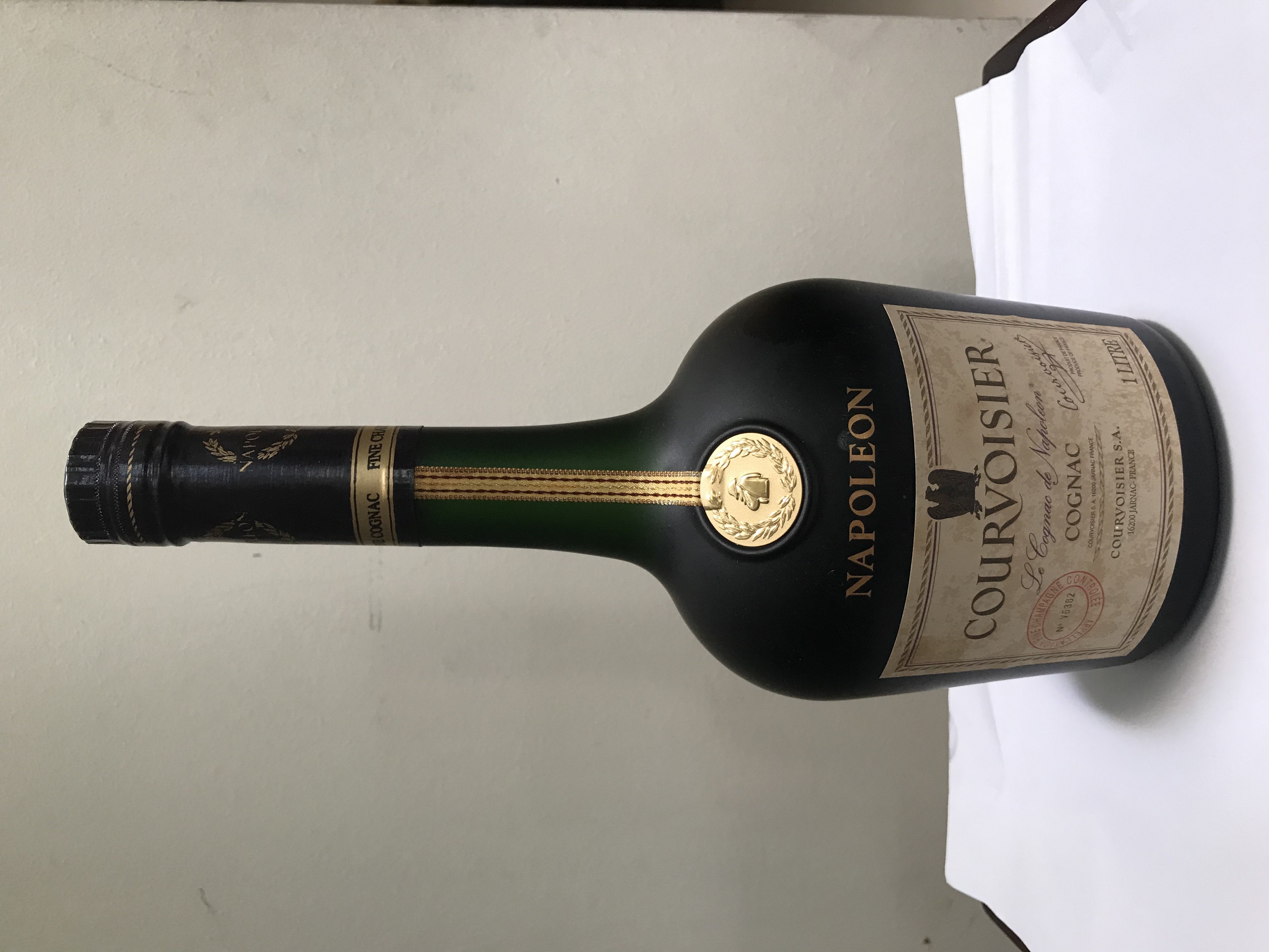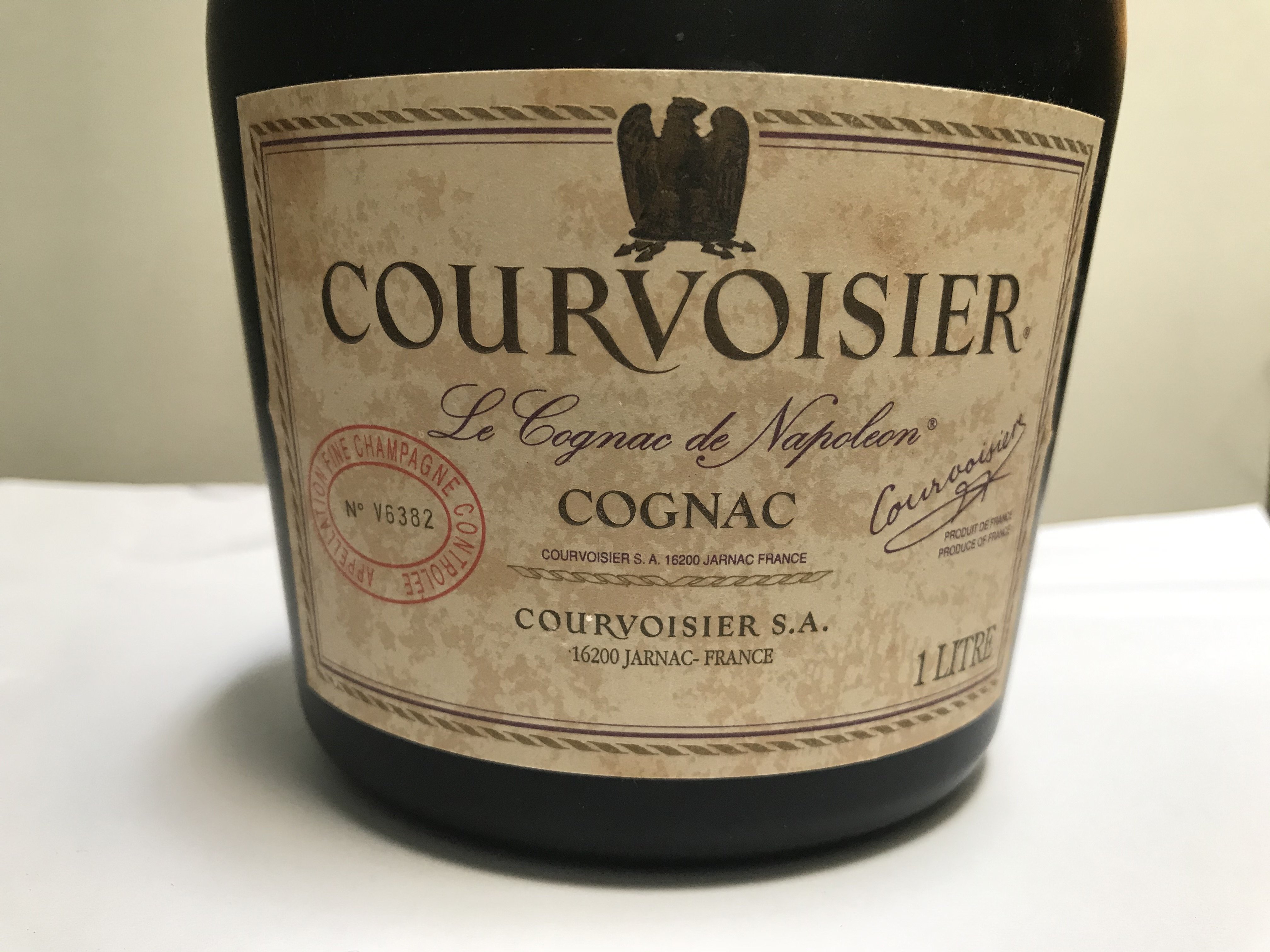 - COURVOISIER Le Cognac de Napolean Cognac Courvoisier S.A. 16200 Jarnac France (Red stamp on left) Appellation Fine Champange Controlee (Serial no) No. V6382 (Printed signature on right) Courvoisier Produit of France Produce of France 1 LITRE [BACK LABEL] COURVOISIER Le Cognac de Napolean (logo of wreath with "NAPOLEAN" across) FINE CHAMPAGNE COGNAC