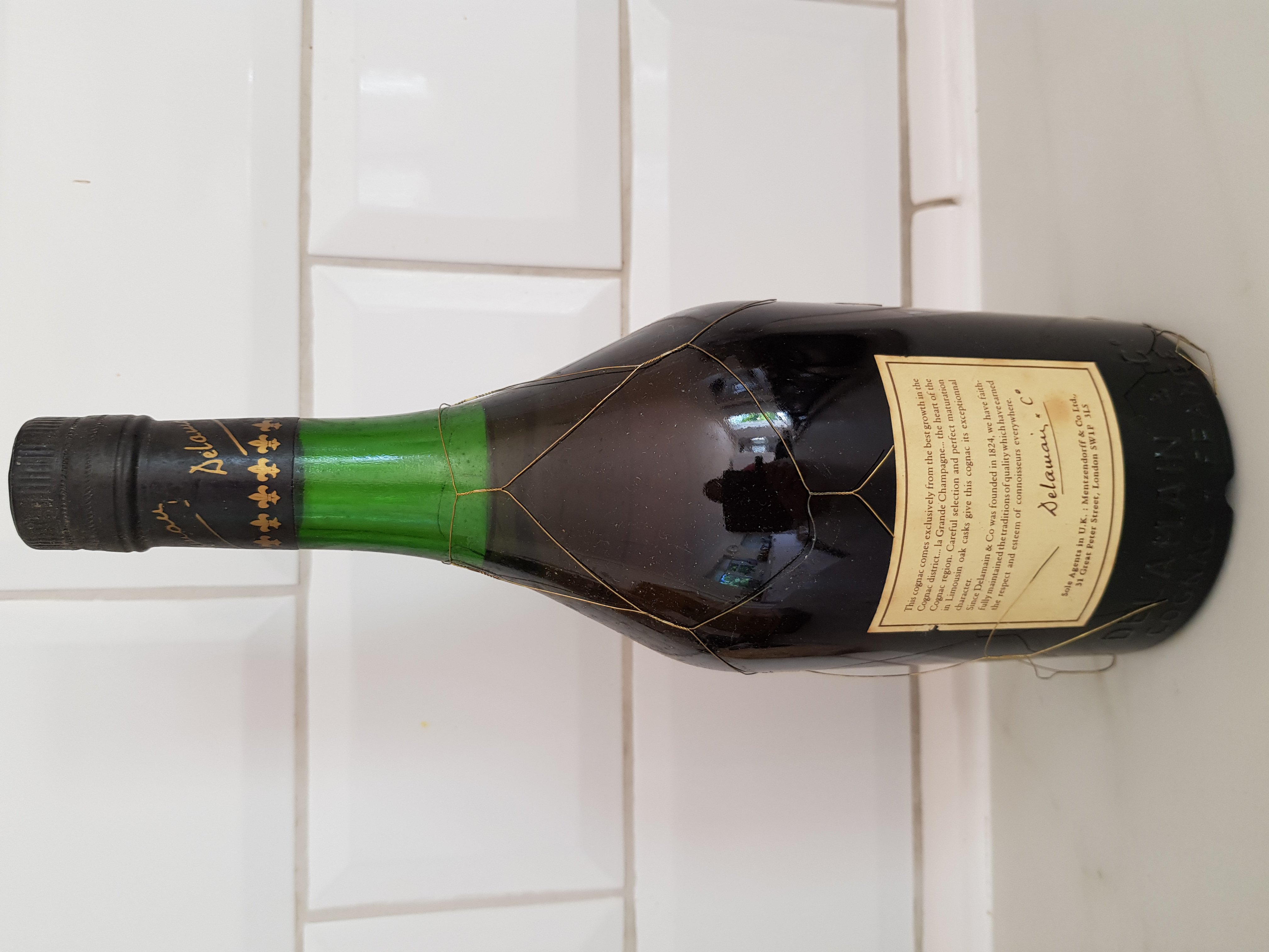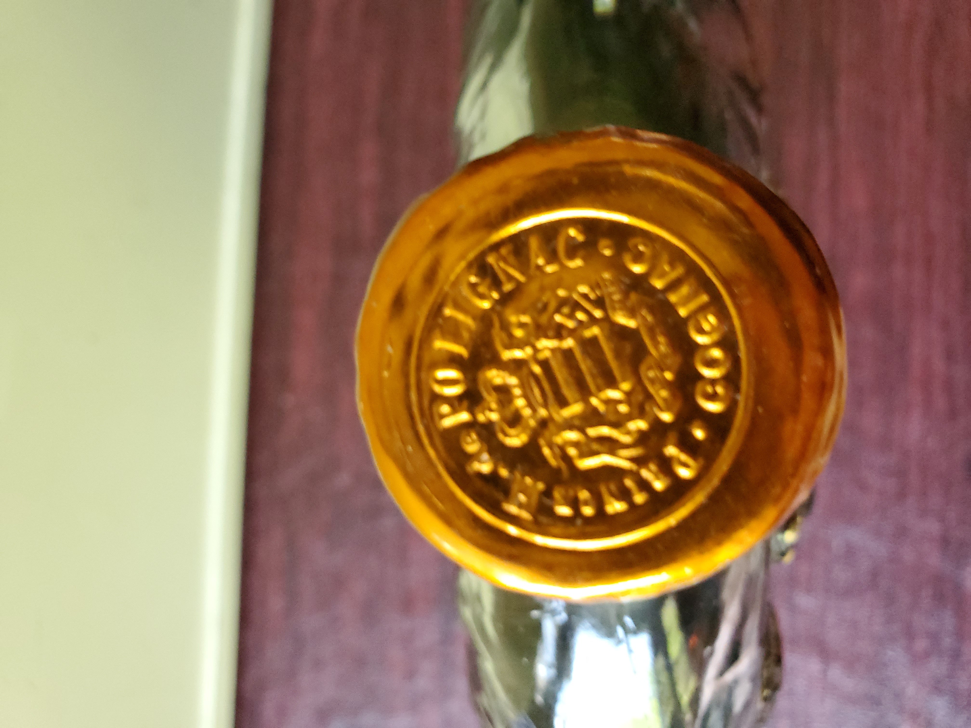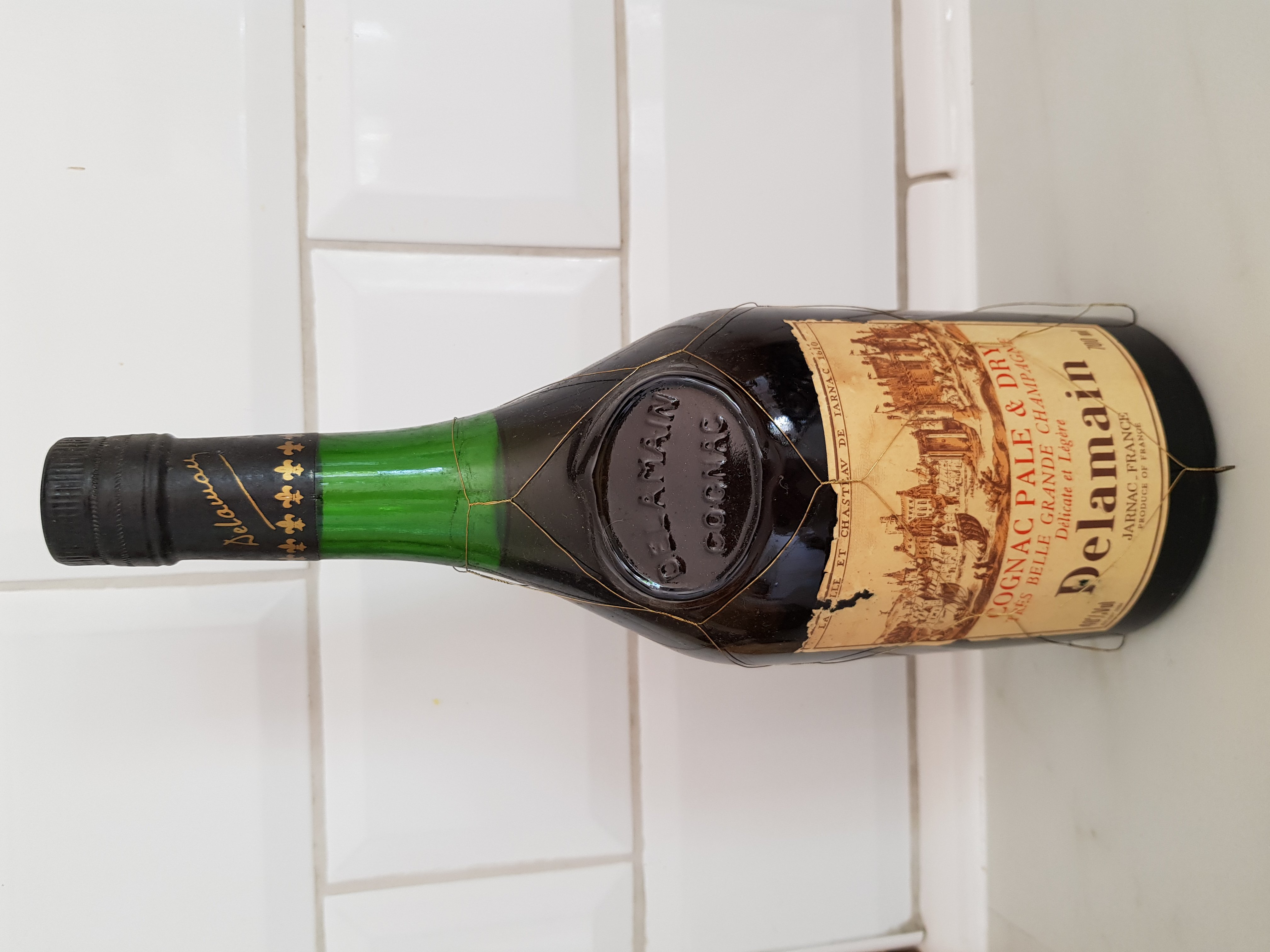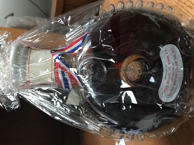 - gift had since 90's cork top with plastic seal bulb type bottle with long neck 2 x rear labels 1 has importers details , size 750ml 40% Alc/Vol some loss of volume
