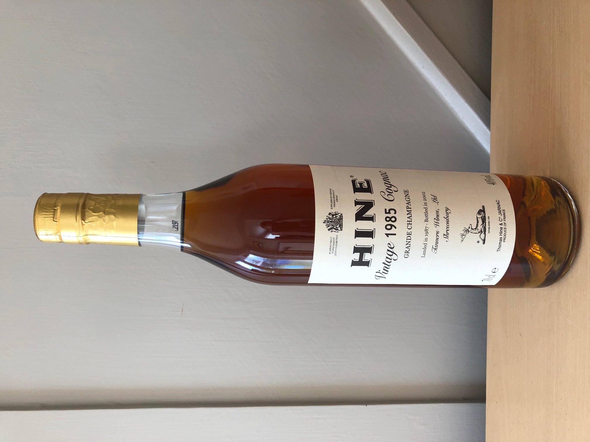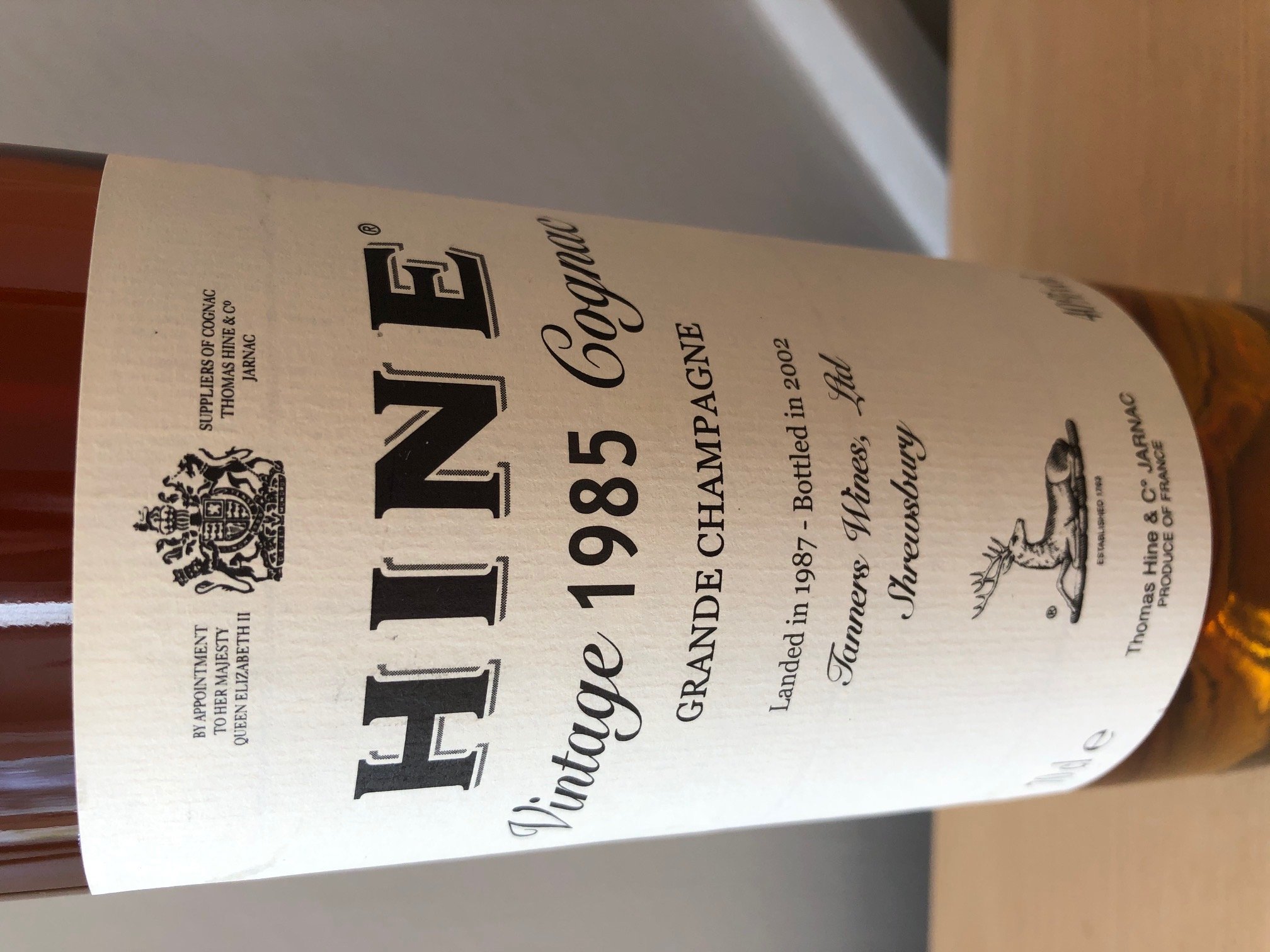 - HINE Vintage 1985 Cognac Grande Champagne Landed in 1987 bottled in 2002 Tanners Wine, Ltd Shrewsbury Thomas Hine & Co JARNAC Produce of France