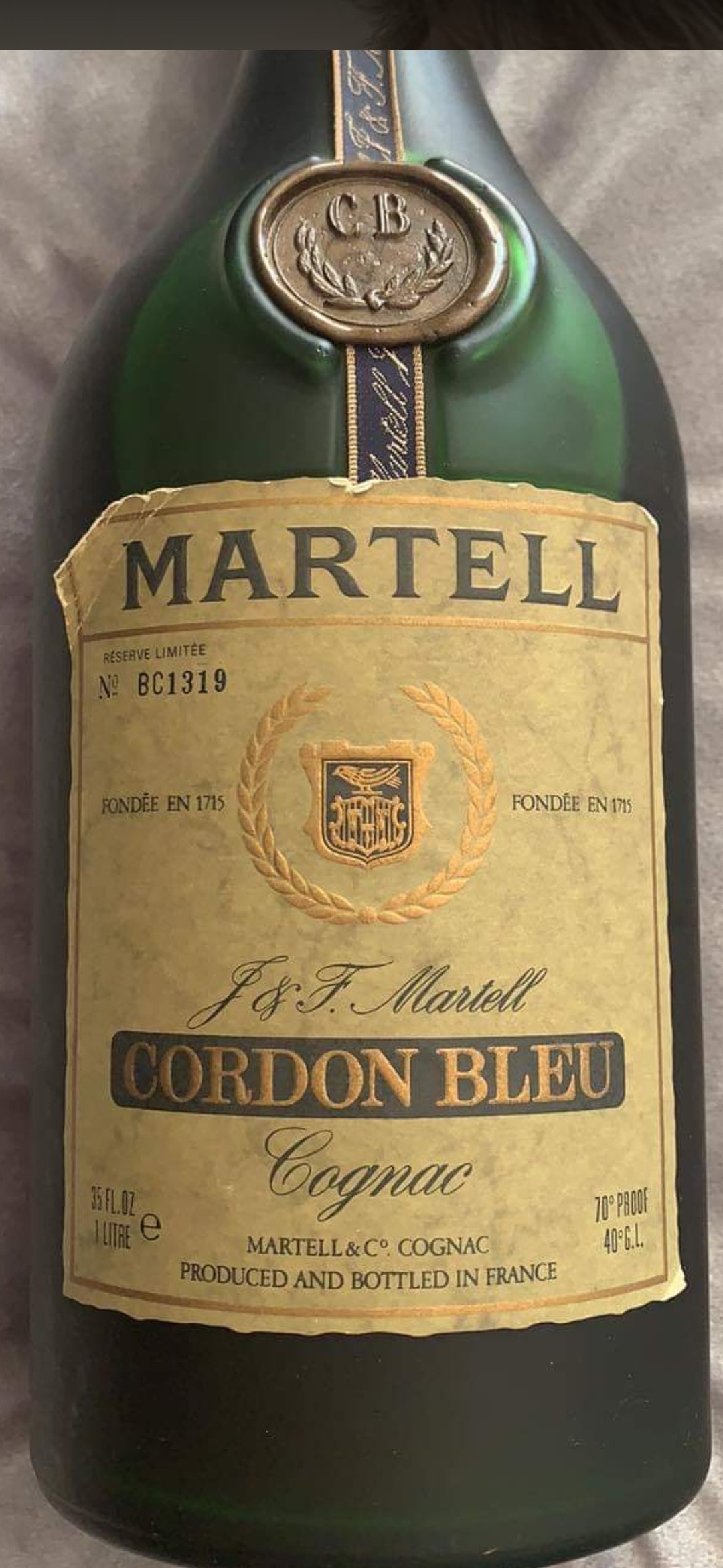 - Martell Reserve limitee No BC1319 FONDEE EN 1715 J&F Martell Cordon bleu Cognac Martell & Co Cognac Produced and bottled in France 35 fl. Oz 1 litre 70 proof 40 GL
