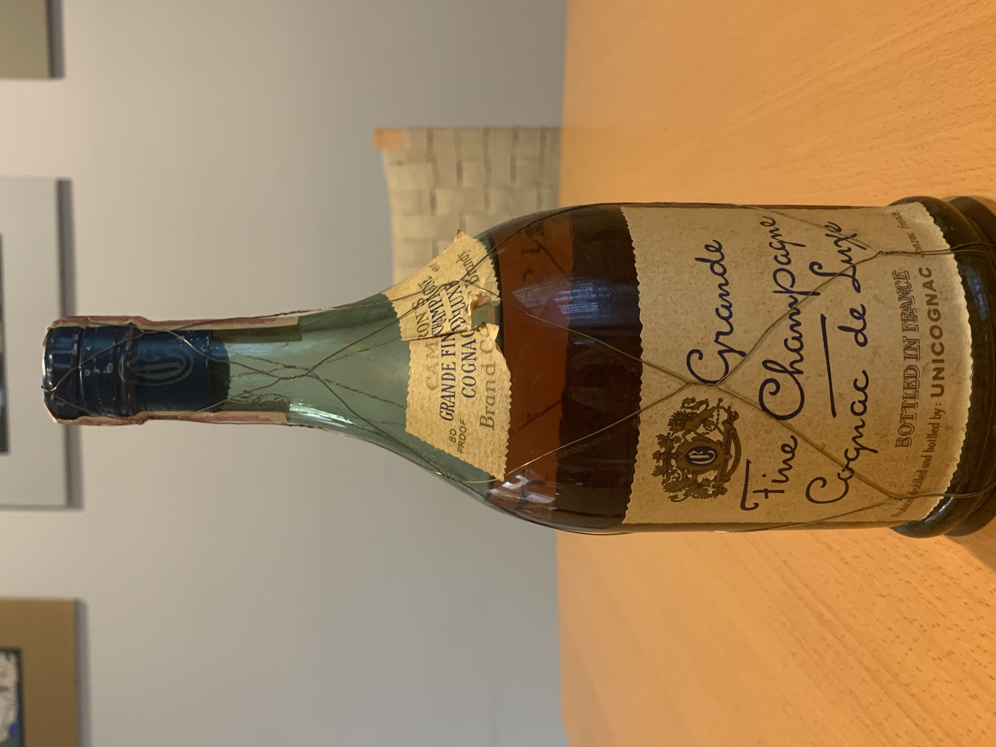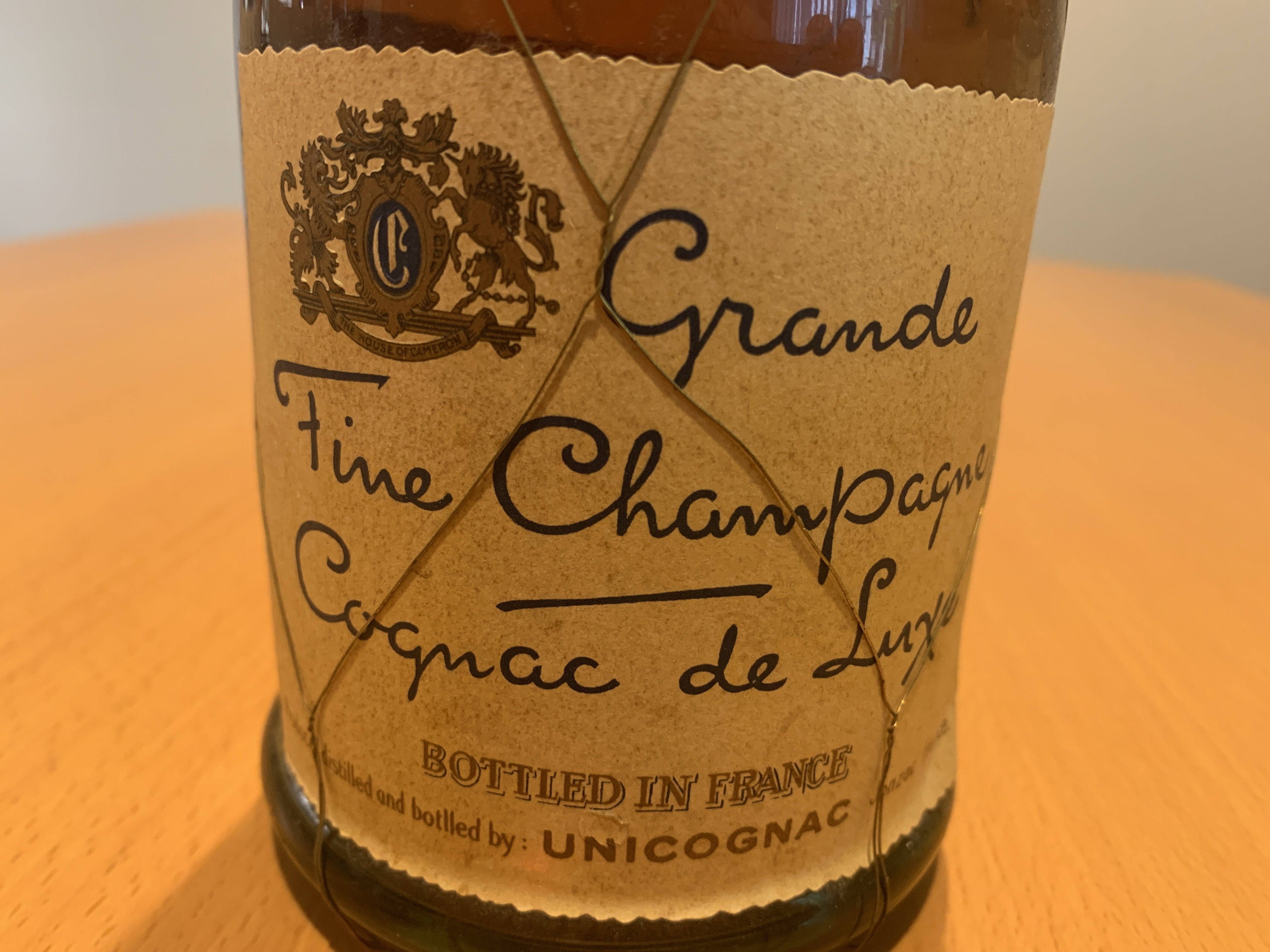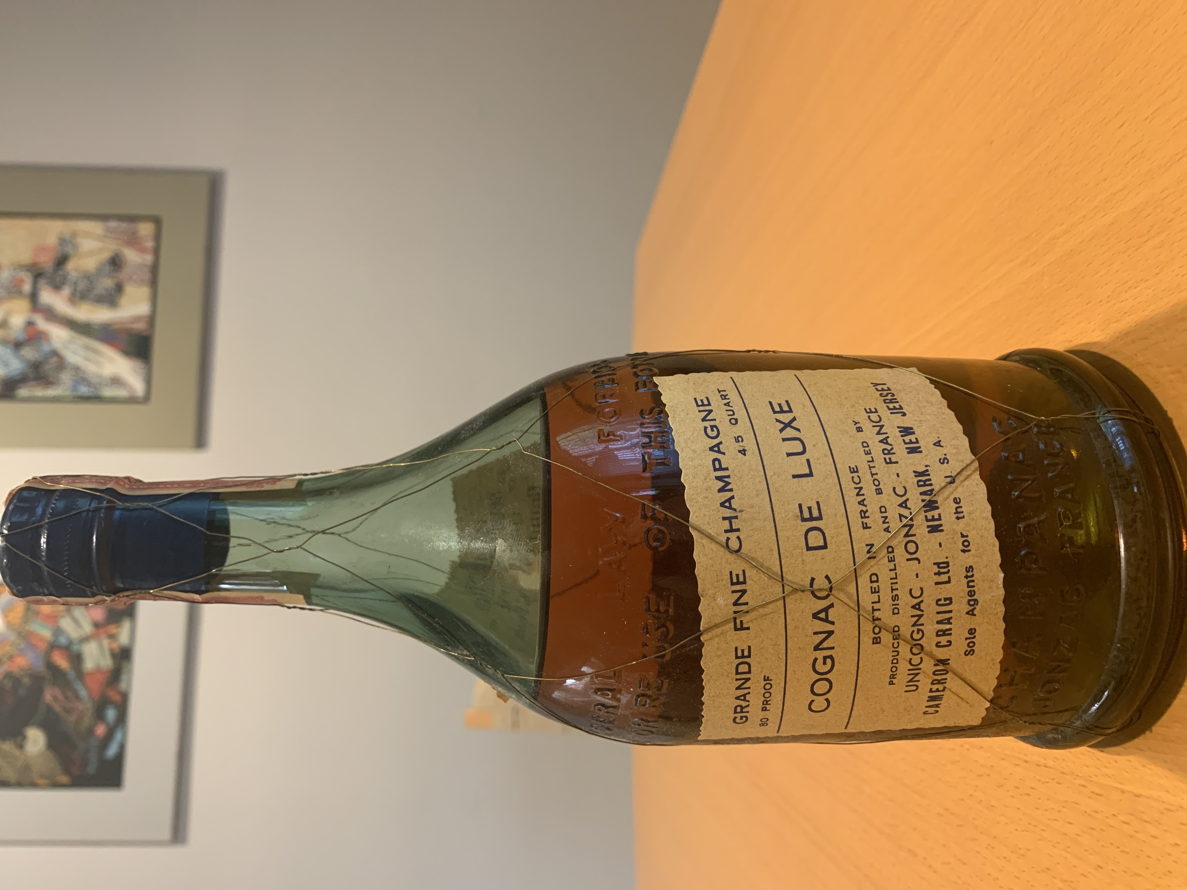 - Grand Fine Champagne Cognac de Luxe BOTTLED IN FRANCE Produced distilled and bottled by: UNICOGNAC Jonzac France 4/5 QT