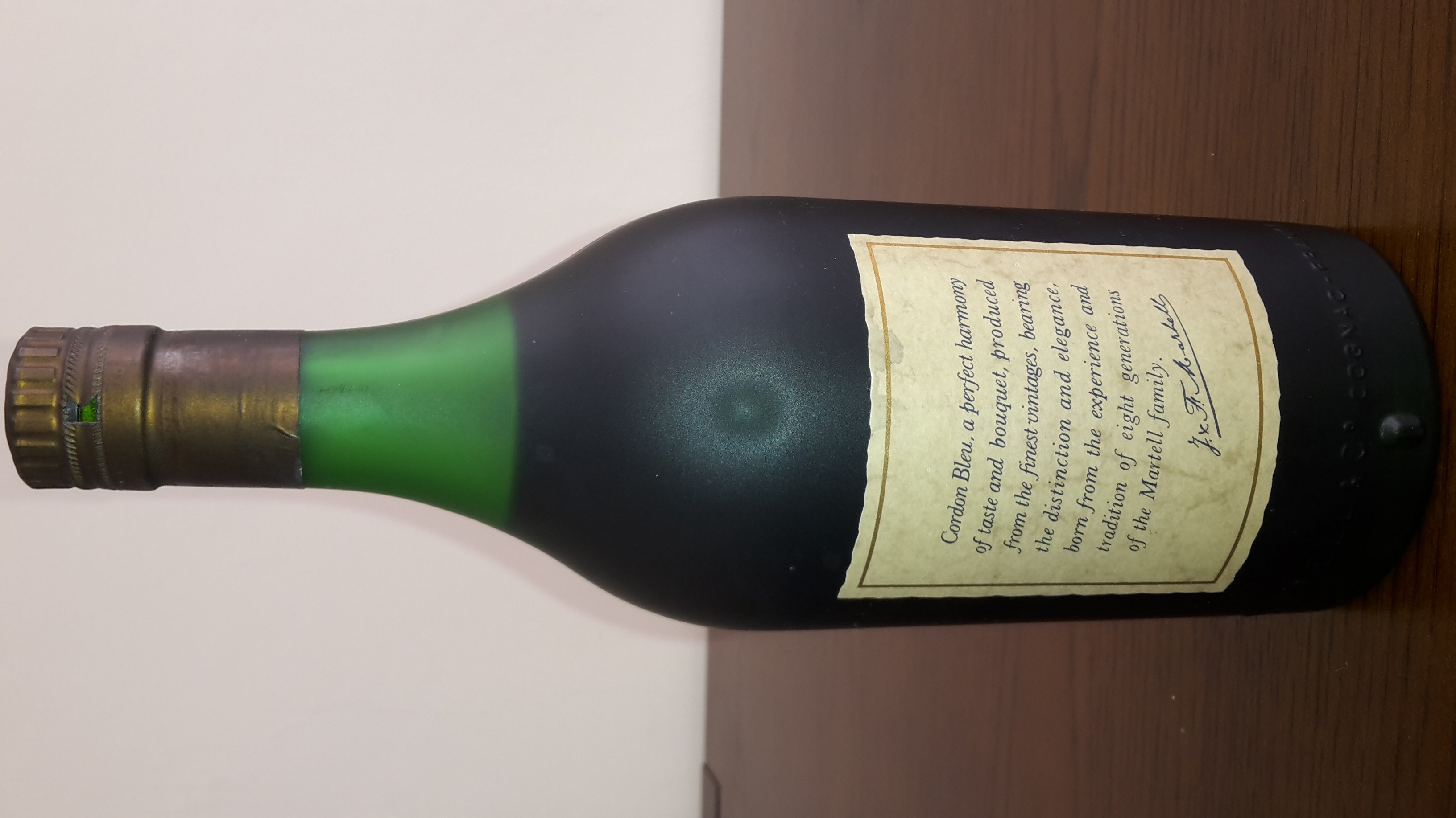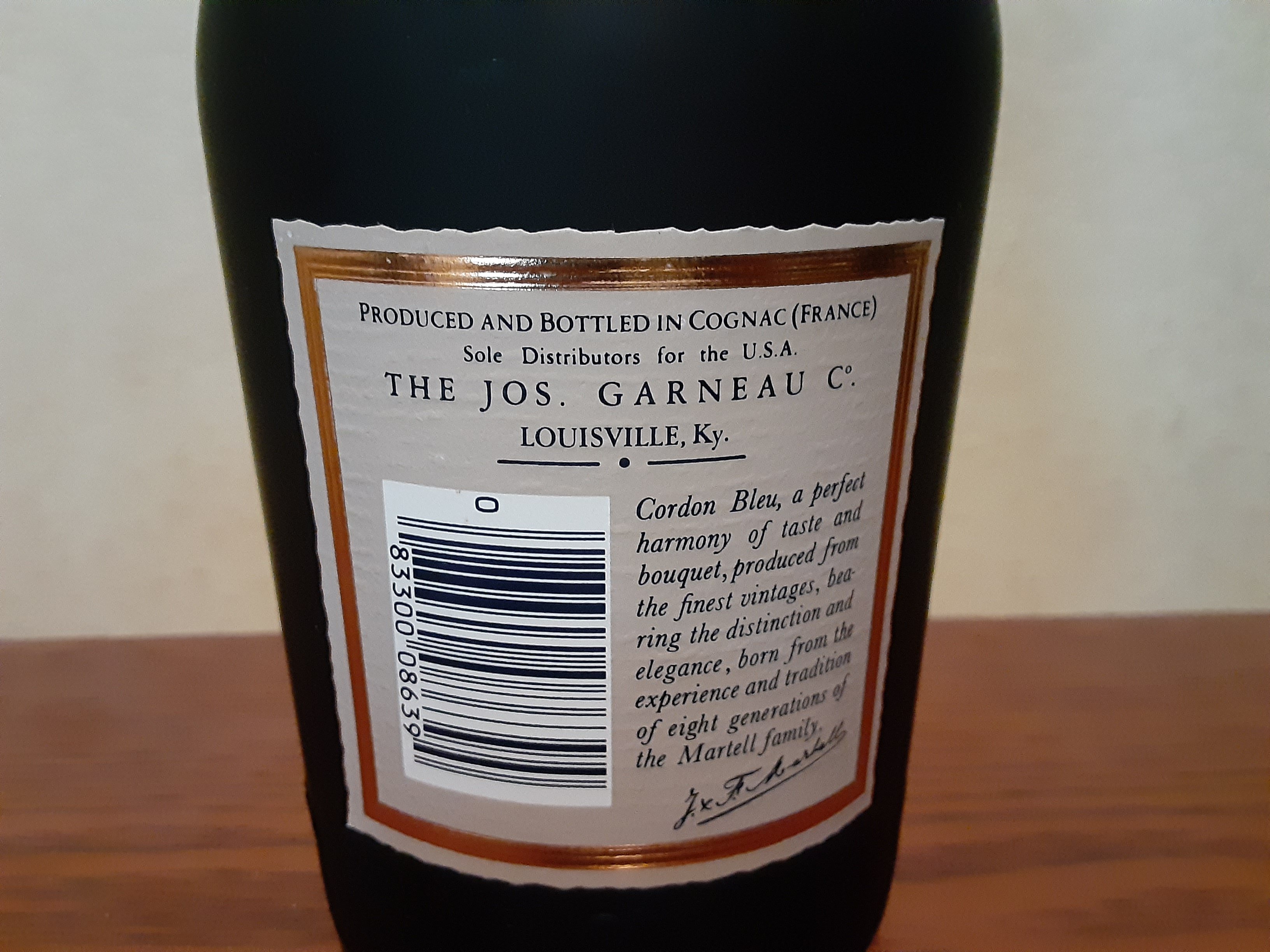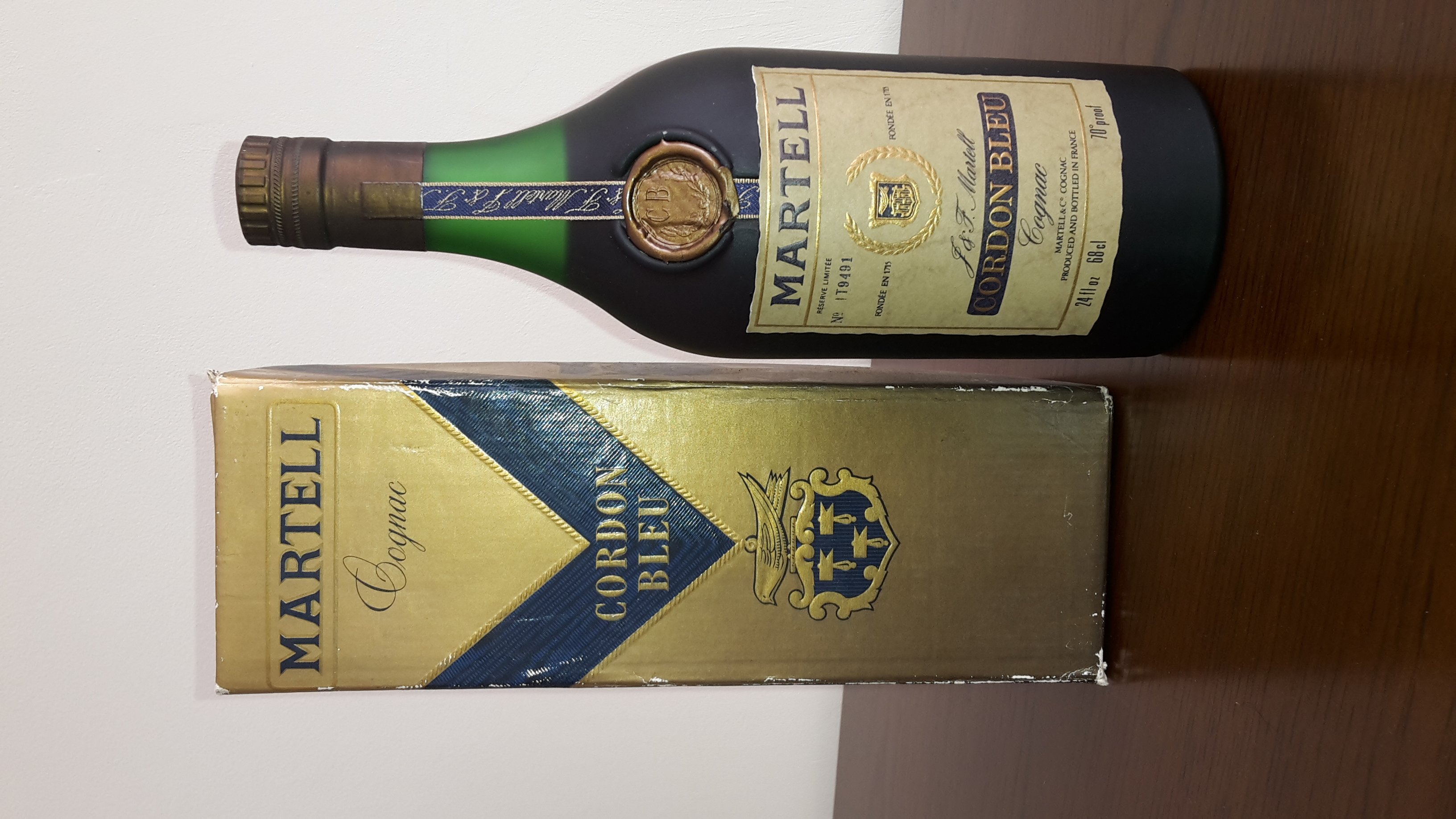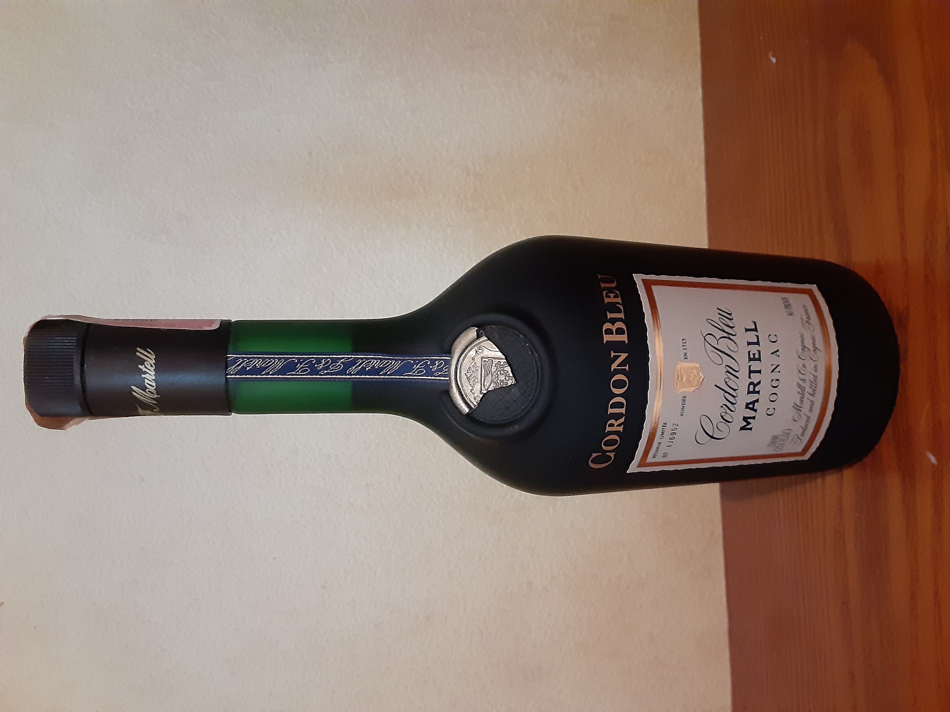 - Martell cordon bleu cognac Martell&Co . Cognac Produced and bottled I'm France Fondee en 1715 F & F.martell Reserve limited no. T9491 24 flight Oz 68cl 70° proof