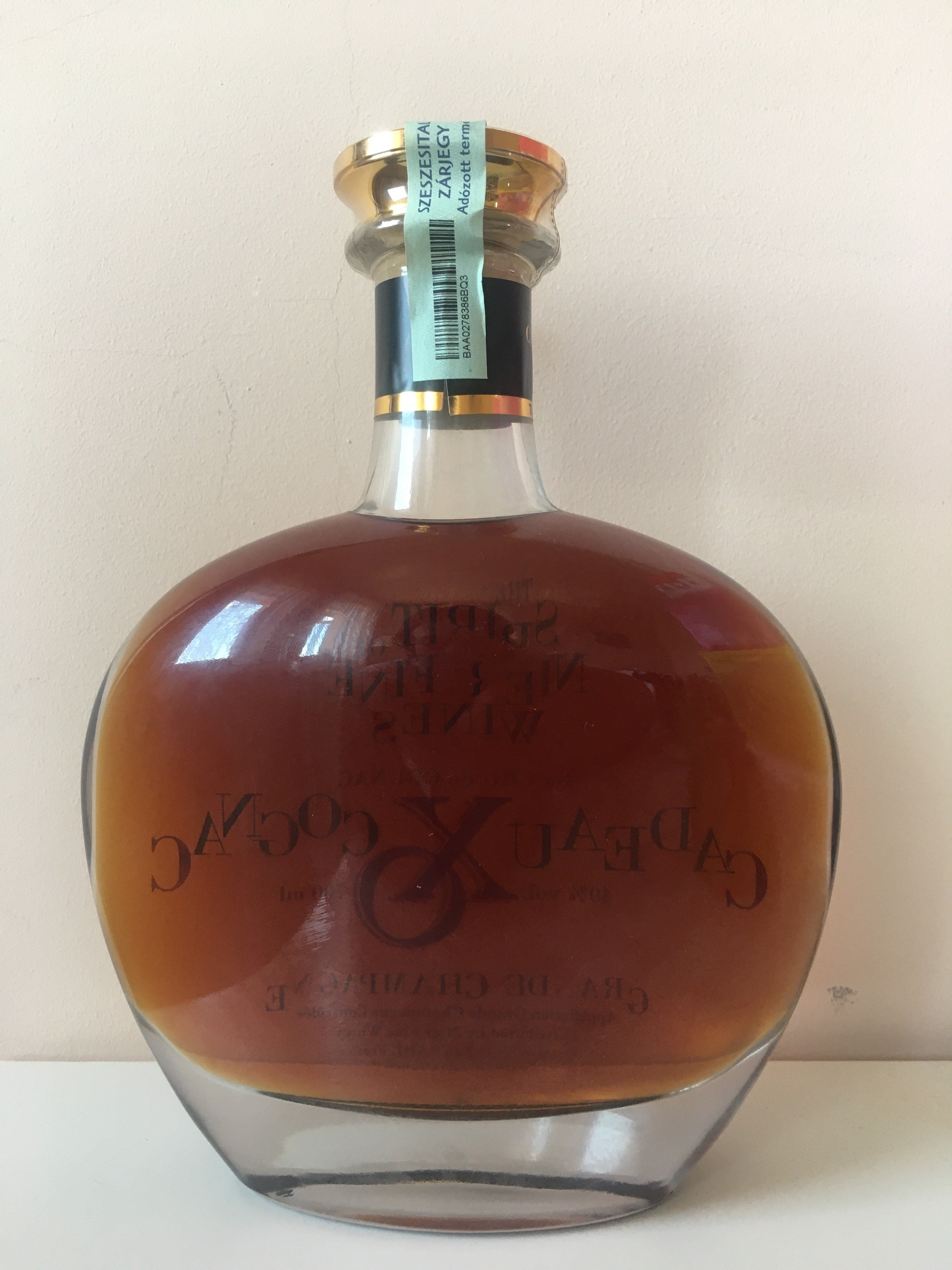 - No label but around the decanter top NAPOLEON HINE Extra Fine Cognac 70 cl 40% vol