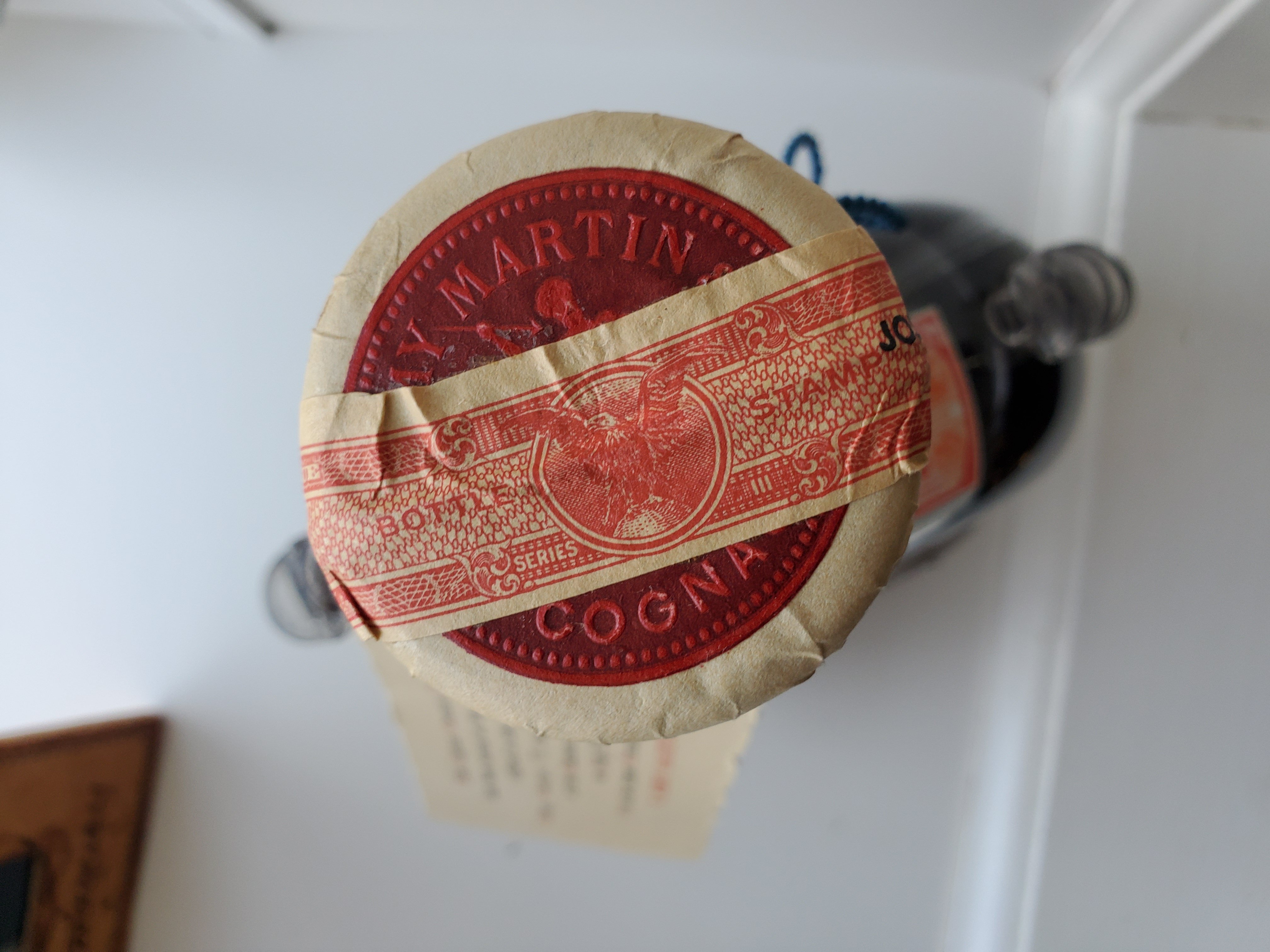 - Moved into grandparents house. He was a dr and lived there since 1880 and his son married around 1926. They had the great depression mentality and tended to keep items. The house is furnished about 1850. I needed 1 oz brandy for a martha stewart cookie recipe and went to the basement and found this. The label is in nice shape. It probably has not been touched in 70 years.