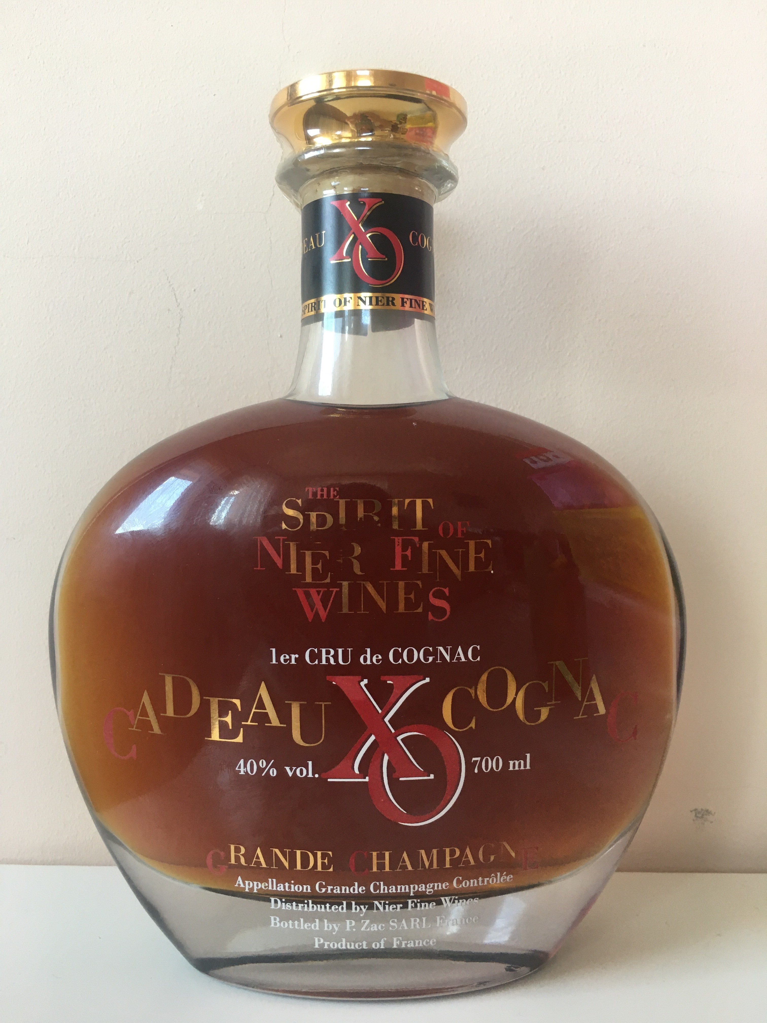 - The spirit of nier fine wines ler CRU de COGNAC CADEAU XO COGNAC 40% vol. 700ml GRANDE CHAMPAGNE Appellation GRANDE CHAMPAGNE Contrôlée Distributed by Nier Fine Wines Bottled by P.Zac SARL France Product of France