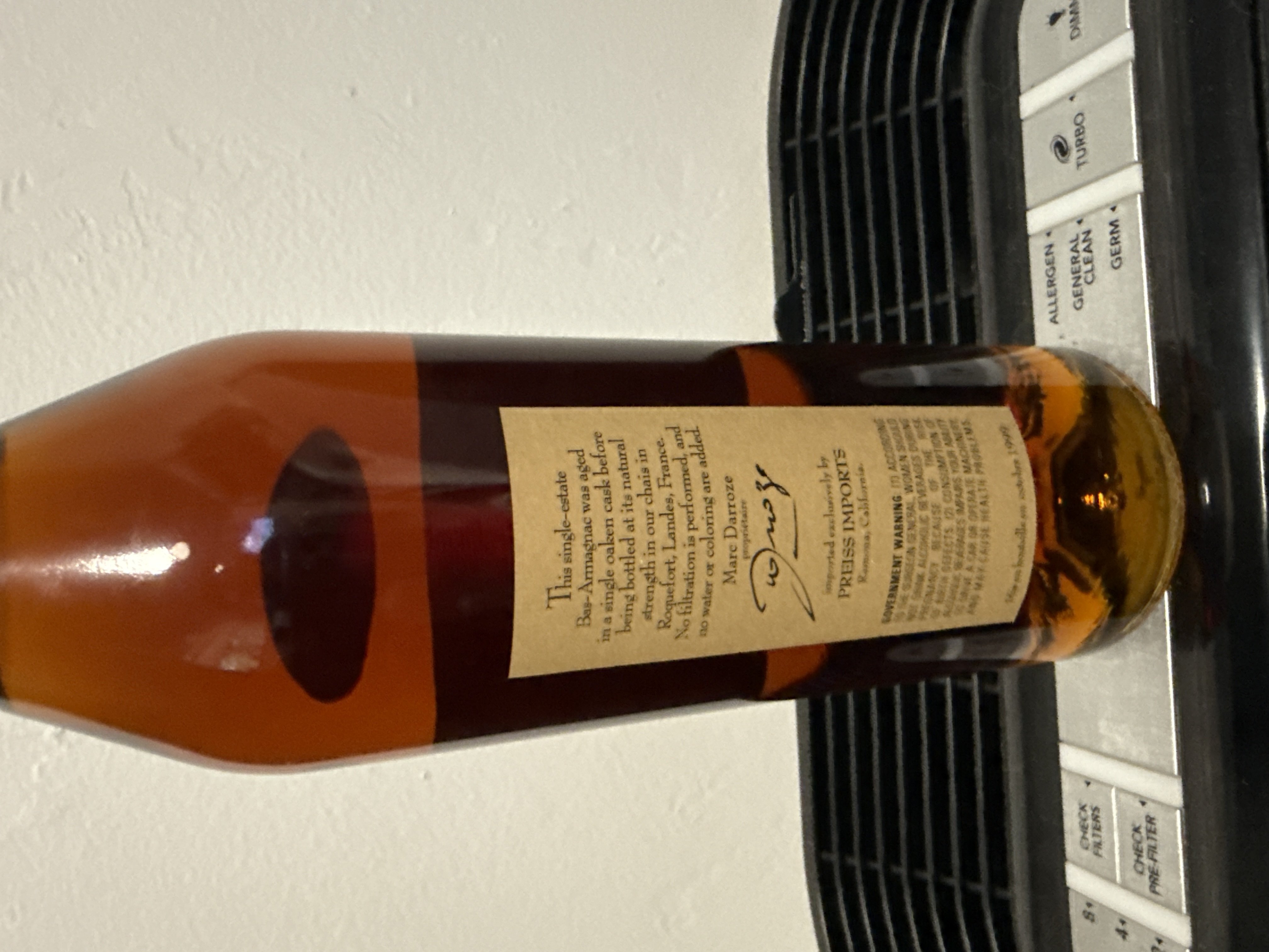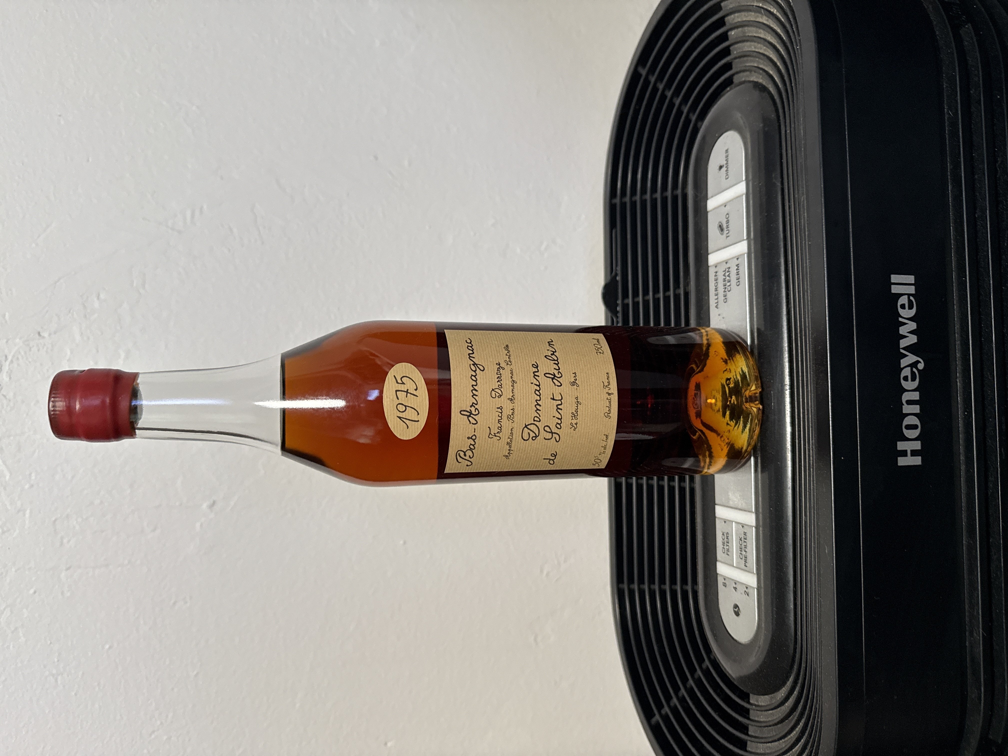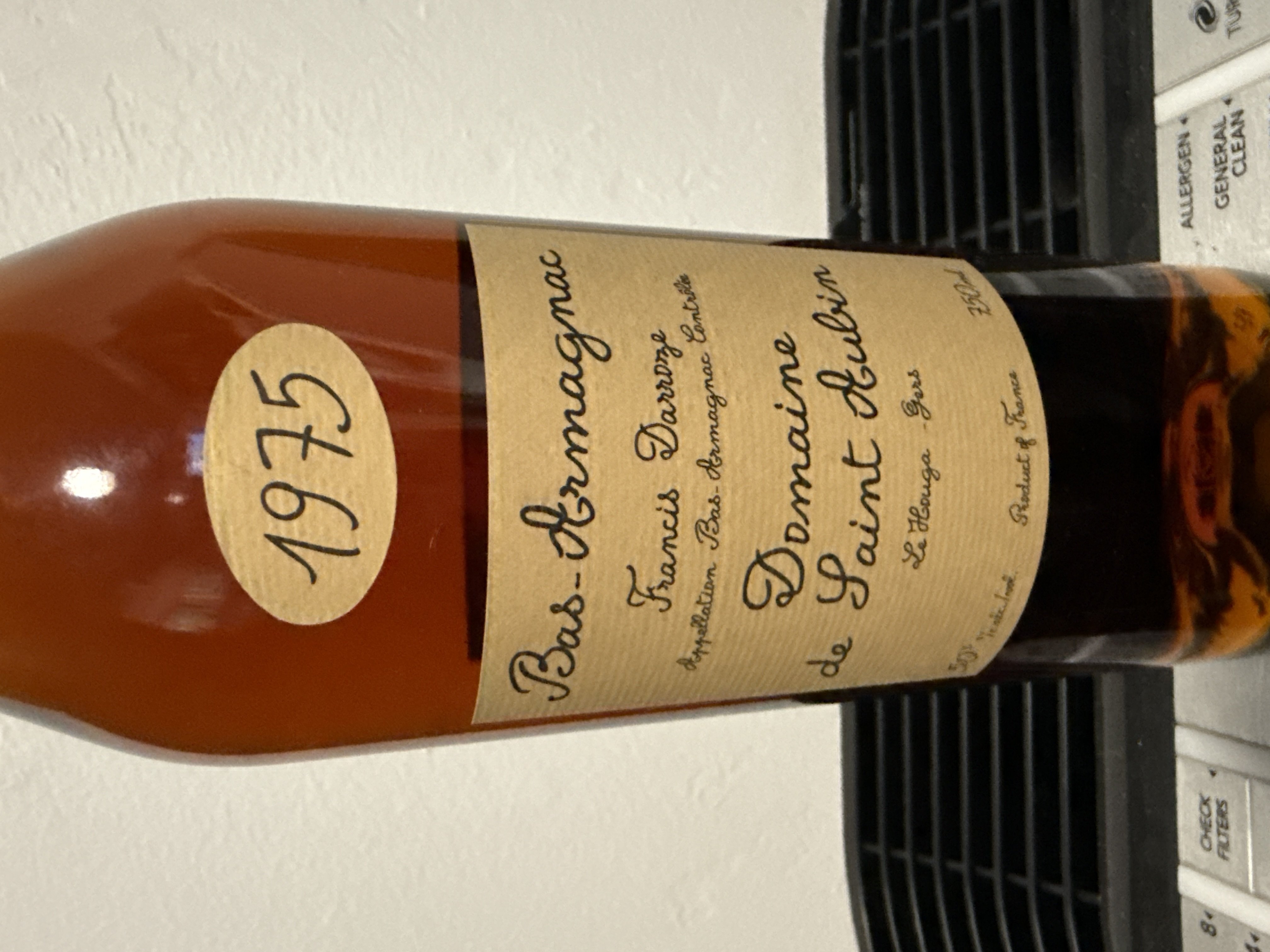 - 1975 Bas Armagnac Francis Darroze Appellation Bas-Armagnac controller’ Domaine de saint aubin Le houga- gers 50% alc. level. Product of France 750 ml