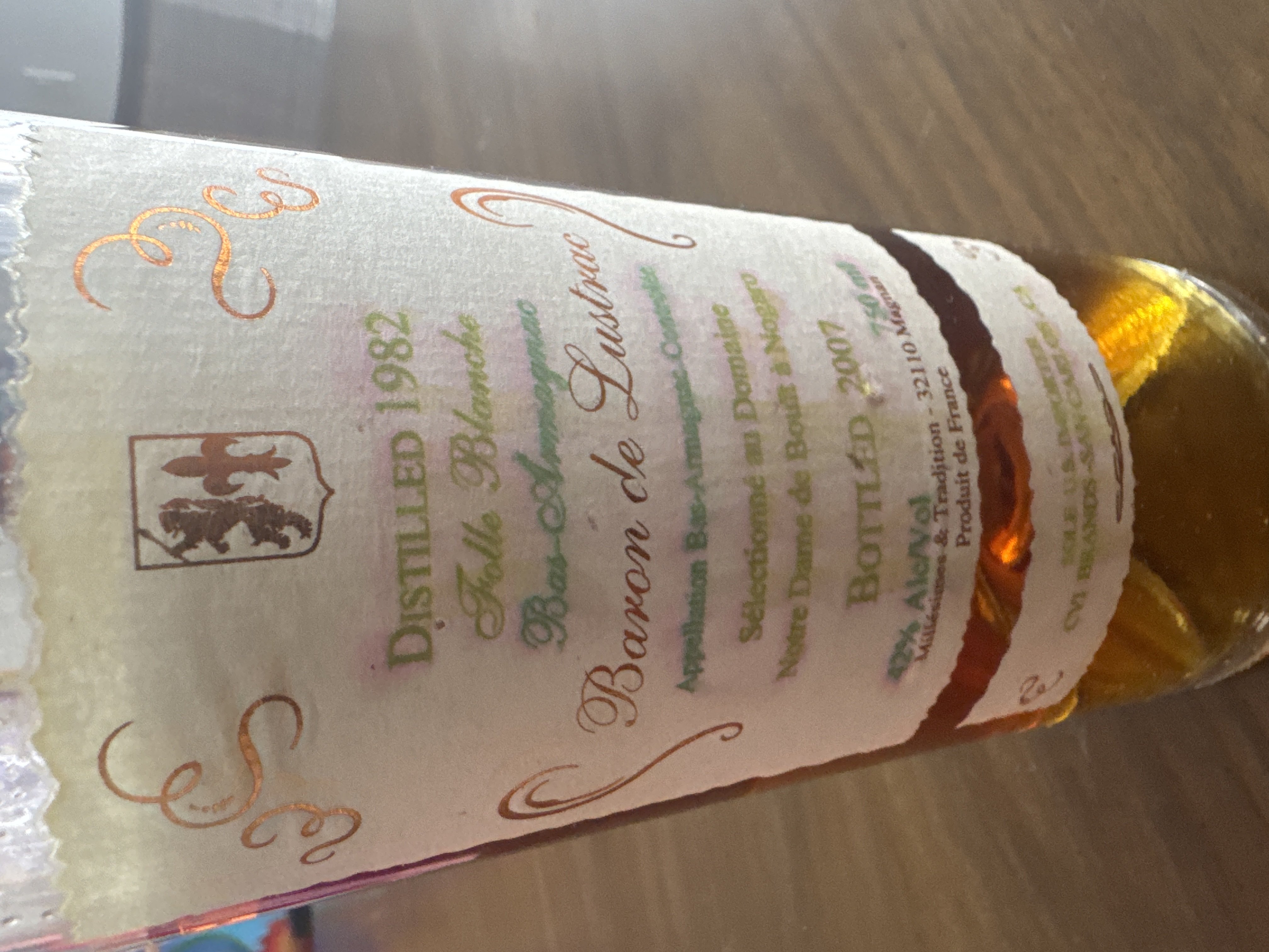 - Distilled 1982 Bas Armagnac Baron de lustrac Bottled 2007 750ml 32110 magnum Produit de France