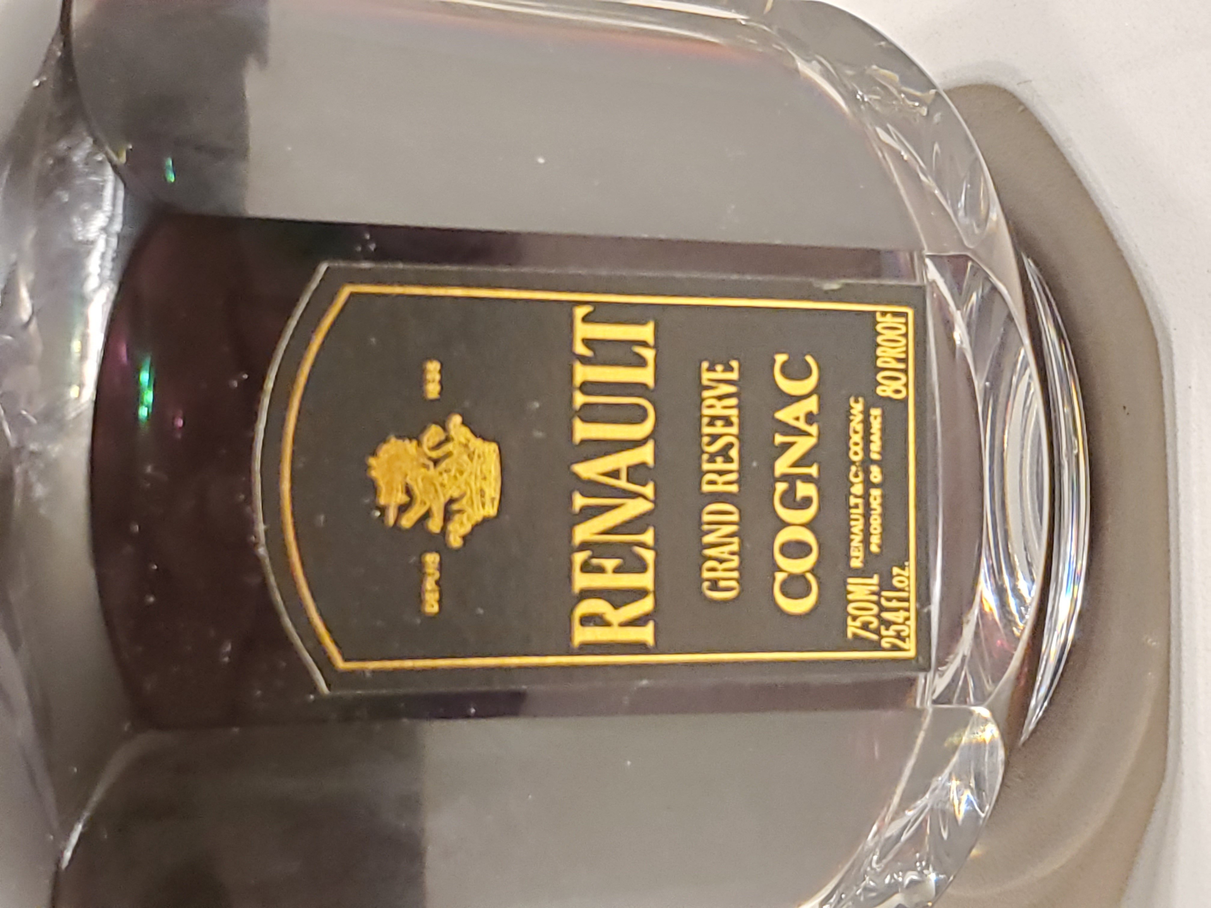 - DEPUIS 1835 RENAULT GRAND RESERVE COGNAC RENAULT & CO COGNAC PRODUCE OF FRANCE 750 ML 254 FL. OZ. 80 PROOF THE BOTTOM HAS KOSTA ON IT AND THE BACK HAS A STICKEE THAT SAYS SOLE IMPORTER: ADP/MEDLEY IMPORT COMPANY, INC., ROSEMONT ILLINOIS 60018