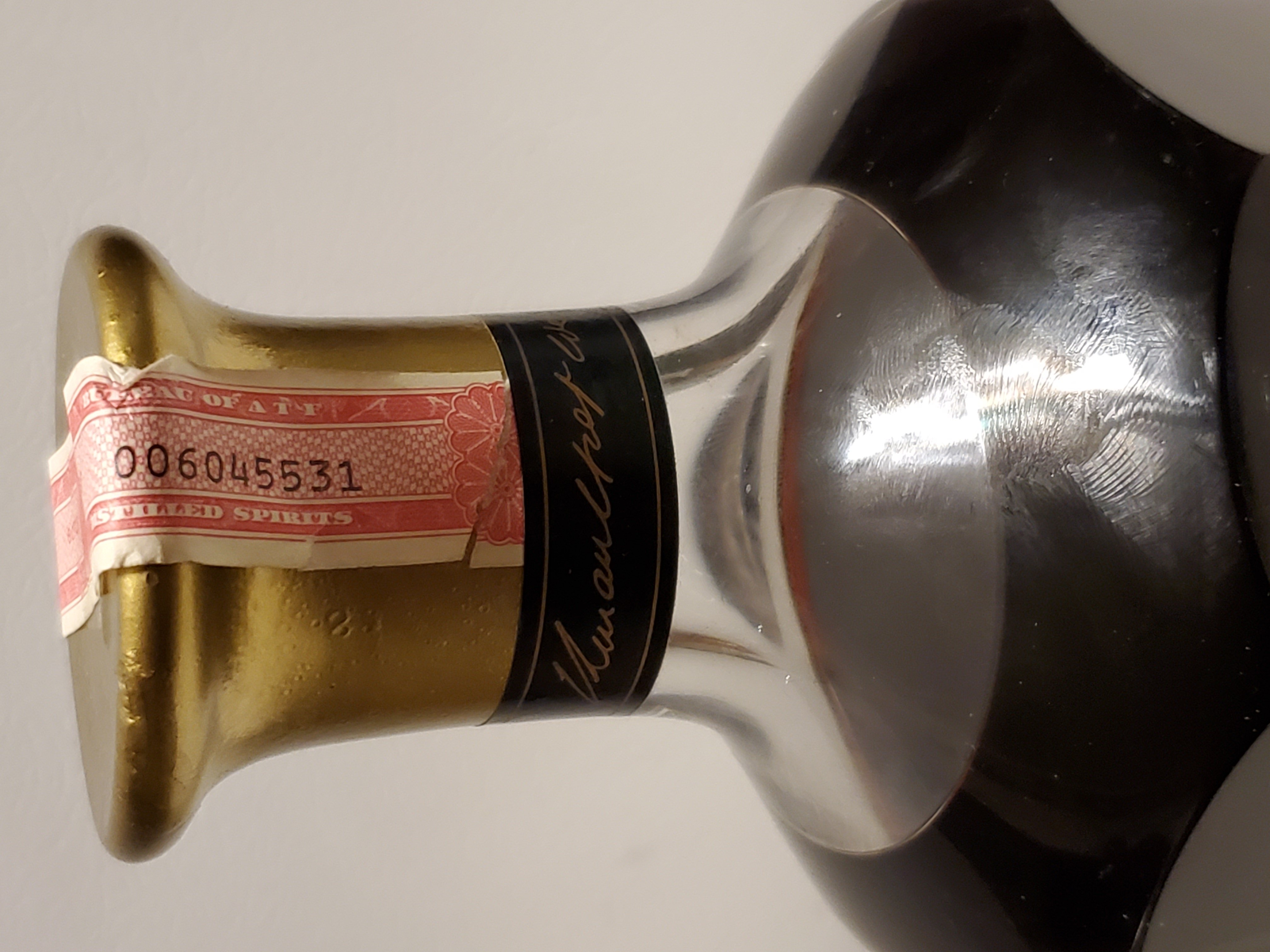 - My wife found this bottle in her father's basement cellar after his death. We have no idea if he purchased it, or if it was given to him as a gift. My own limited research has led me to the estimated date of the bottle.