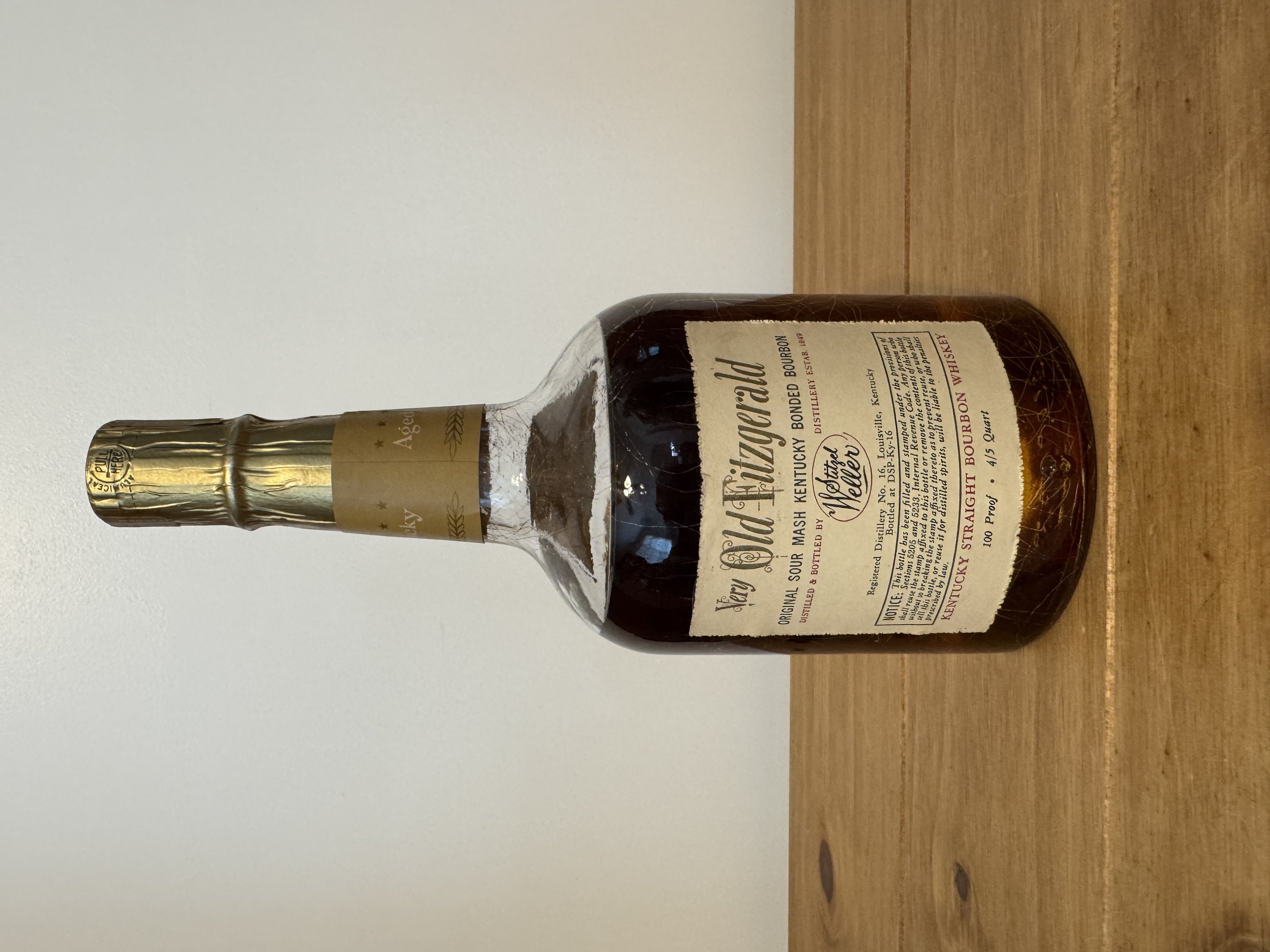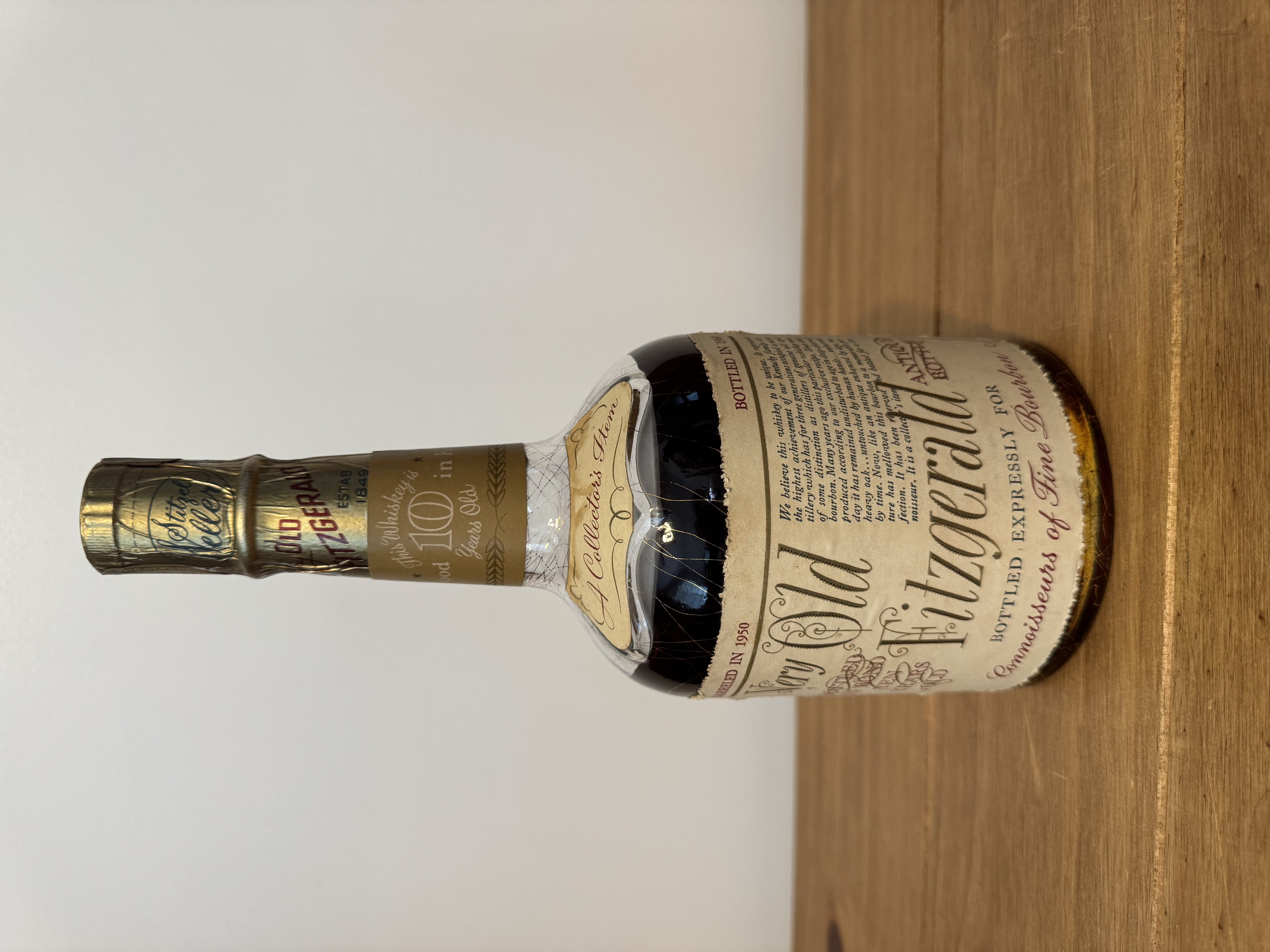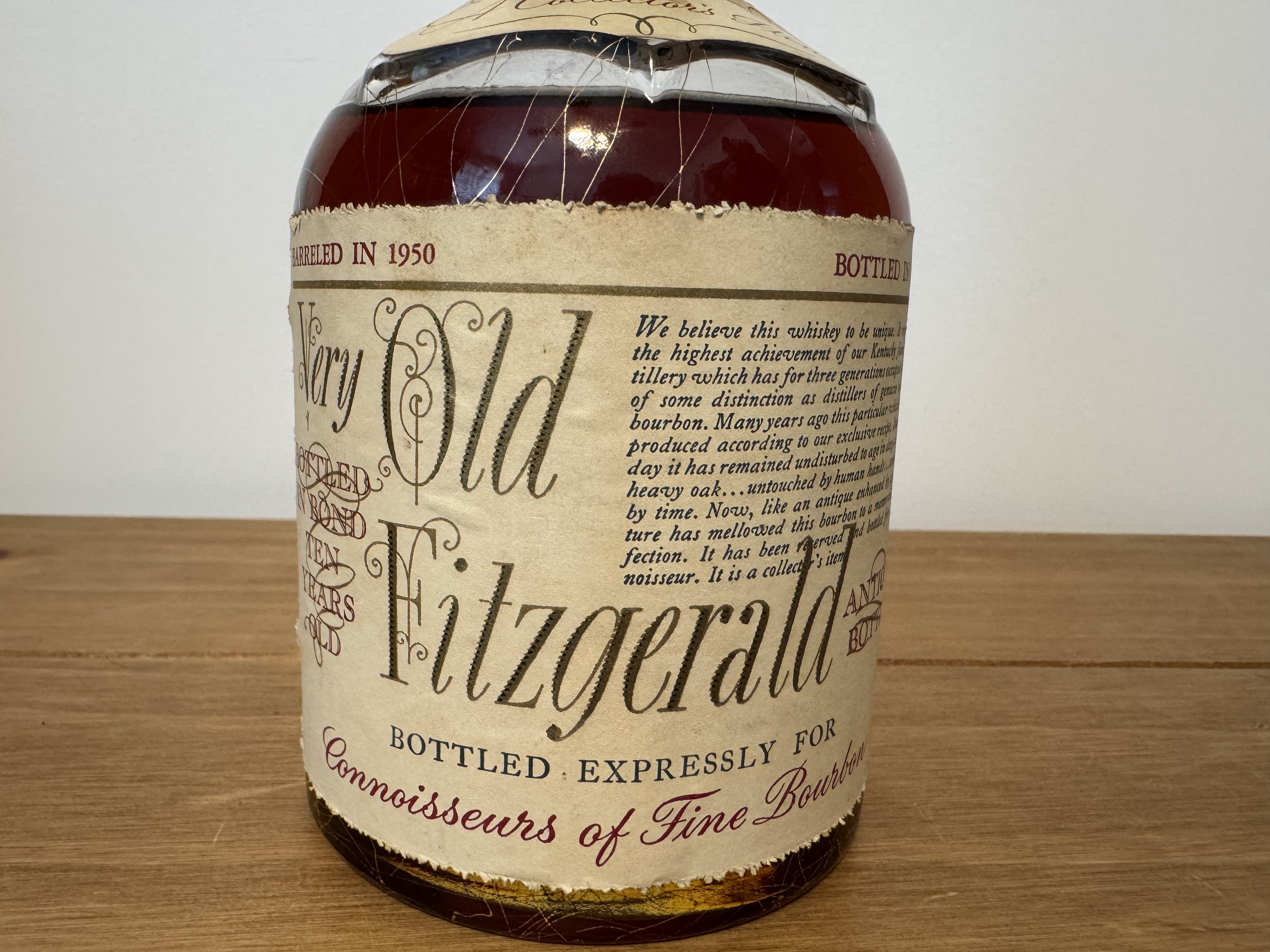 - 10 Years A collectors Item Barreled in 1950 Bottled in 1960 Very Old Fitzgerald Bottled in Bond Ten Years Old Bottled Expressly for Connoisseurs of Fine Bourbon Antique bottle A bio about the Kentucky family distillery and the process making On the back info 100 proof Stitzel-Weller Distillery