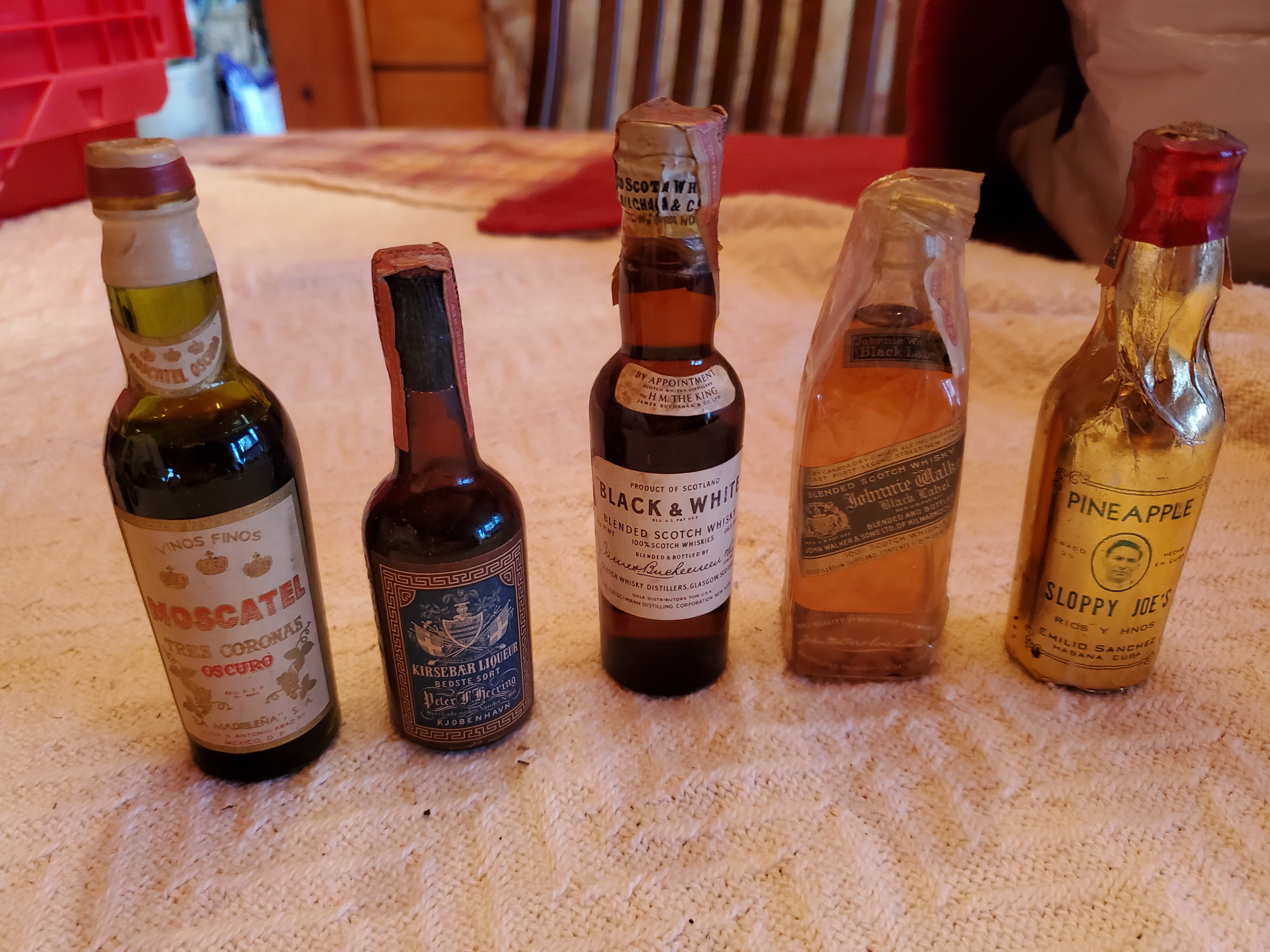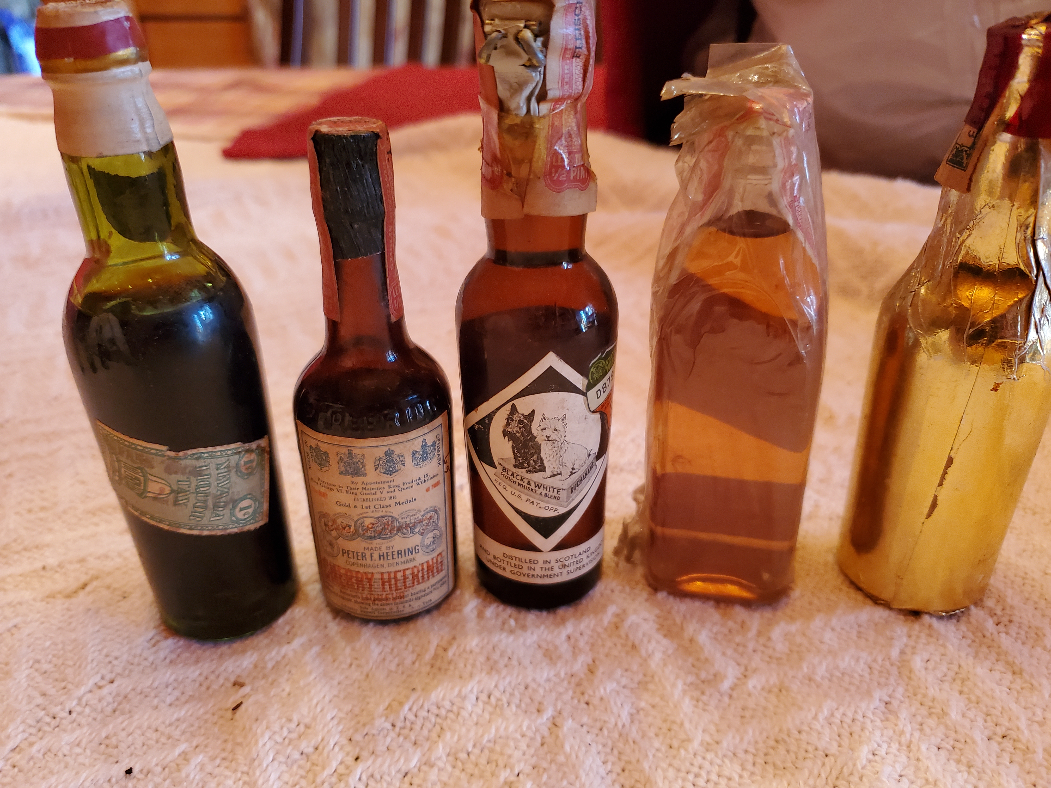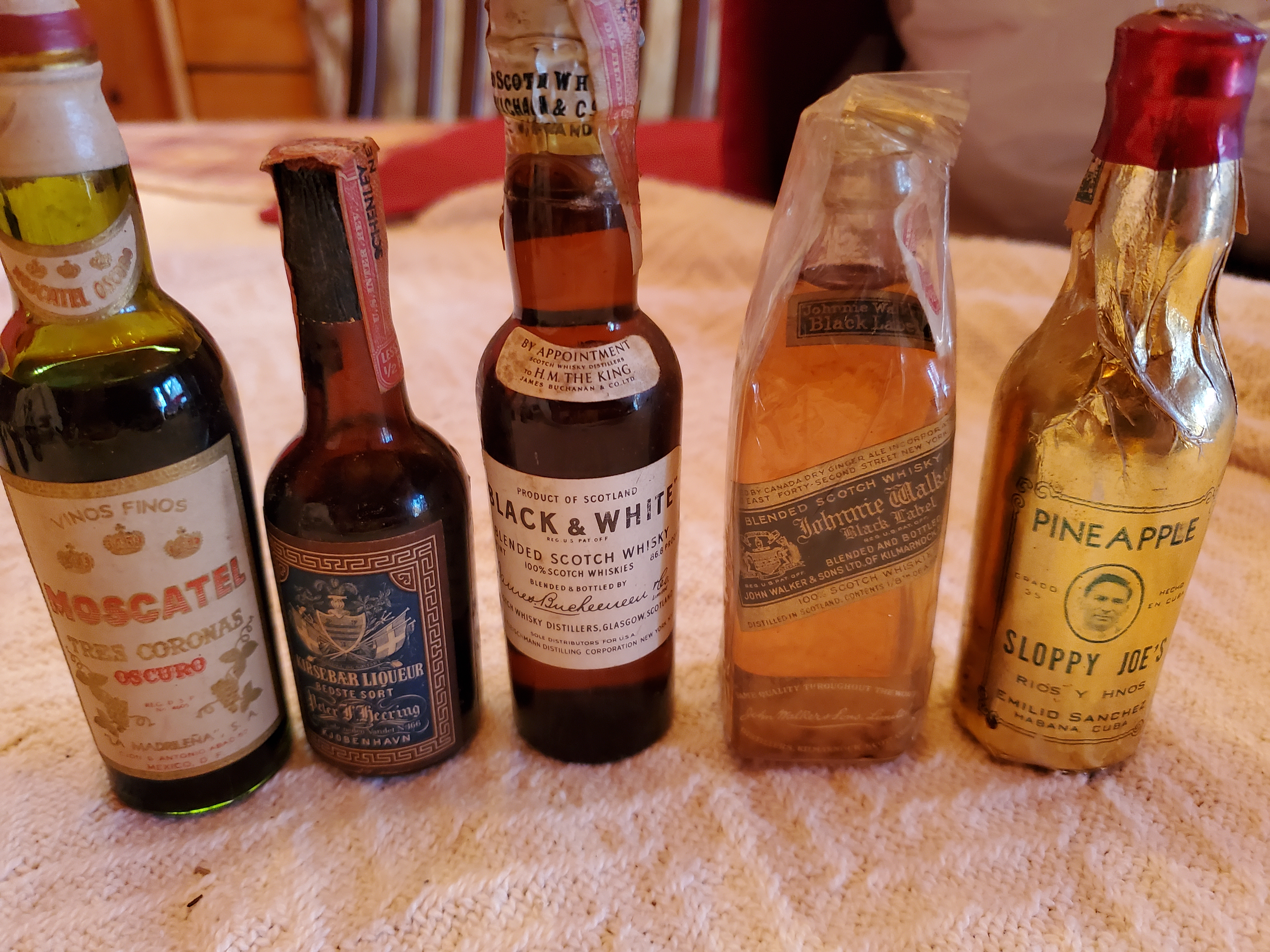 - I have over 100 miniature bottles, all unopened from 1950s that my Grandfather collected while traveling around the world for work. These 5 are the fullest with the two with outer wrapping.