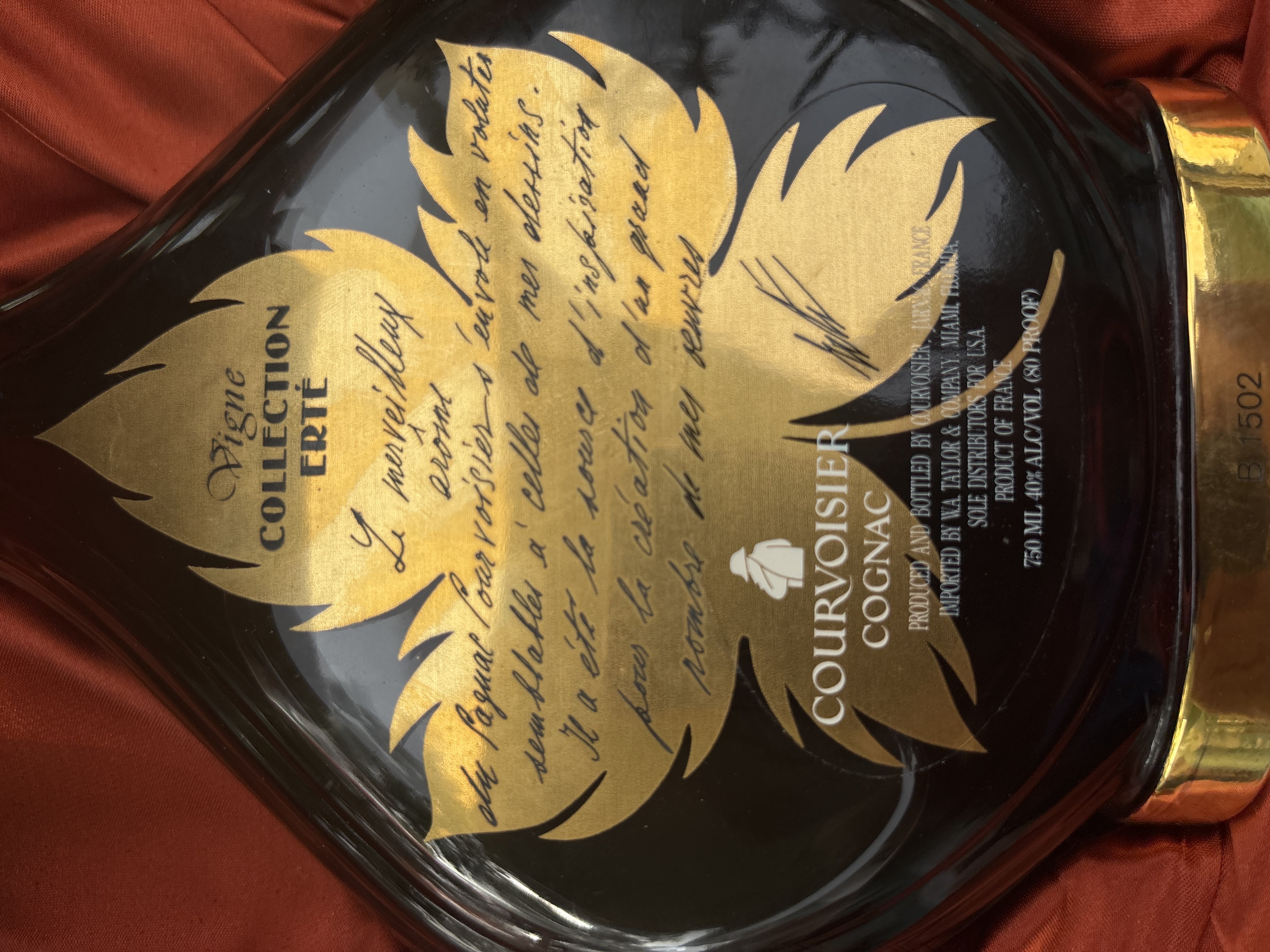 - Security seal label reads: Extra Courvoisier Cognac Bottom of bottle reads: Vigne Collection Erte