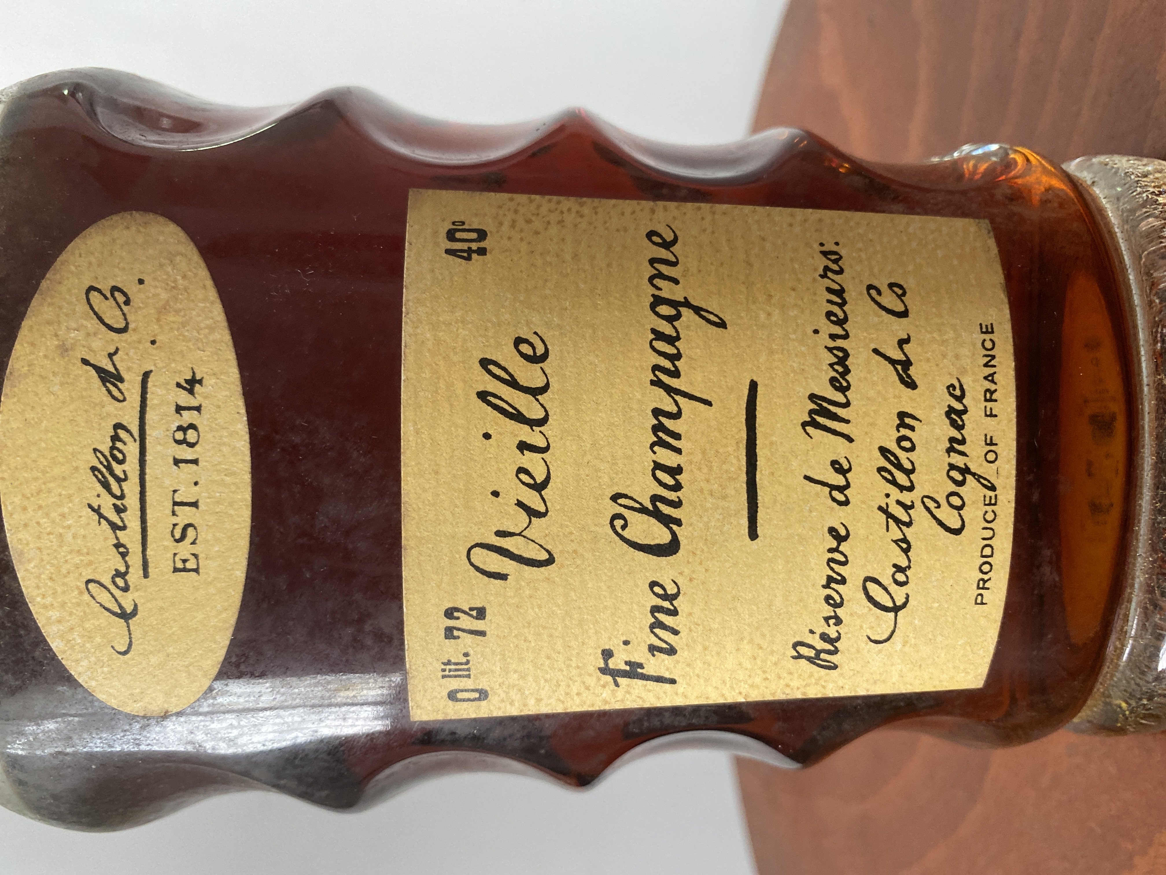 - • “Castillon & Co.” • “EST. 1814” • “0 lit. 72” • “Vieille Fine Champagne” • “Réserve de Messieurs” • “Castillon & Co.” • “PRODUCE OF FRANCE”