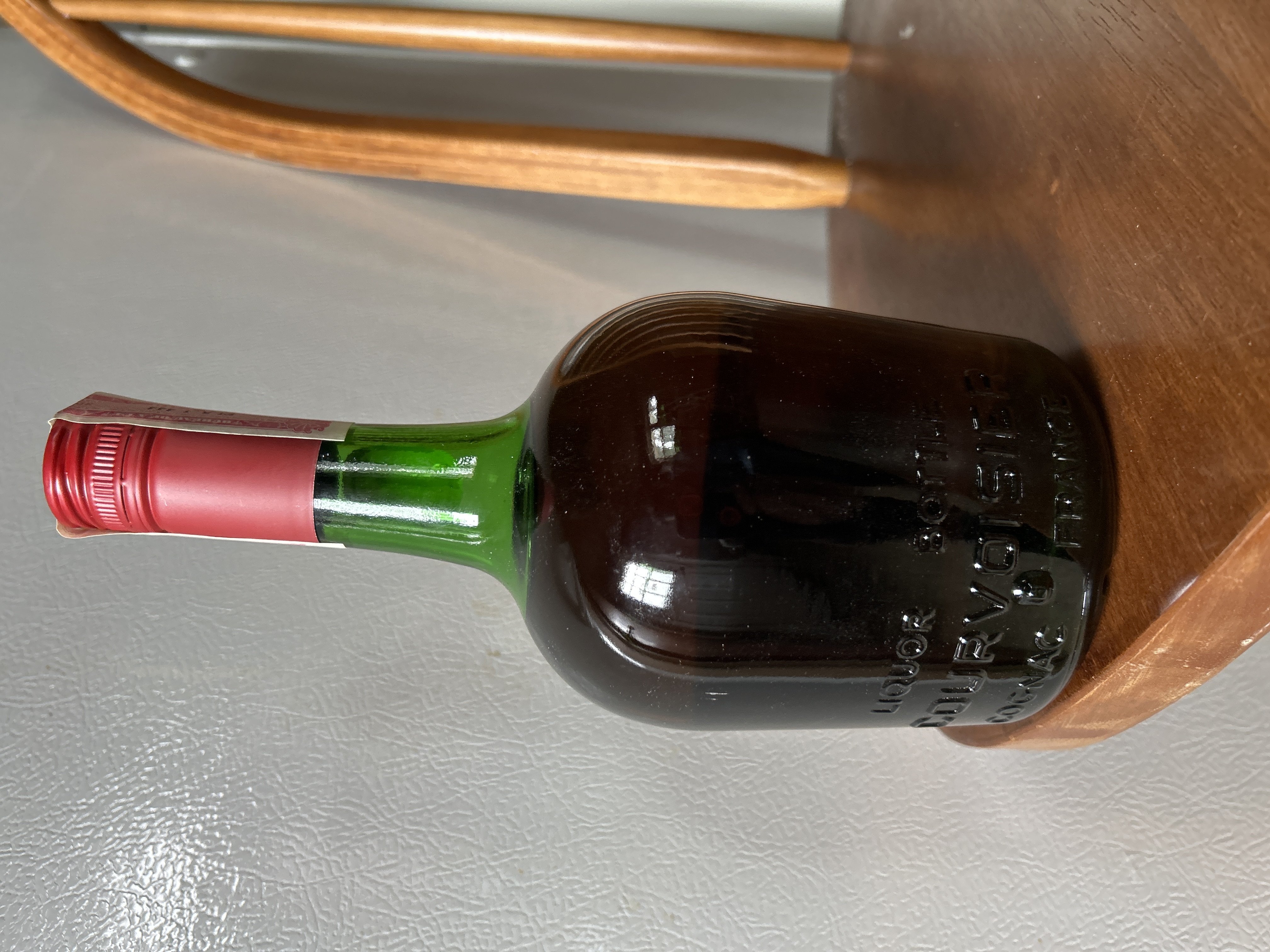 - From my late aunt and uncle’s house. Likely from the 1960s. Possibly purchased at a duty-free shop at Scotland or London airport (have other bottles is sealed duty-free boxes). Unopened. Wire intact around cap.