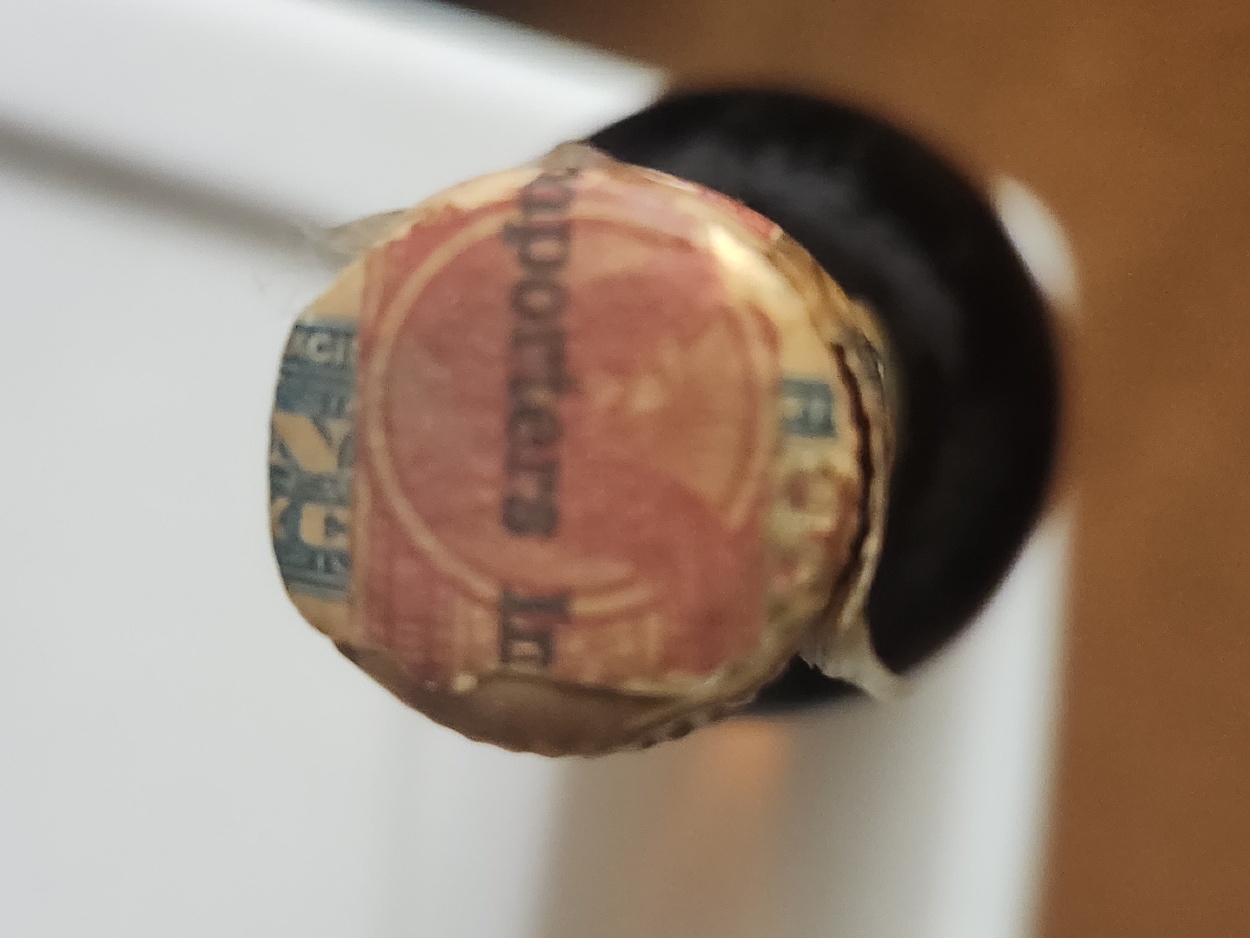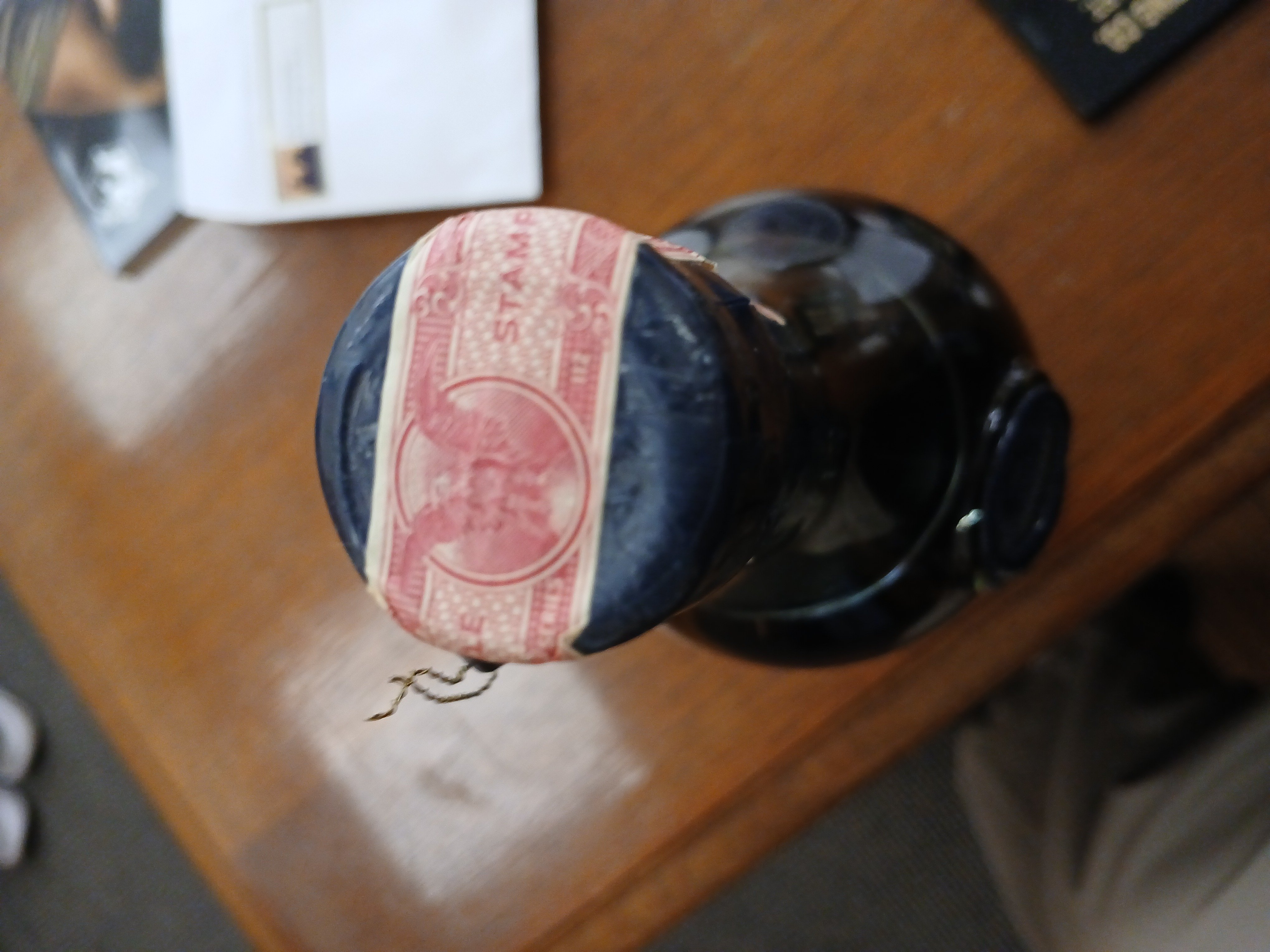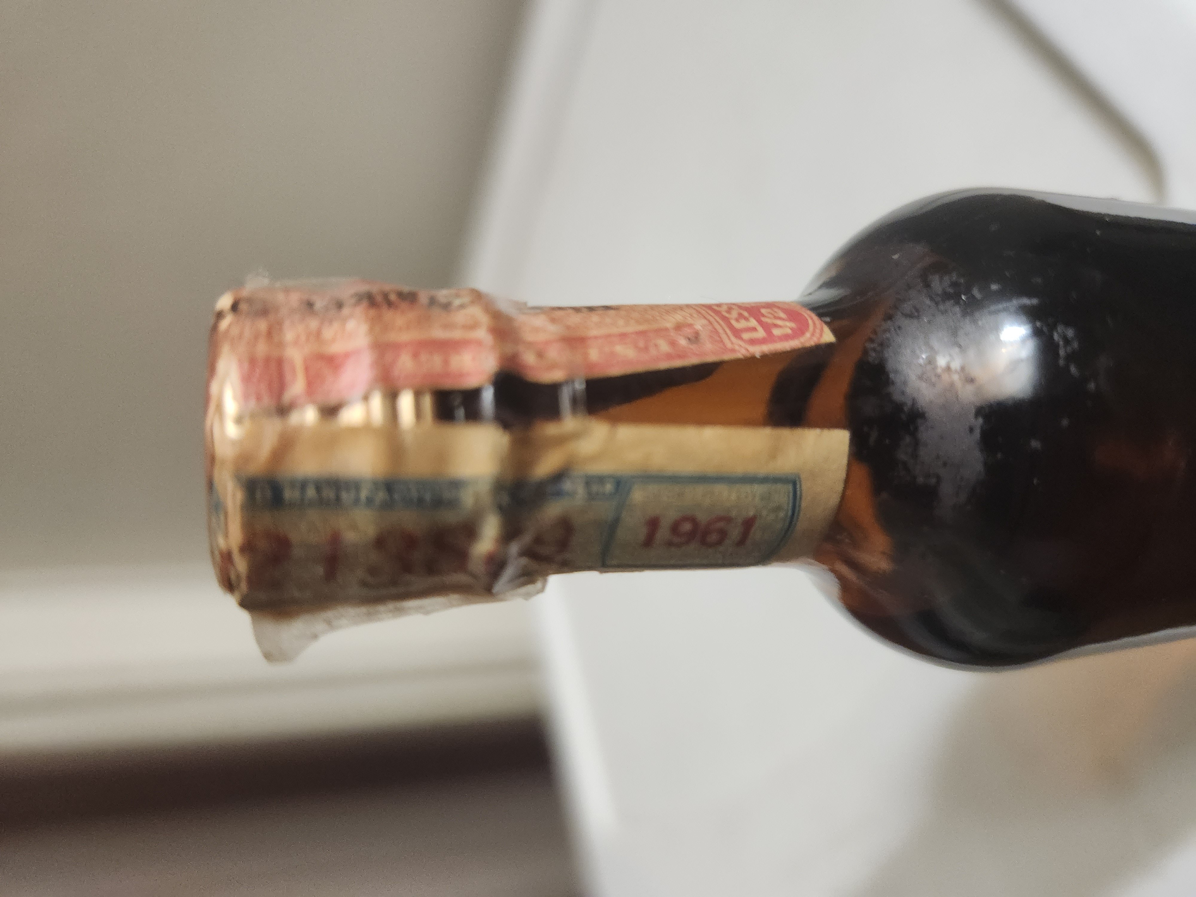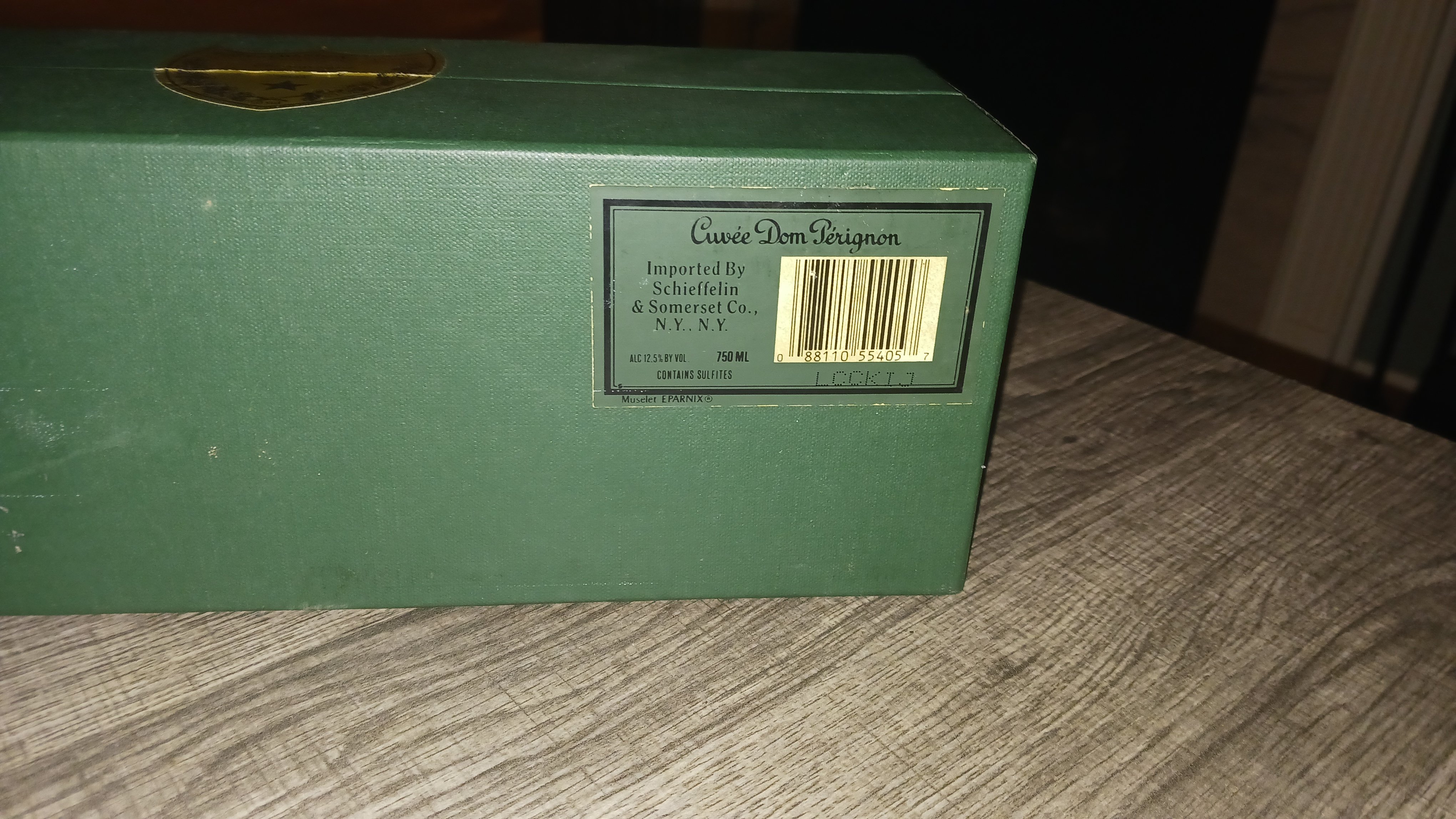 - We bought a home and this was left in a cabinet in the basement, still in it’s wooden box with the plastic around the cork and paper seal and a brown ribbon tied around it.