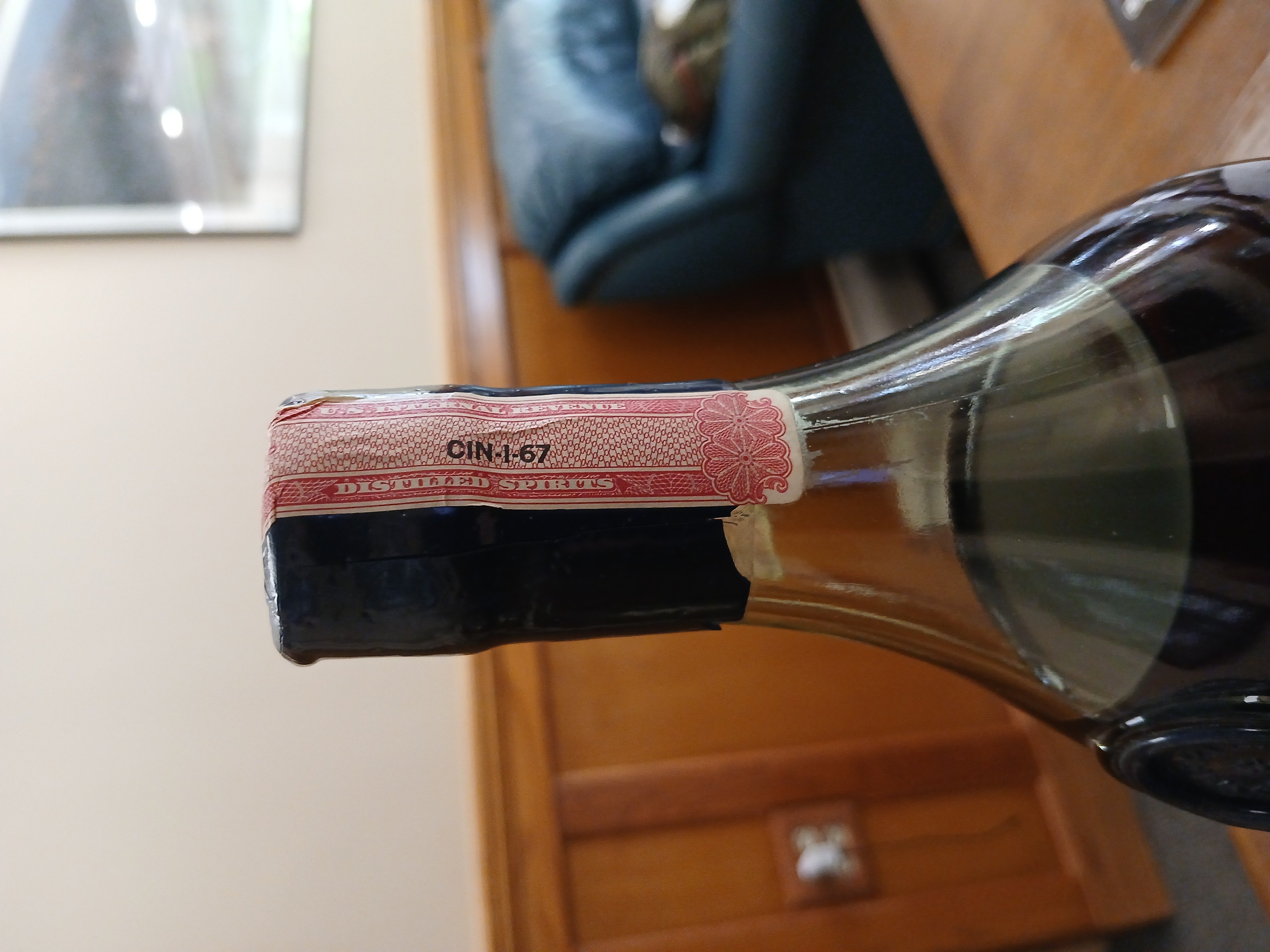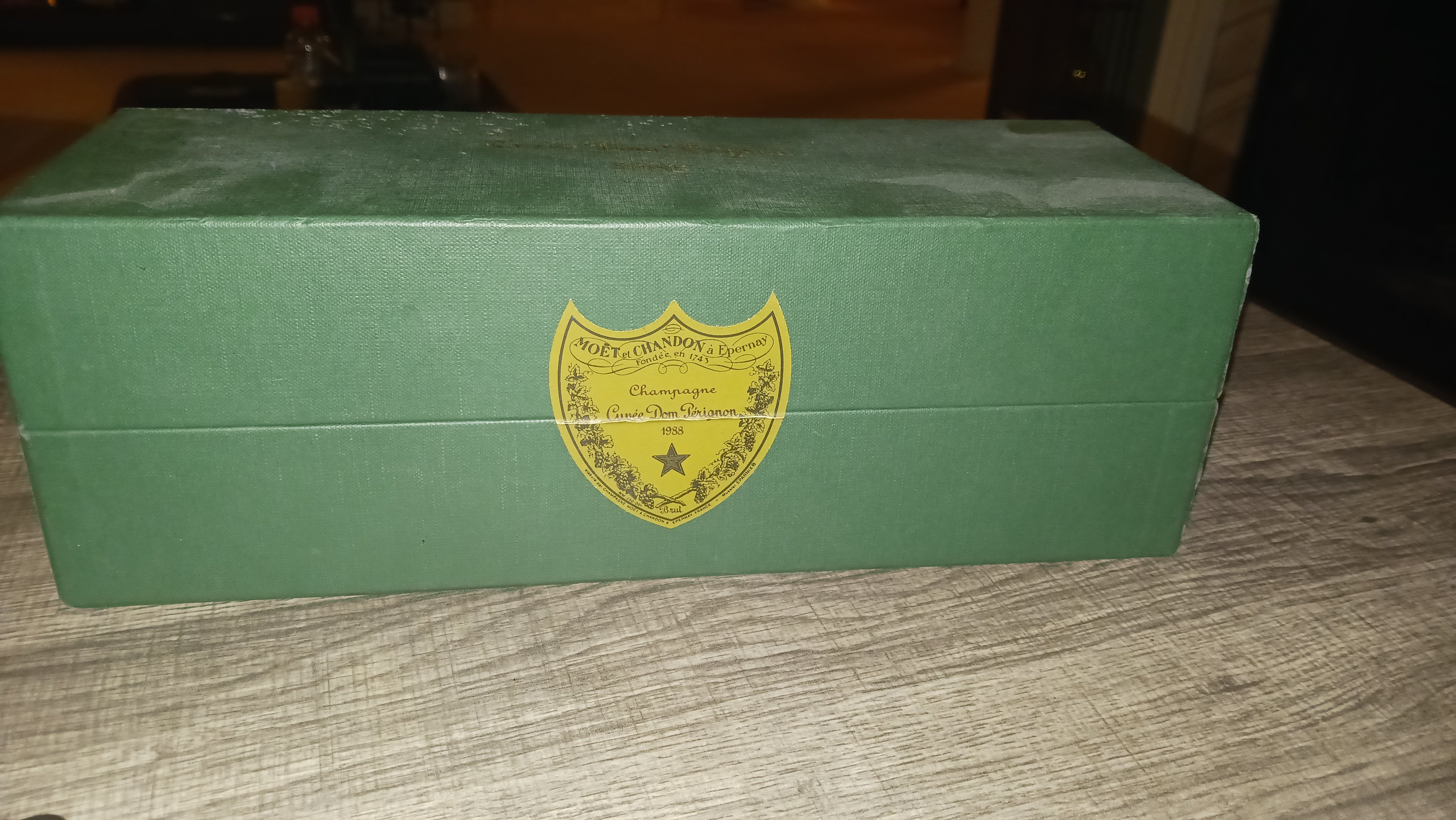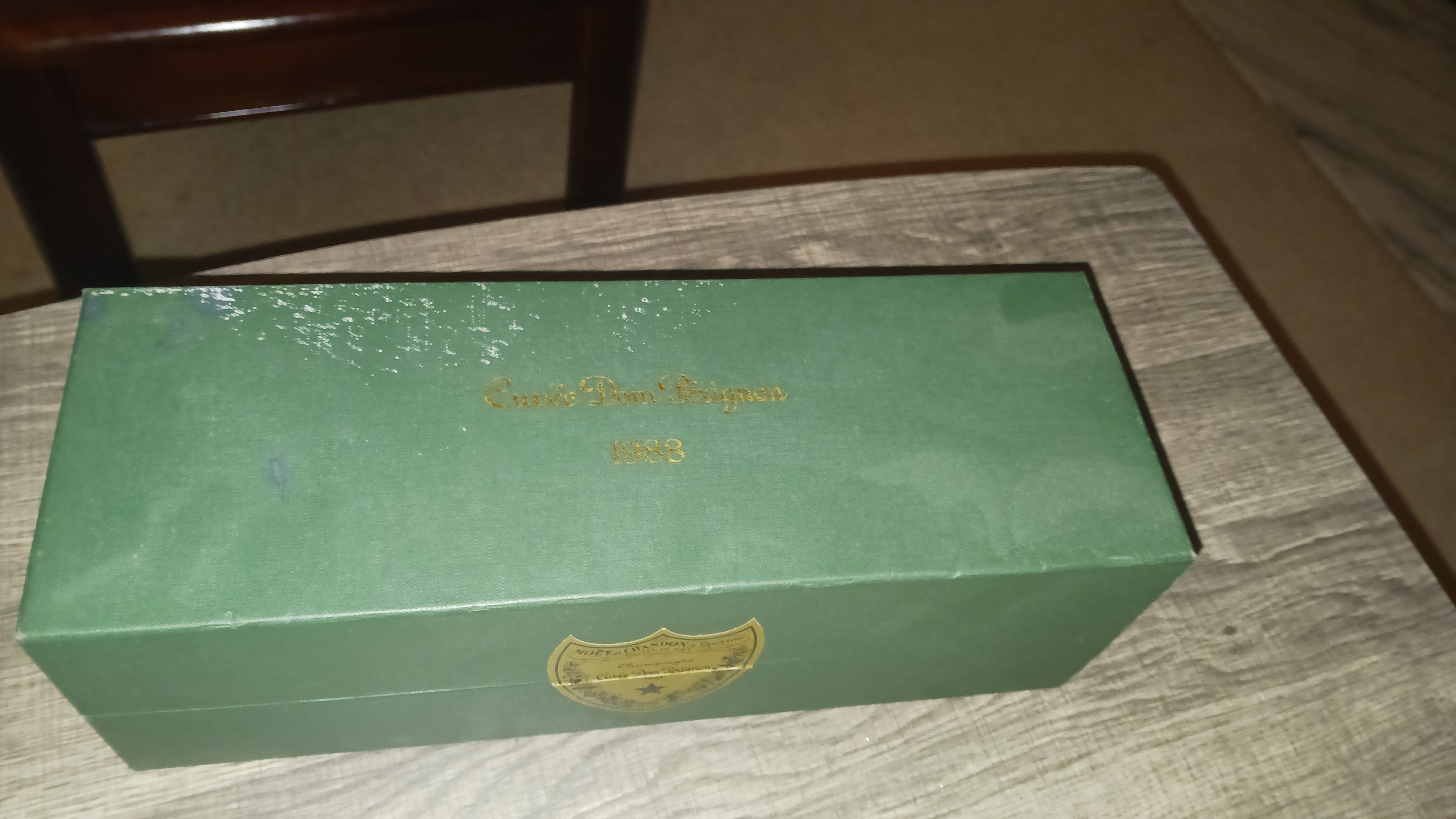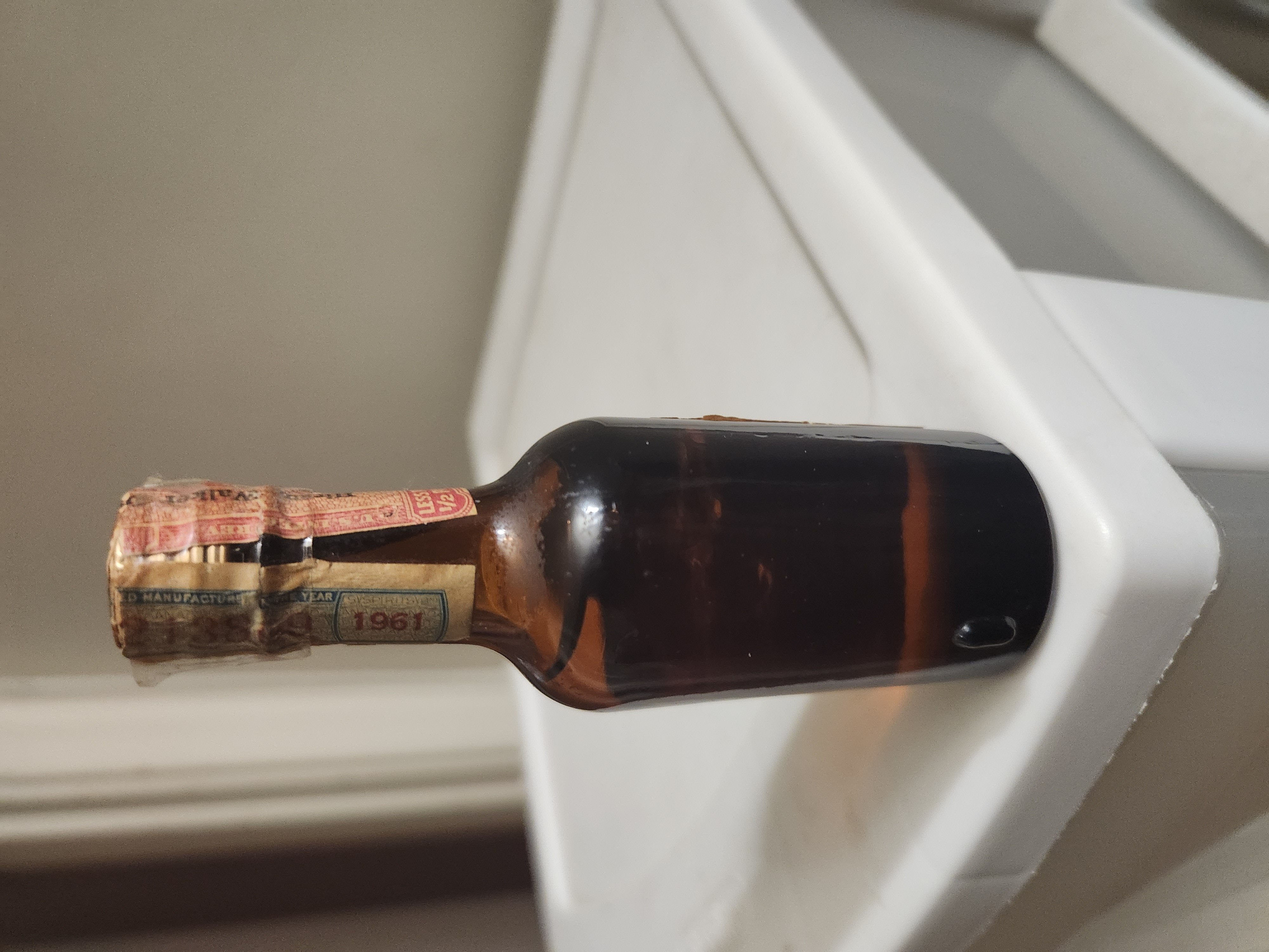 - We bought a home and this was left in a cabinet in the basement, still in it’s wooden box with the plastic around the cork and paper seal and a brown ribbon tied around it.