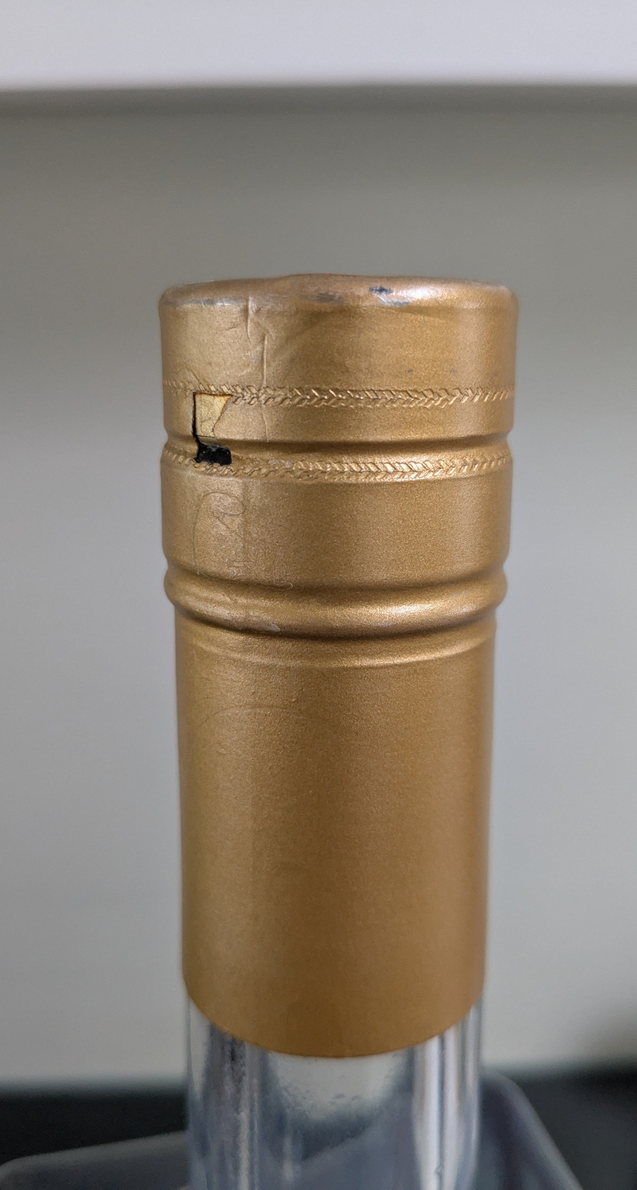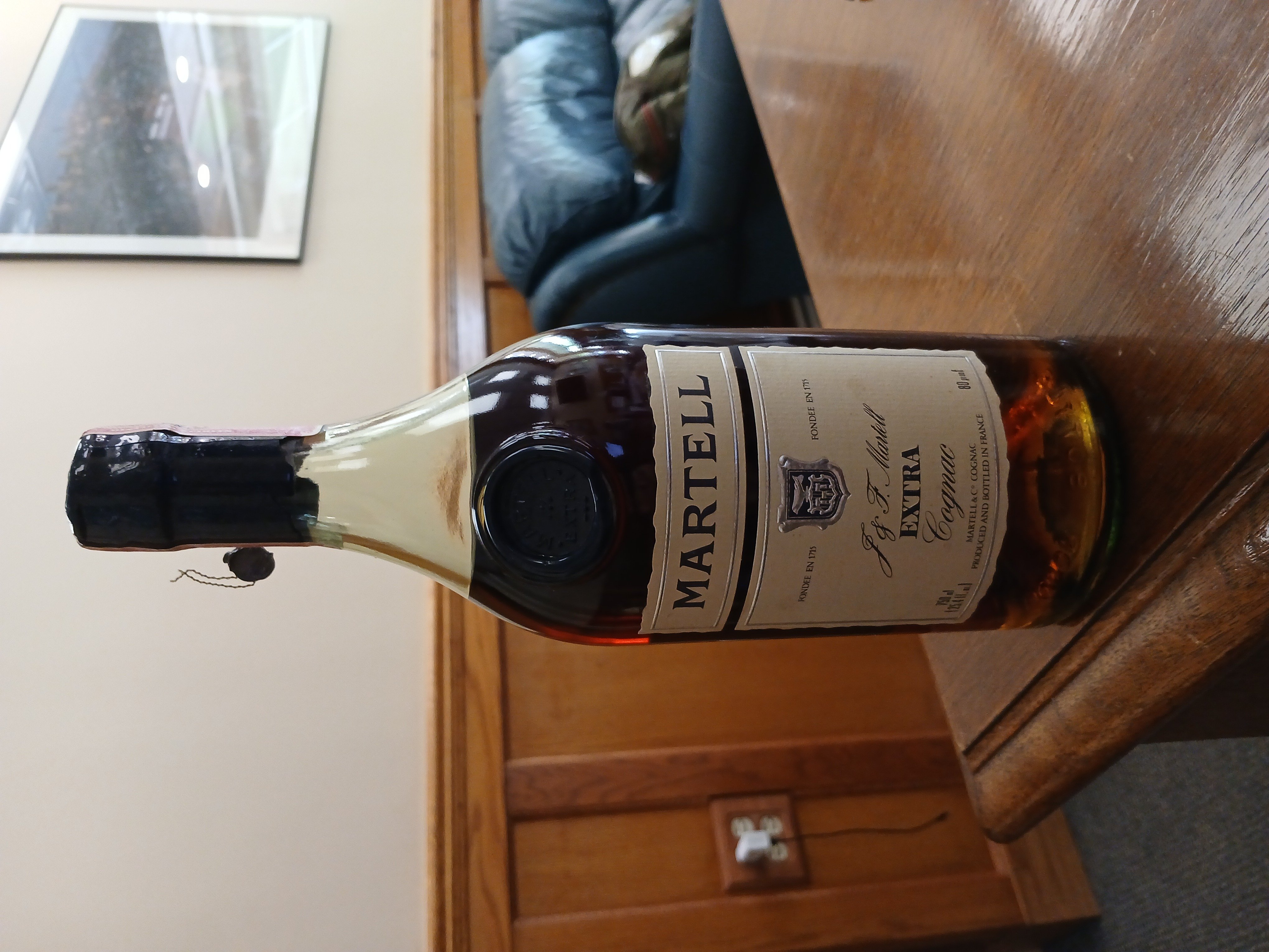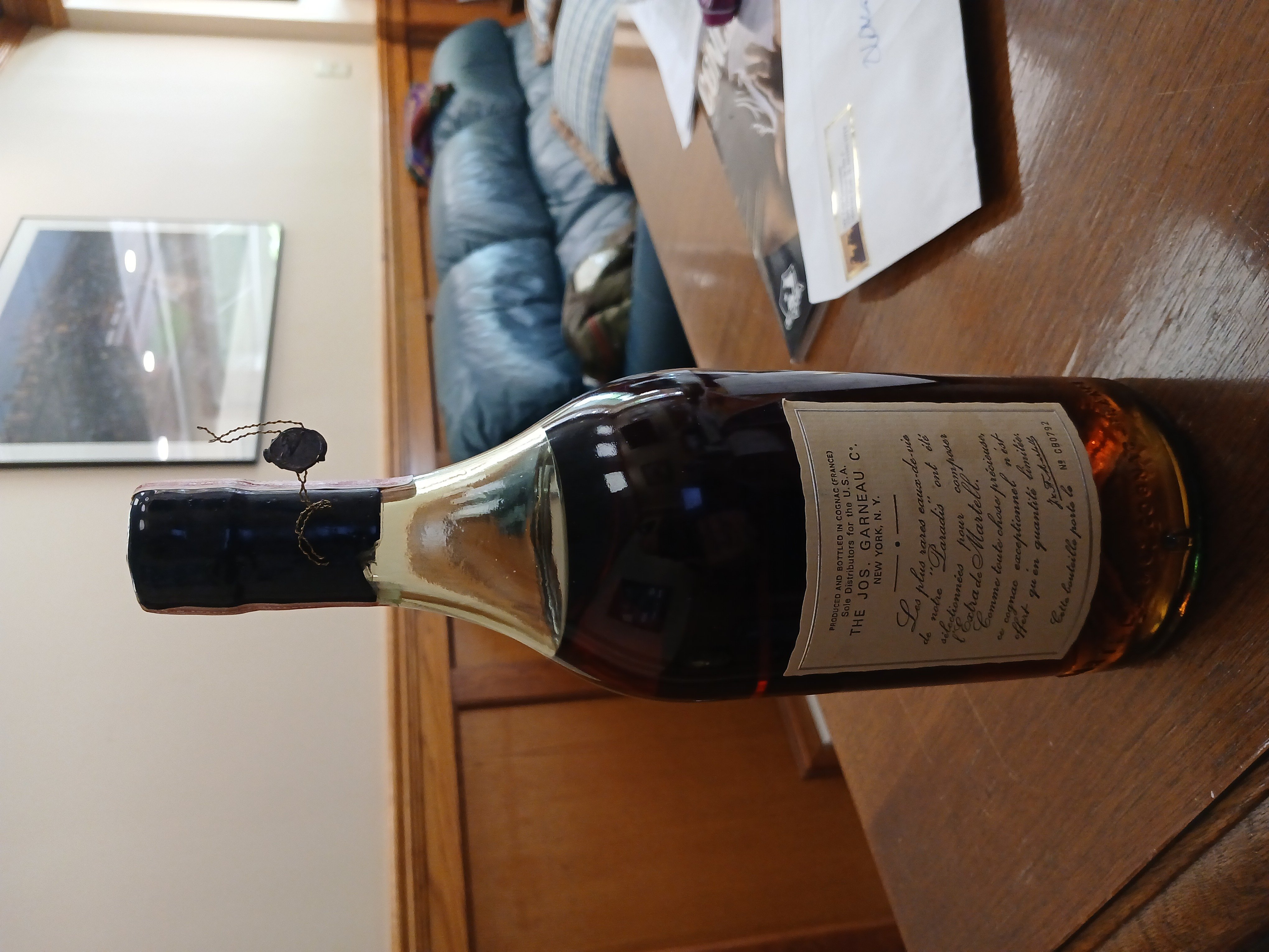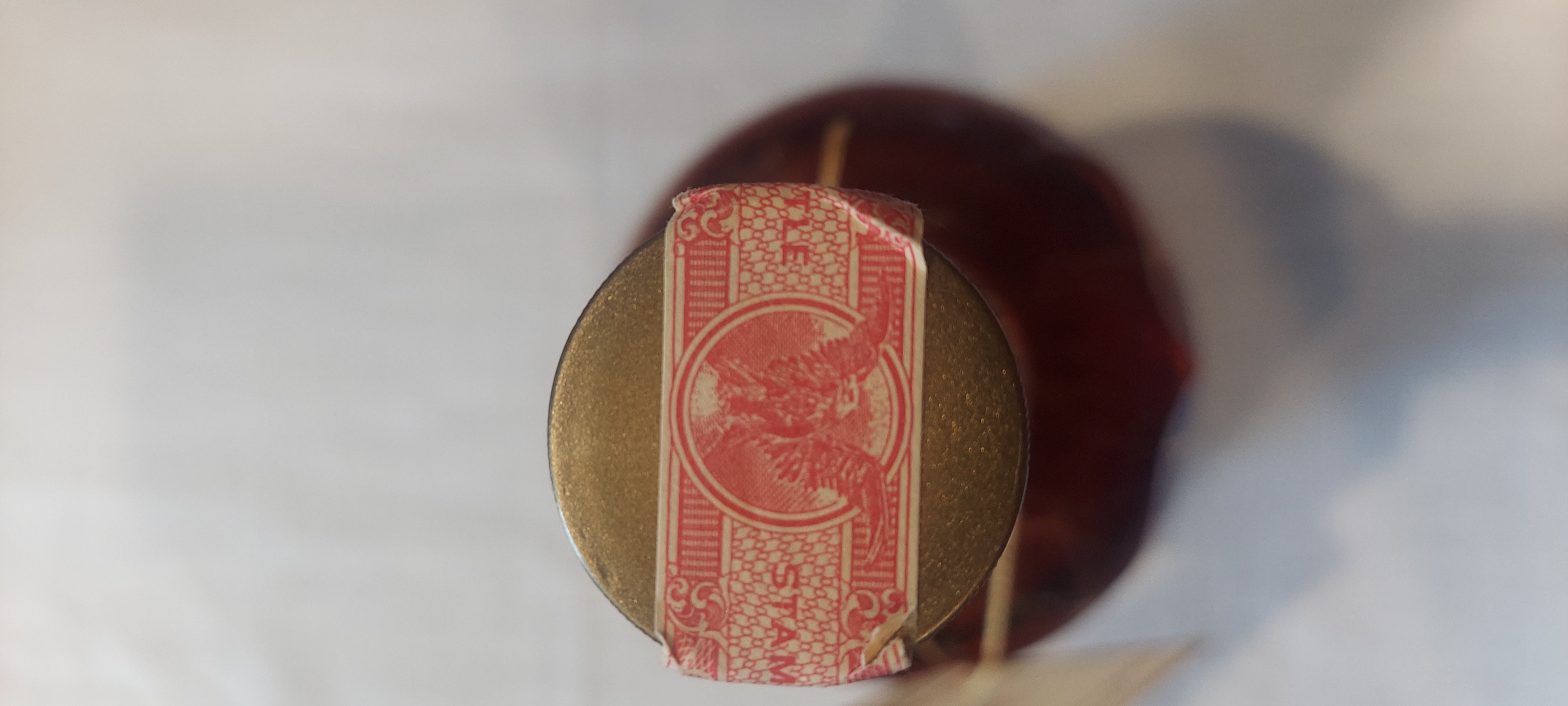 - We bought a home and this was left in a cabinet in the basement, still in it’s wooden box with the plastic around the cork and paper seal and a brown ribbon tied around it.