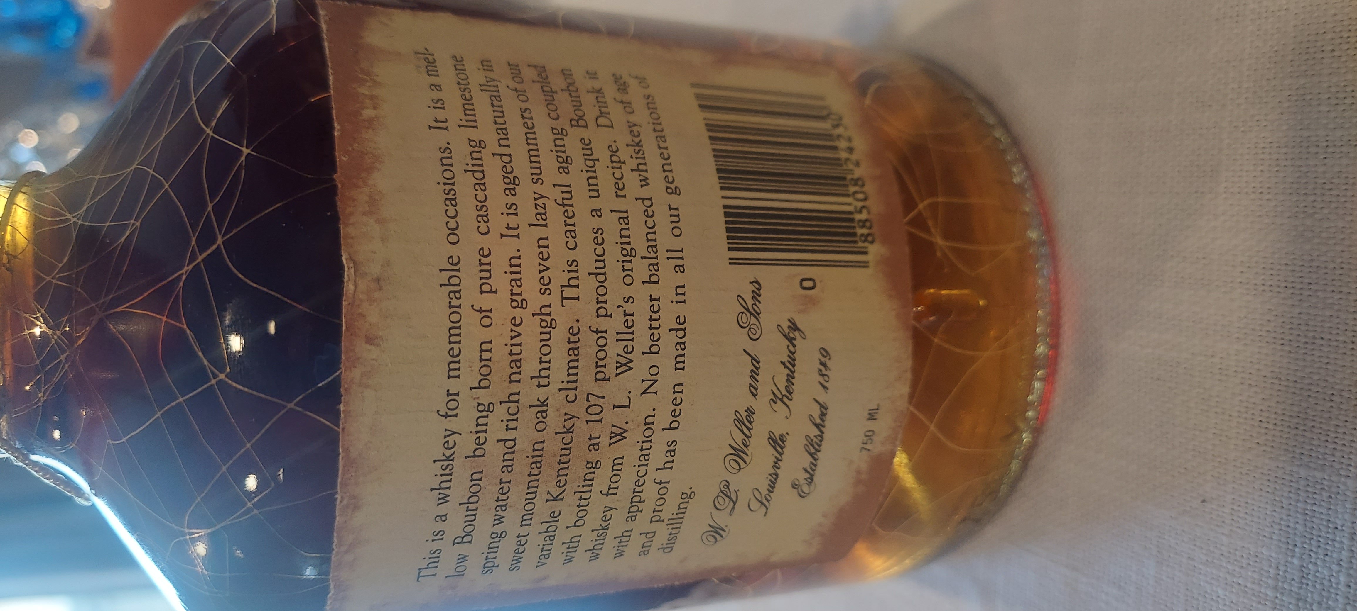 - Old weller the original 107 proof. Kentucky straight bourbon whiskey. Genuine Old line sour mash distilled and bottled by weller and sons Louisville Kentucky 7 summers old
