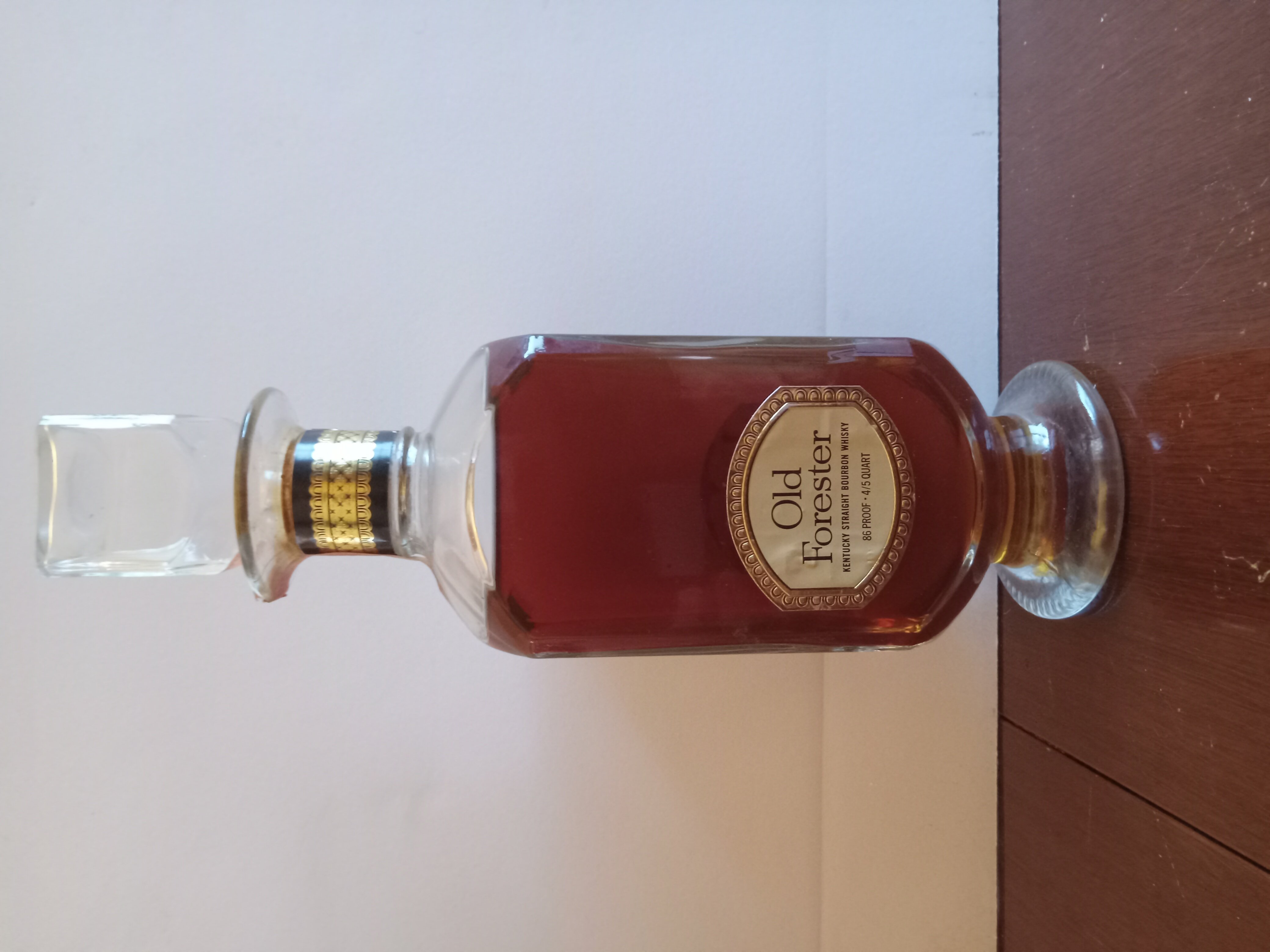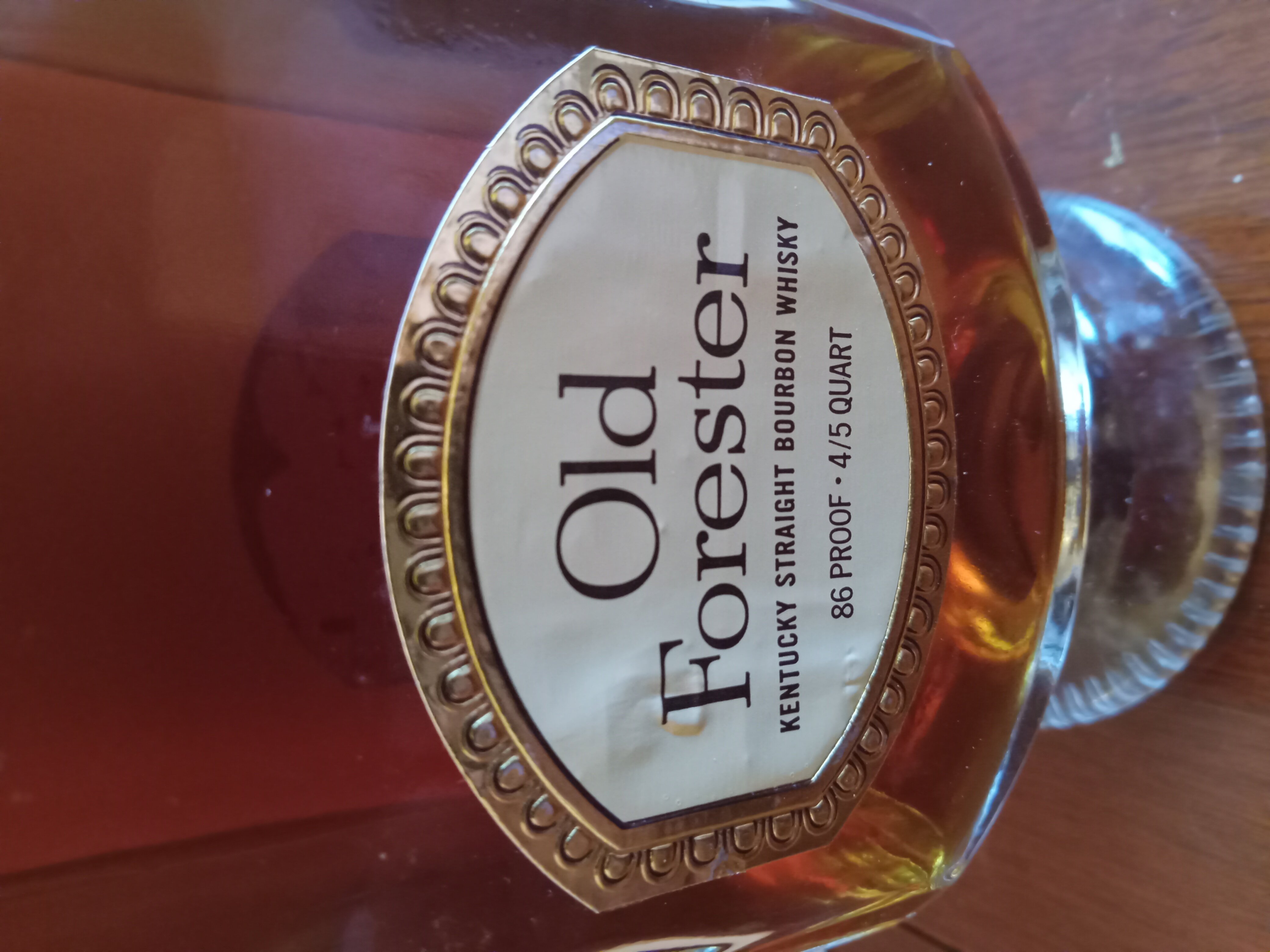 - Front Label - Old Forester - Kentucky Straight Bourbon Whisky 86 PROOF 4/5QUART Back Label - Old Forester - Kentucky Straight Bourbon Whisky -86 Proof 4/5 Quart - Distilled and Bottled by Brown Forman Distillers Corporation at Louisville in Kentucky. This Whisky is Four Years Old.