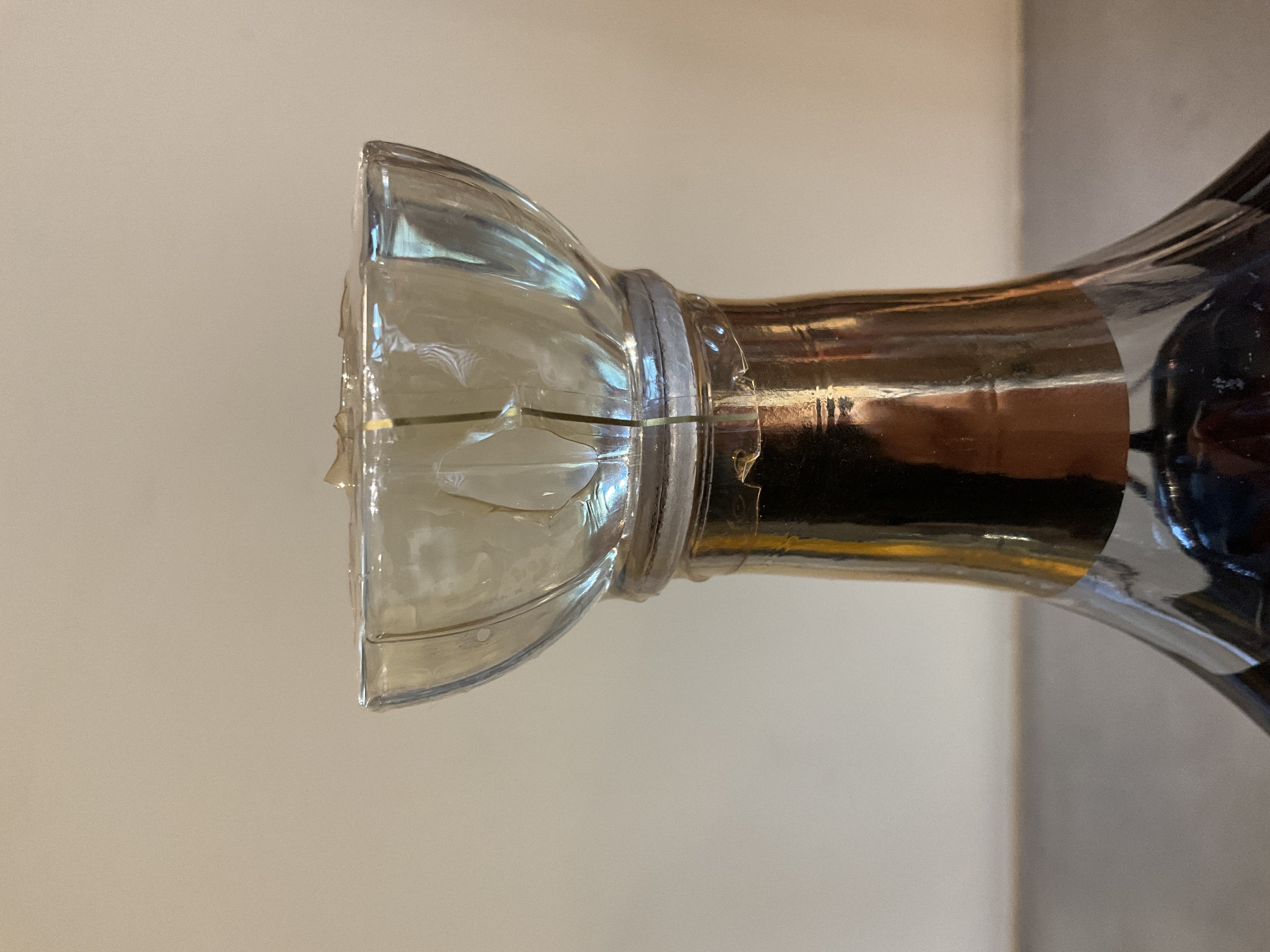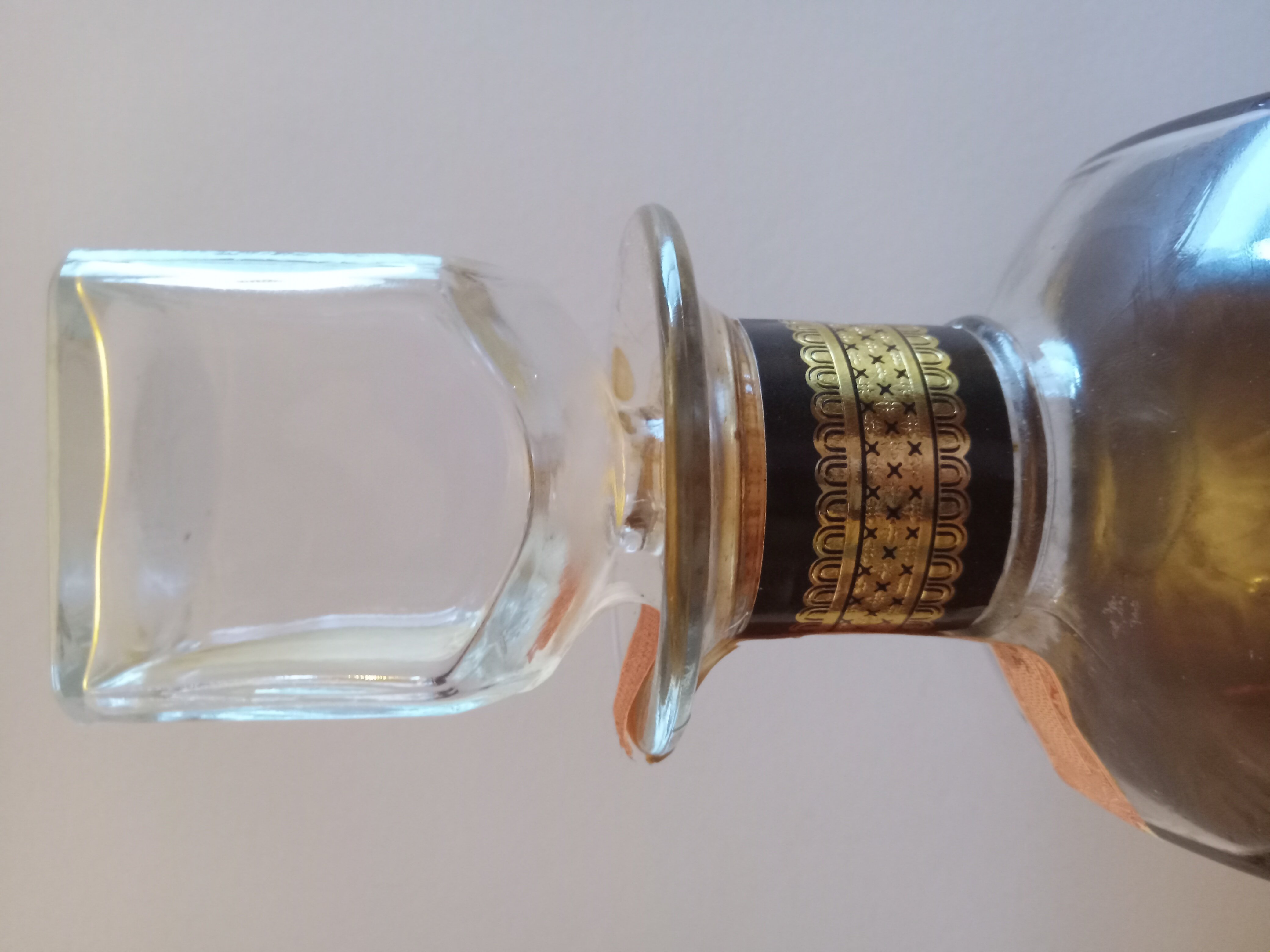 - I worked at a hotel and they shut down for a refurb. This was in the cellar and given to me by the manager of the hotel as a keepsake. I have never opened the bottle and it does look like the class stopper has been glued in to seal the bottle.
