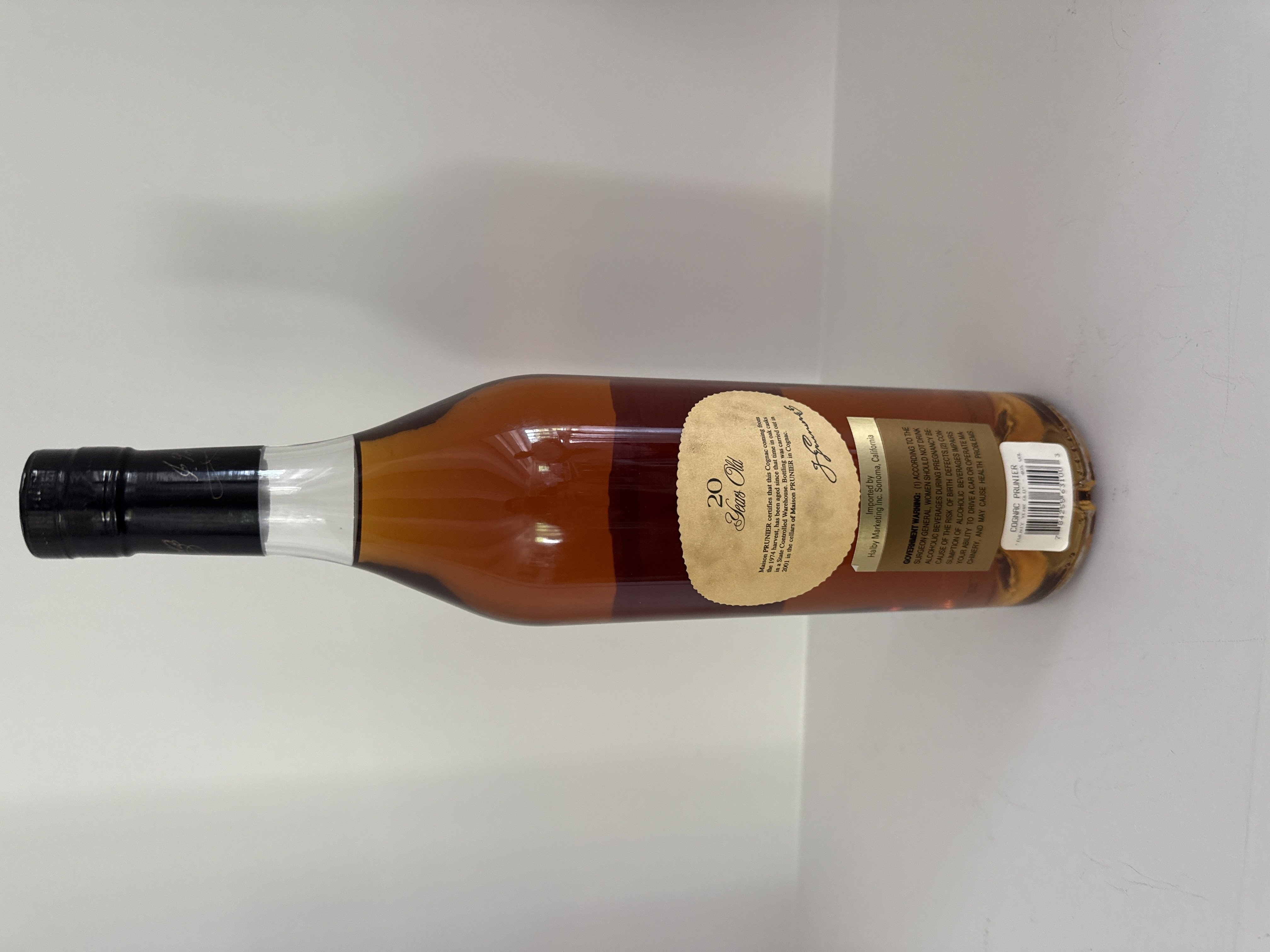 - 20 Years Old Maison PRUNIER certifies that this Cognac coming from the 1974 harvest, has been aged since that time in oak casks in a State Controlled Warehouse. Bottling was carried out in 2001 in the cellars of Maison PRUNIER in Cognac. У динні Halby Marketing Inc. Sonoma, California GOVERN AT WARNING: 1) ACCORDING TO THE SURGEON GENERAL, WOMEN SHOULD NOT DRINK ALCOHOLIC BEVERAGES DURING PREGNANCY BE CAUSE OF THE RISK OF BIRTH DEFECTS. (2) CONSUMPTION OF ALCOHOLIC BEVERAGES IMPAIRS YOUR ABILITY TO DRIVE A CAR OR OPERATEMA CHINERY, AND MAY CAUSE HEALTH PROBLEMS. CHINERY, AND MAY CAUSE HEALTH PROBLEMS. COGNAC PRUNIER "TUENTY YEAR OLD" - 40% UNL 84255 63100 3