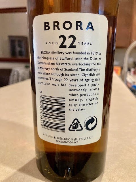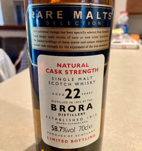 - My daughter purchased this bottle of BRORA rare malt scotch, in Scotland, in 1995 and gave it to me then as a gift.