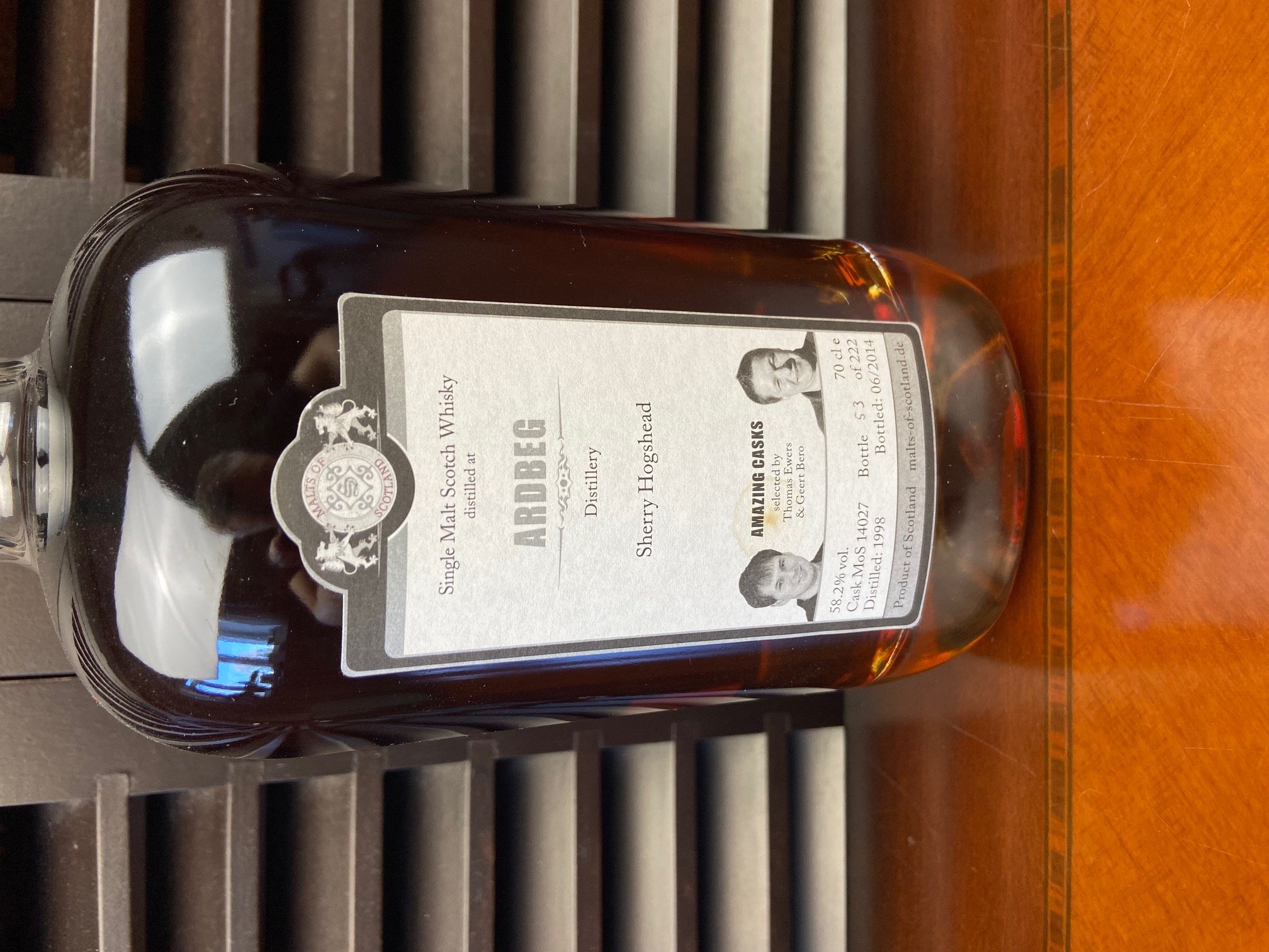 - Ardbeg Sherry Hogshead Amazing Casks Selected by Thomas Ewers & Geert Bero 58.2% 70 cl e Cask MoS 14027 Bottle 53 of 222 Distilled: 1998 Bottled: 06/2014 Product of Scotland malts-of-scotland.de