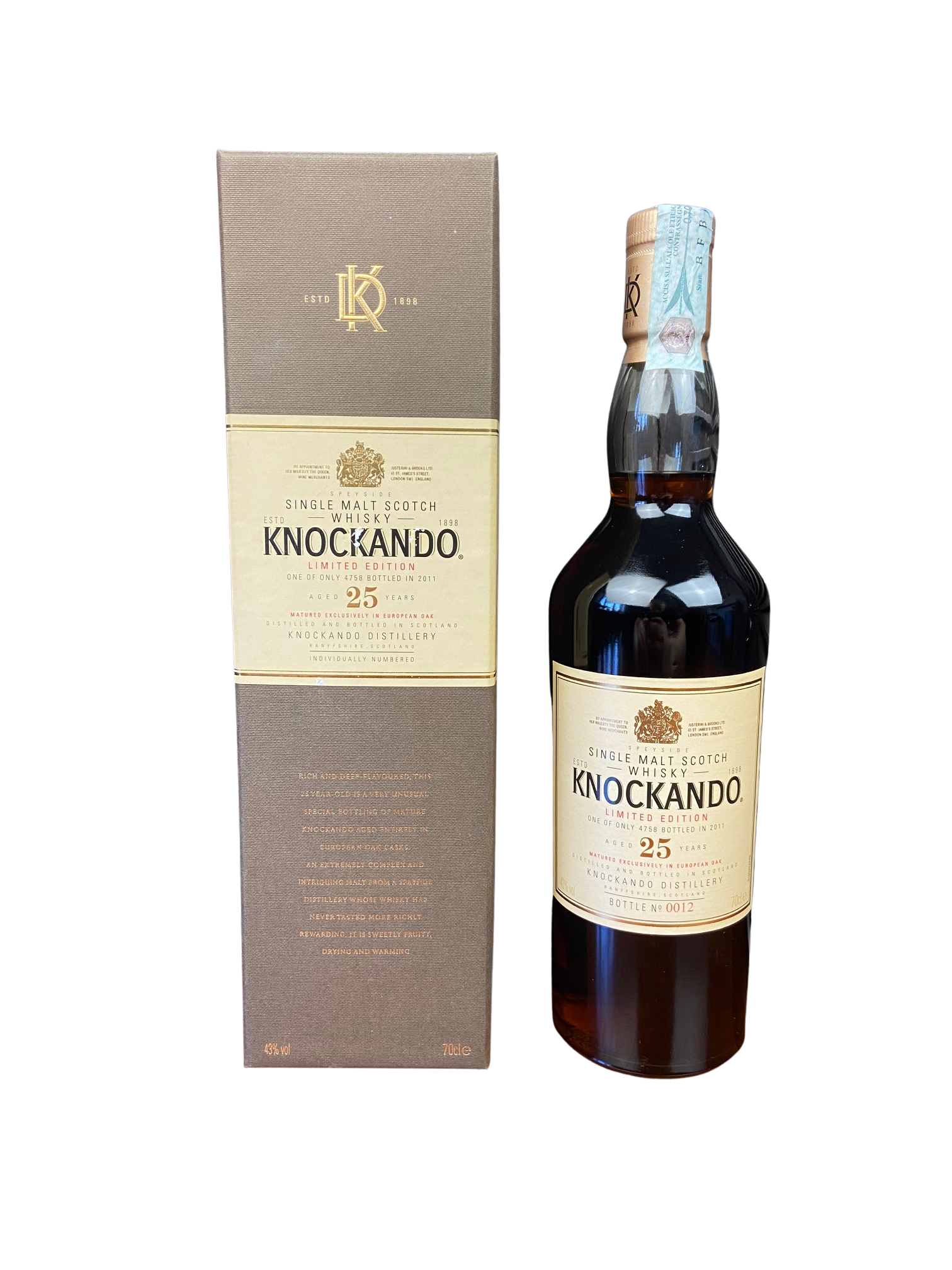 - Knockando Limited Edition One of only 4758 Bottled in 2011 Aged 25 Years Matured exclusively in European oak Bottle No 0012 43% 70cl
