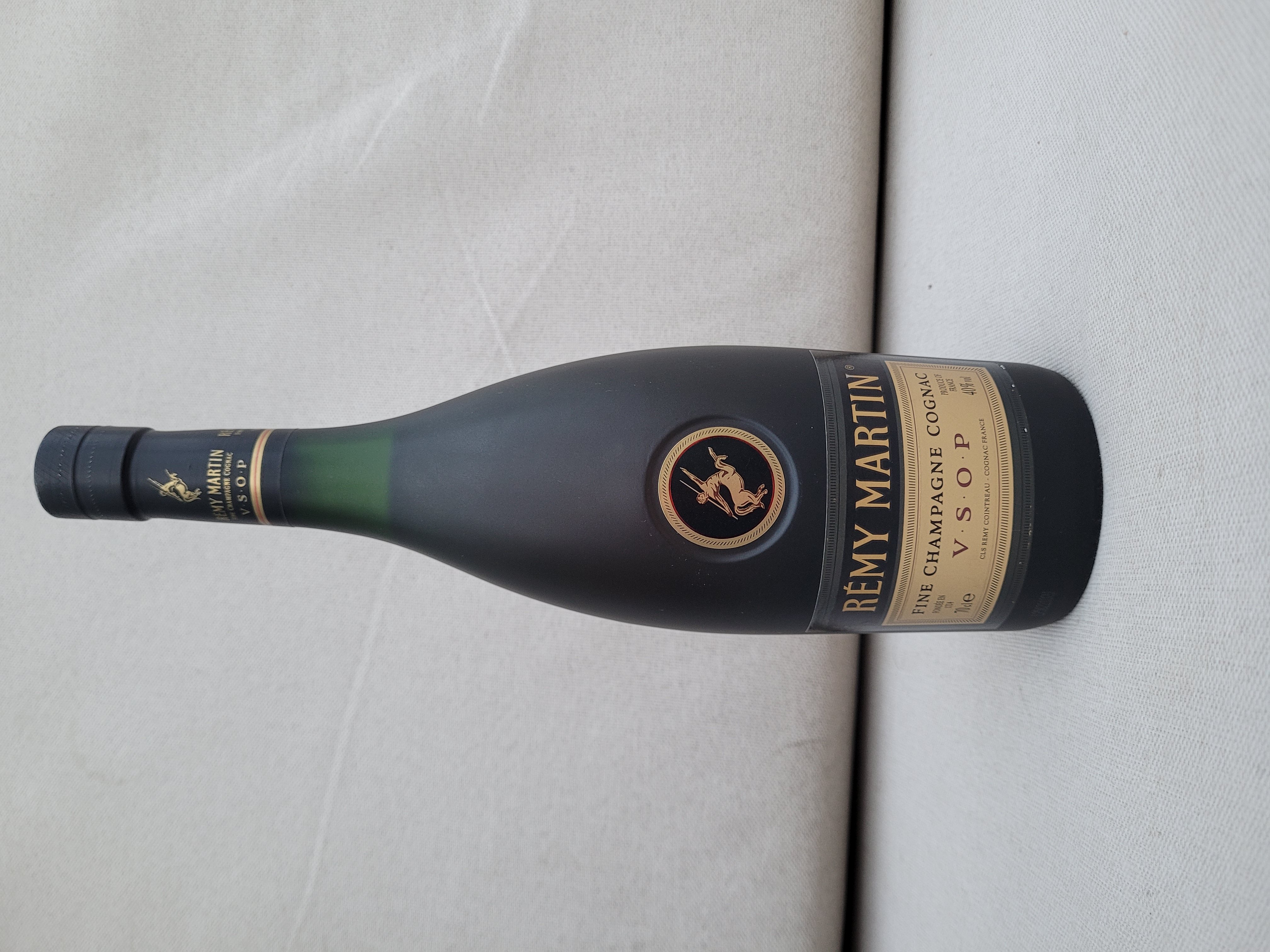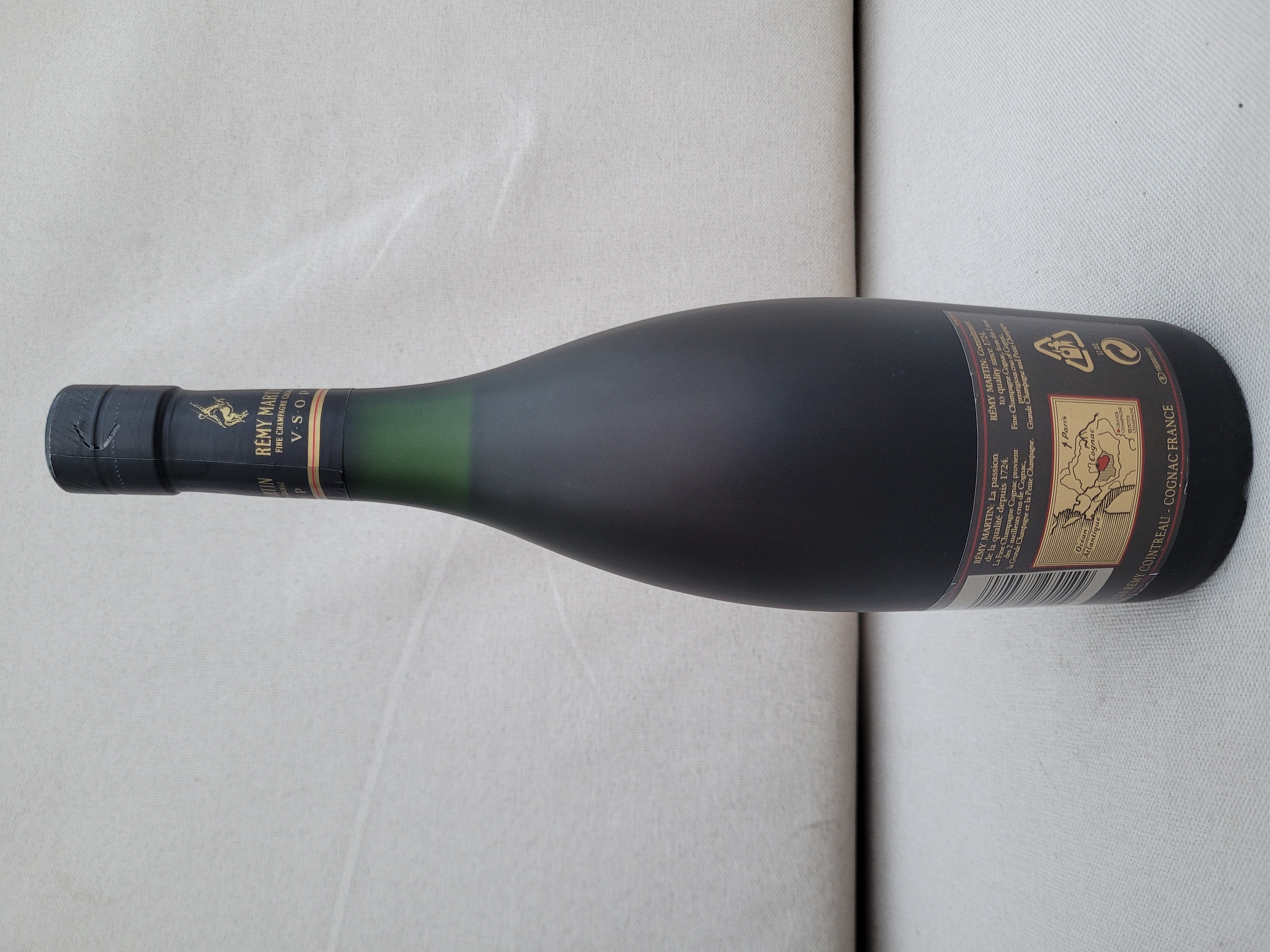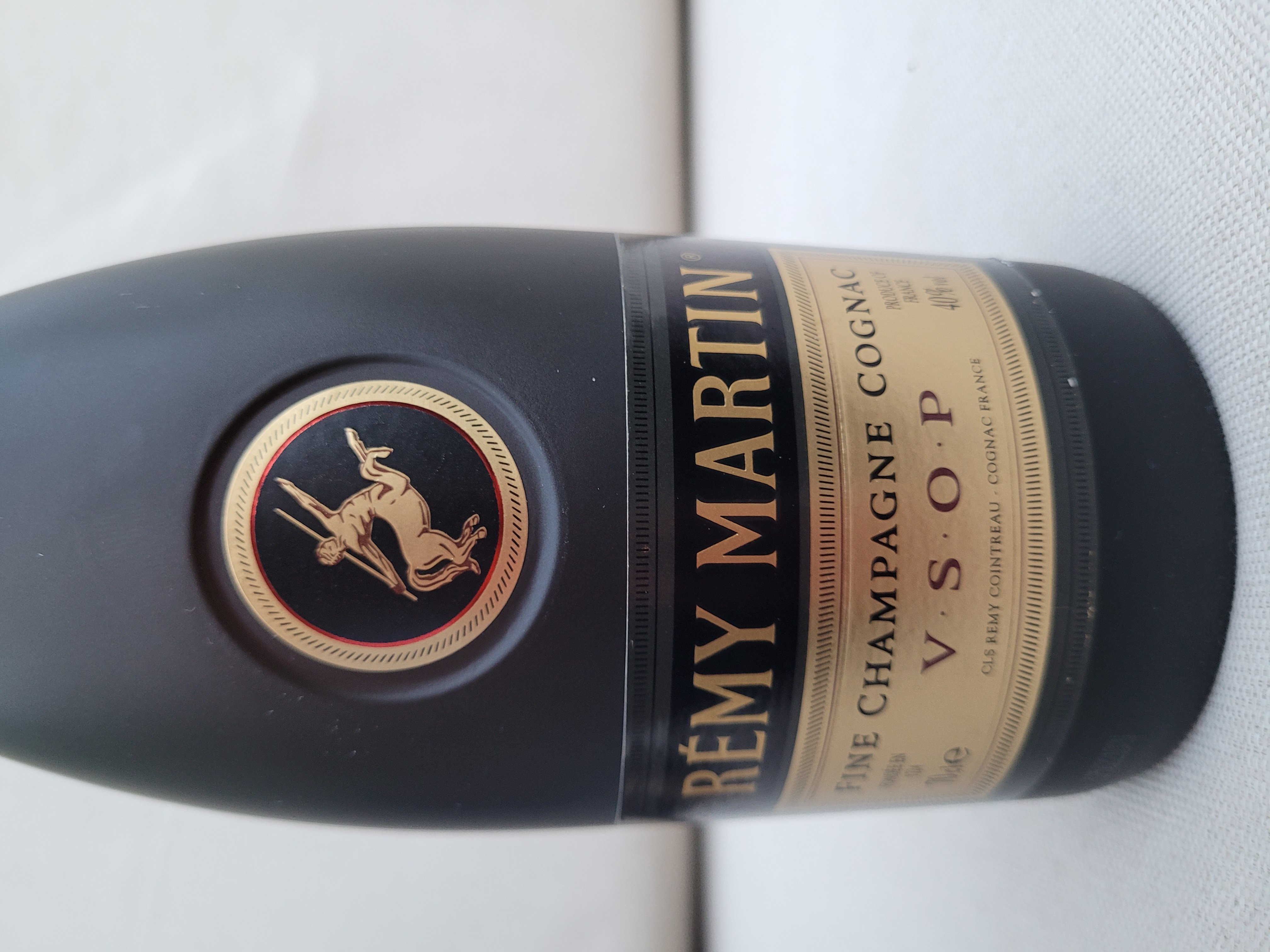 - Front of bottle: Remy Martin Fine champagne cognac VSOP CLS REMY COINTREAU COGNAC FRANCE PRODUCE OF FRANCE 40% Fondee en 1724 Back of bottle: REMY MARTIN La Passion de la qualite depuis 1724. La fine champagne cognac provient des 2 meilleurs crus de cognac, la grande champagne etc la petite champagne. Remy Martin commitment to quality since 1724. Fine champagne cognac from the 2 most prestigious crus of cognac, grande champagne and petite champagne. CLS REMY COINTREAU COGNAC FRANCE B 100/0000356/02 ED809EURV06