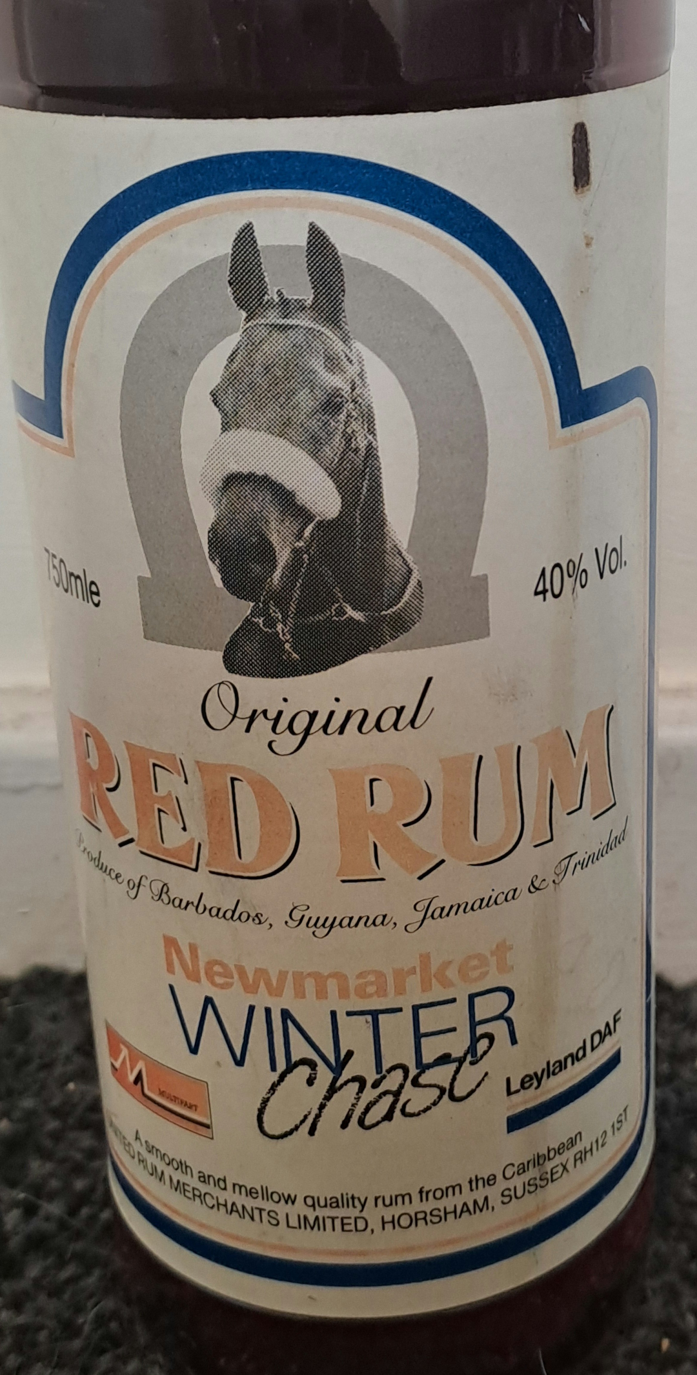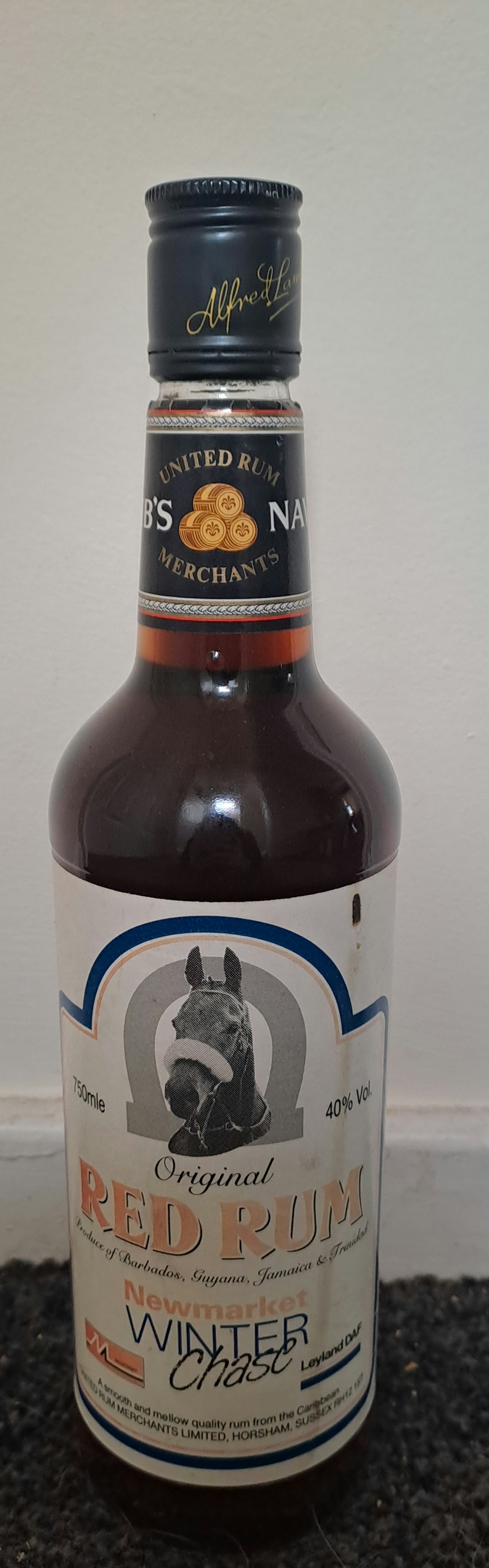 - 750mle 40%vol Original red rum Produce of Barbados Guyana, Jamaica and Trinidad Newmarket winter chase Multipart and Leyland daf A smooth and mellow quality rum from the carrbbean United rum merchants limited, Horsham, Sussex, RH12 1ST