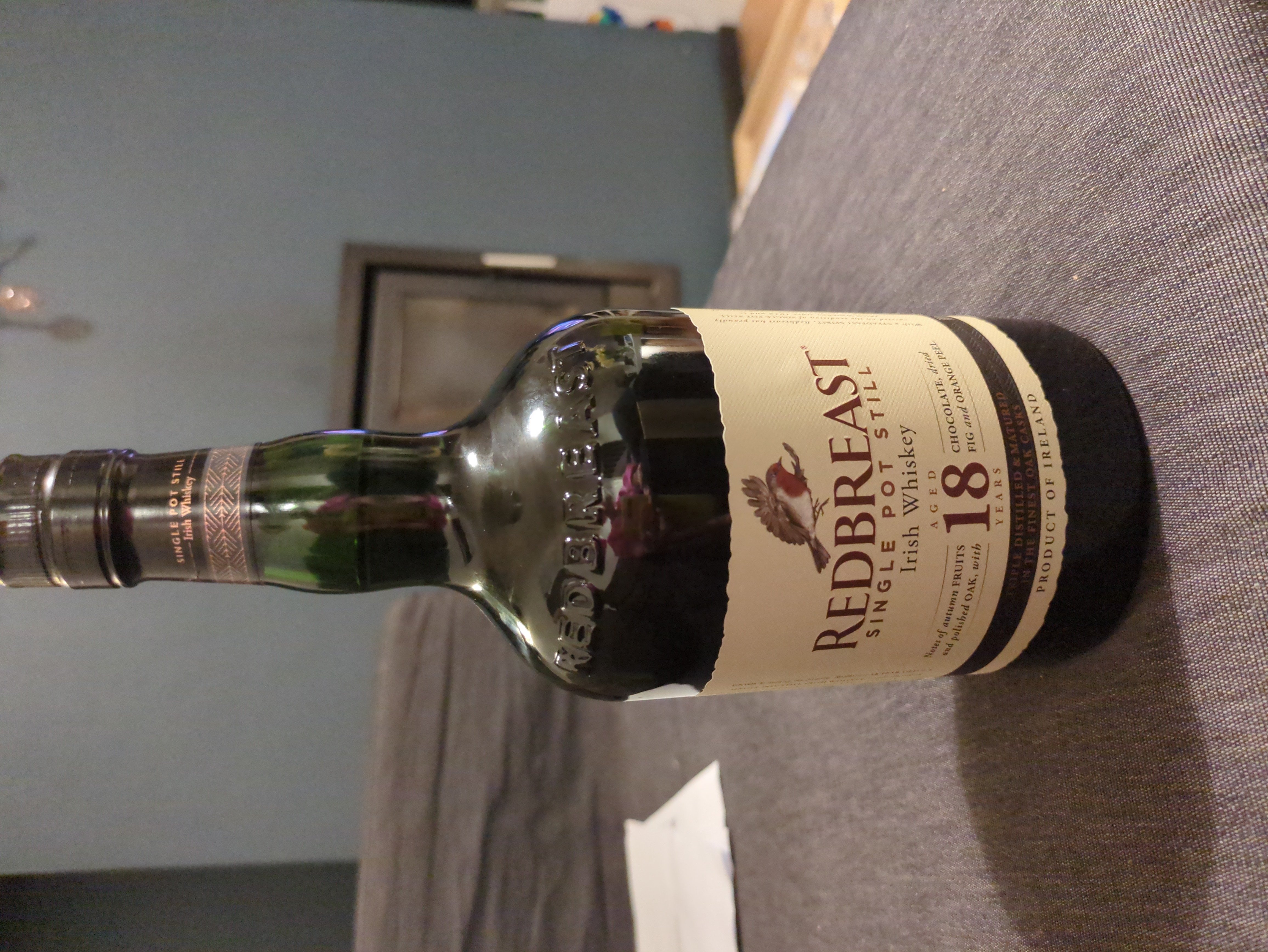 - Redbreast single pot Irish whiskey aged 18 years. Bored of autumn fruits and polished oak with chocolate dried fig and orange peel. Triple distilled & matured in the finest oak casks Product of Ireland