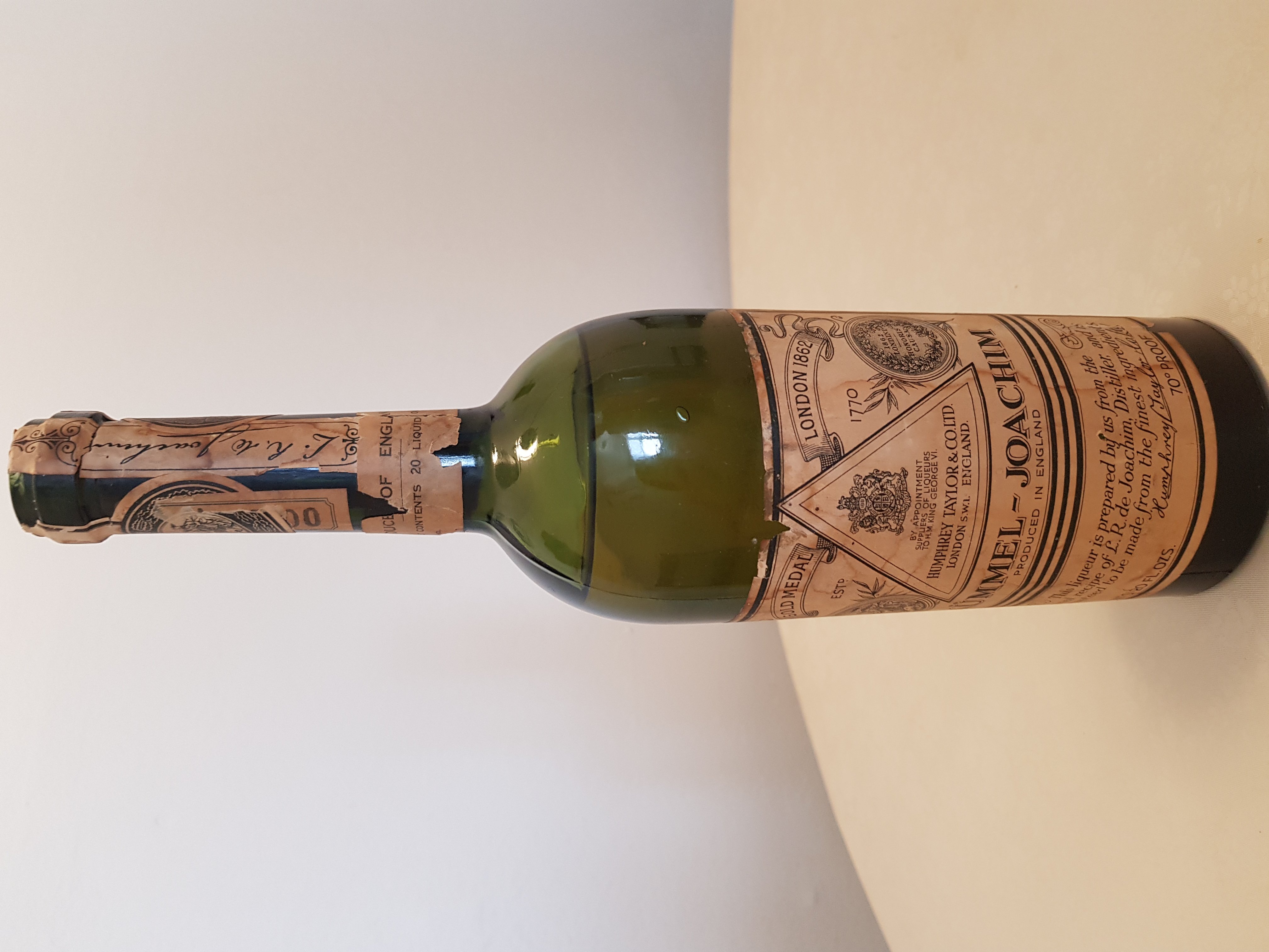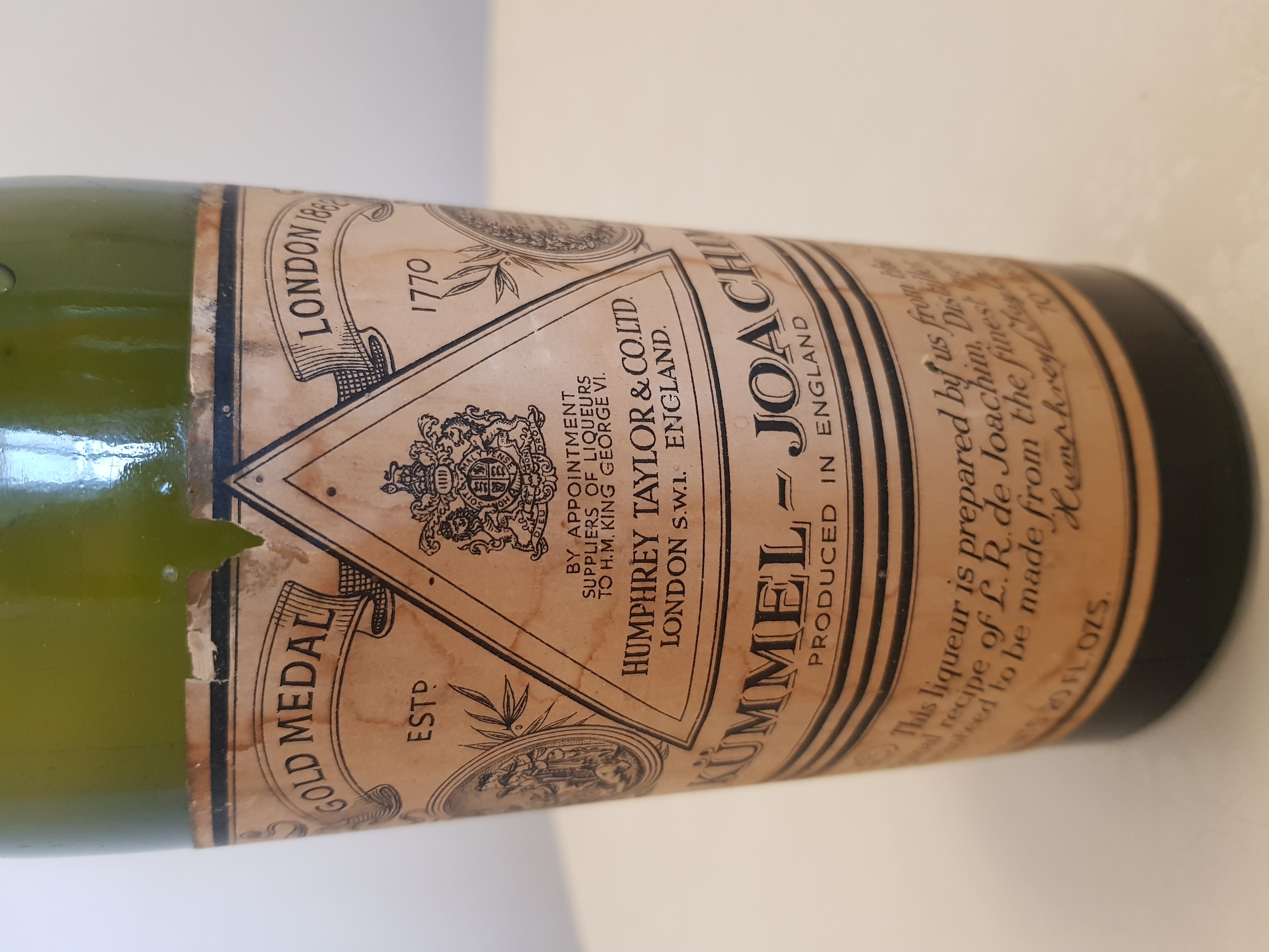 - Gold Medal London 1862 EST 1770 Humphrey Taylor &CO.LTD London swl London Kummel - Joachim Produced in England 20 FL.OZS.