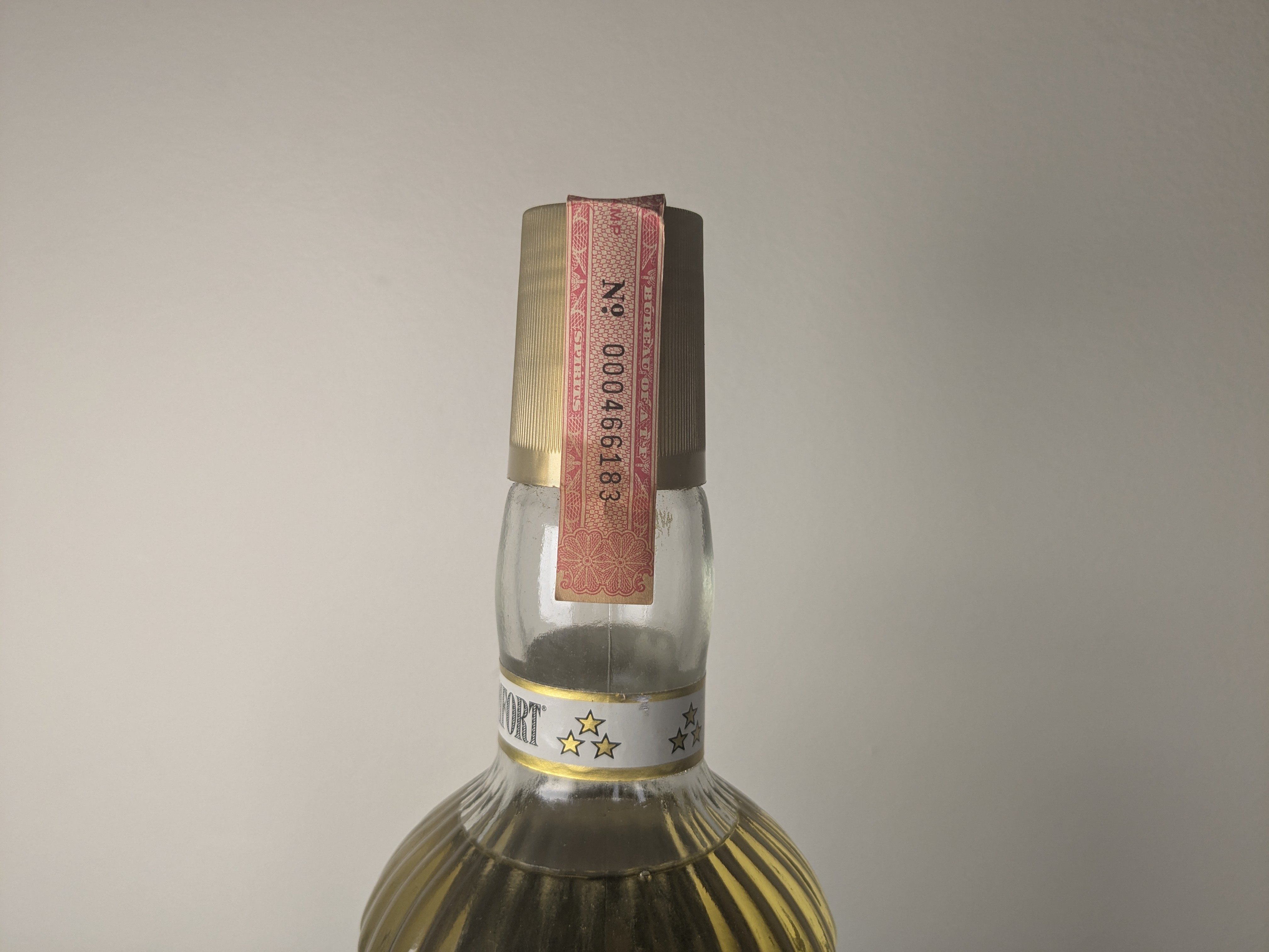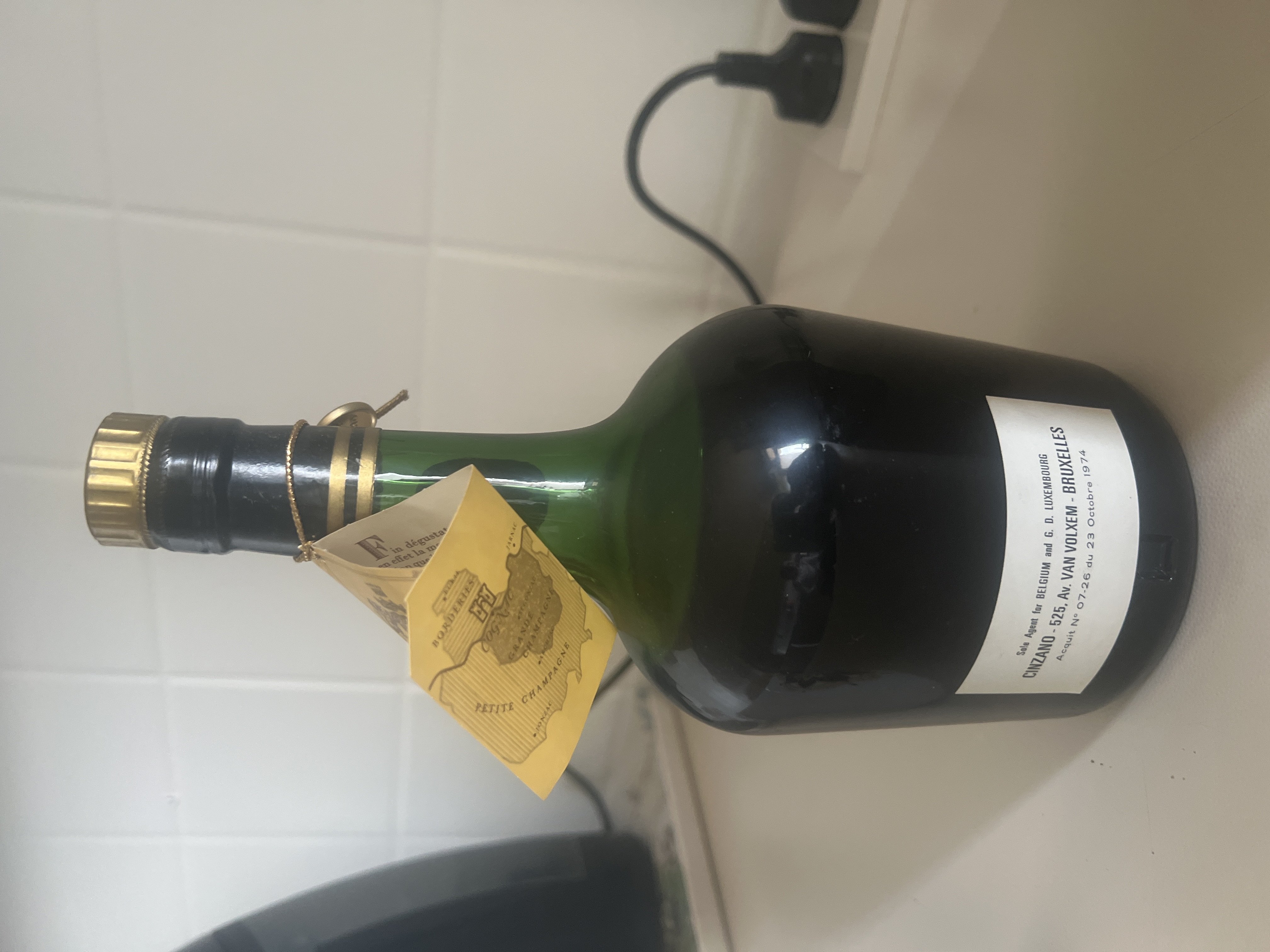 - A bottle was given to me for my birthday by my relative, whose great-grandfather remained to live in Italy after the end of World War II. P.S. On the bottle there is an Italian tax medallion (analogous to a modern excise stamp) dating back to the time of Mussolini - 1933-1944.