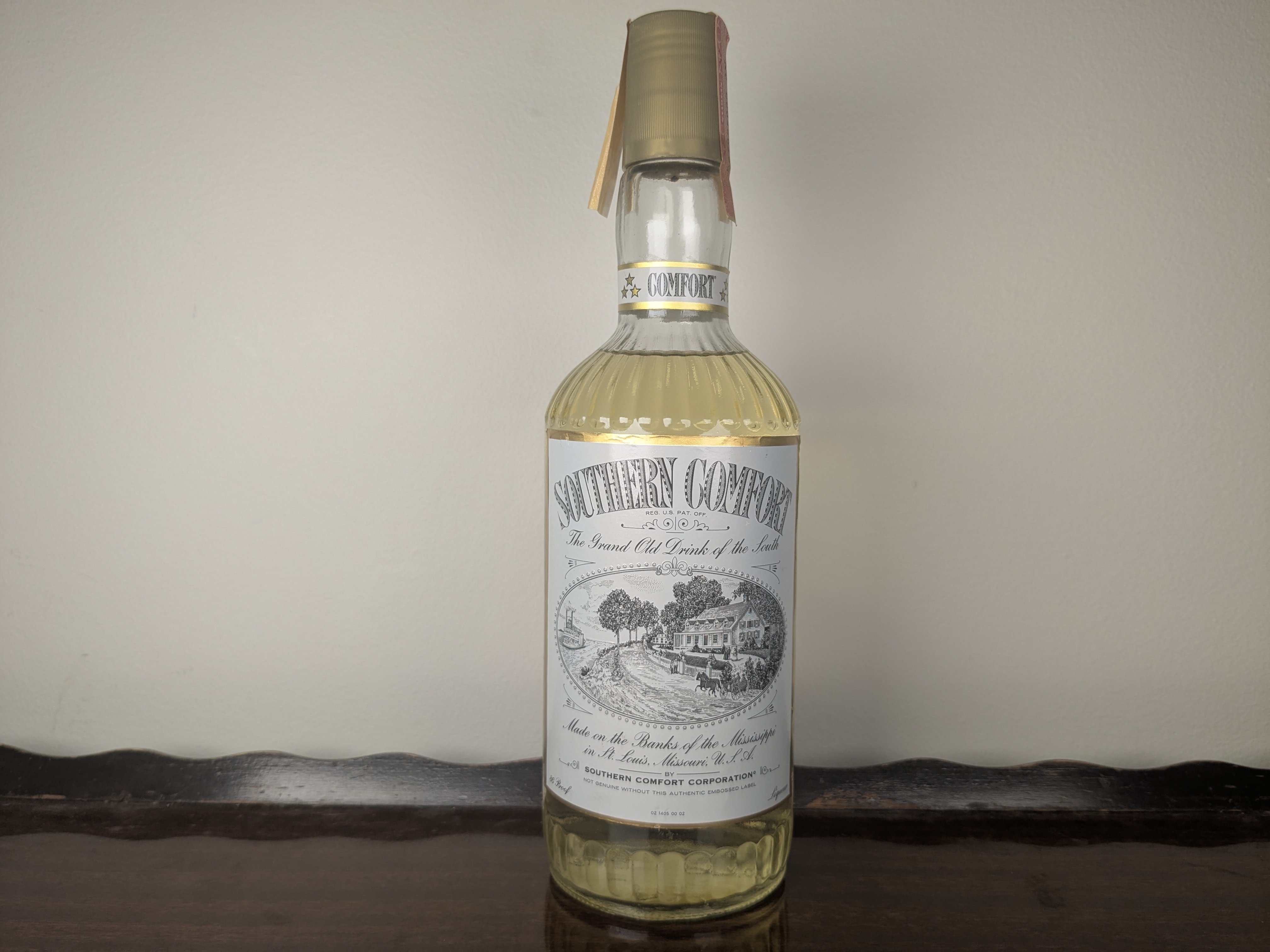 - Southern Comfort The Grand Old Drink of the South Made on the Banks of the Mississippi In St. Louis Missouri, USA by Southern Comfort Corporation Not Genuine without this authentic embossed label