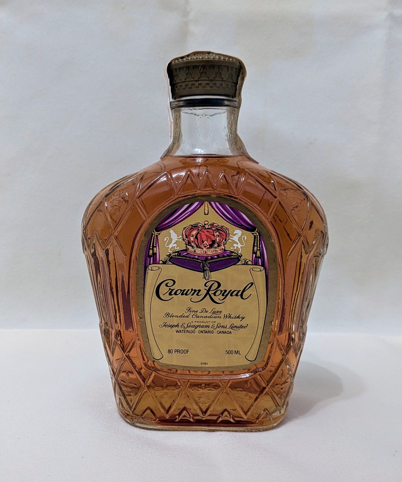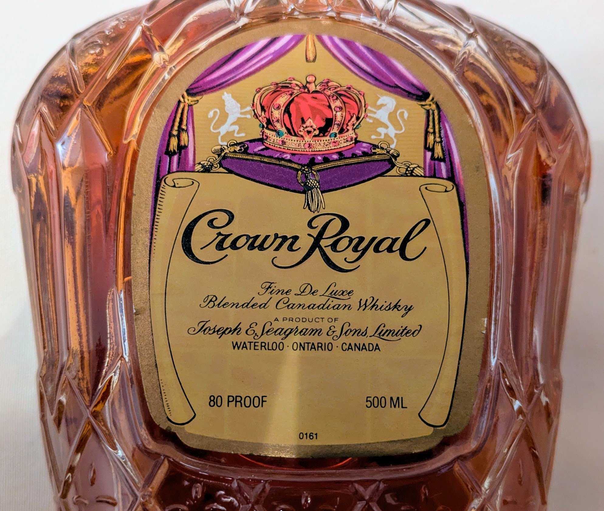 - Crown Royal, Fine de Luxe, Blended Canadian Whiskey, Product of, Joseph & Seagram & Sons Limited, Waterloo Ontario Canada, 80 PROOF, 500ml, 0161