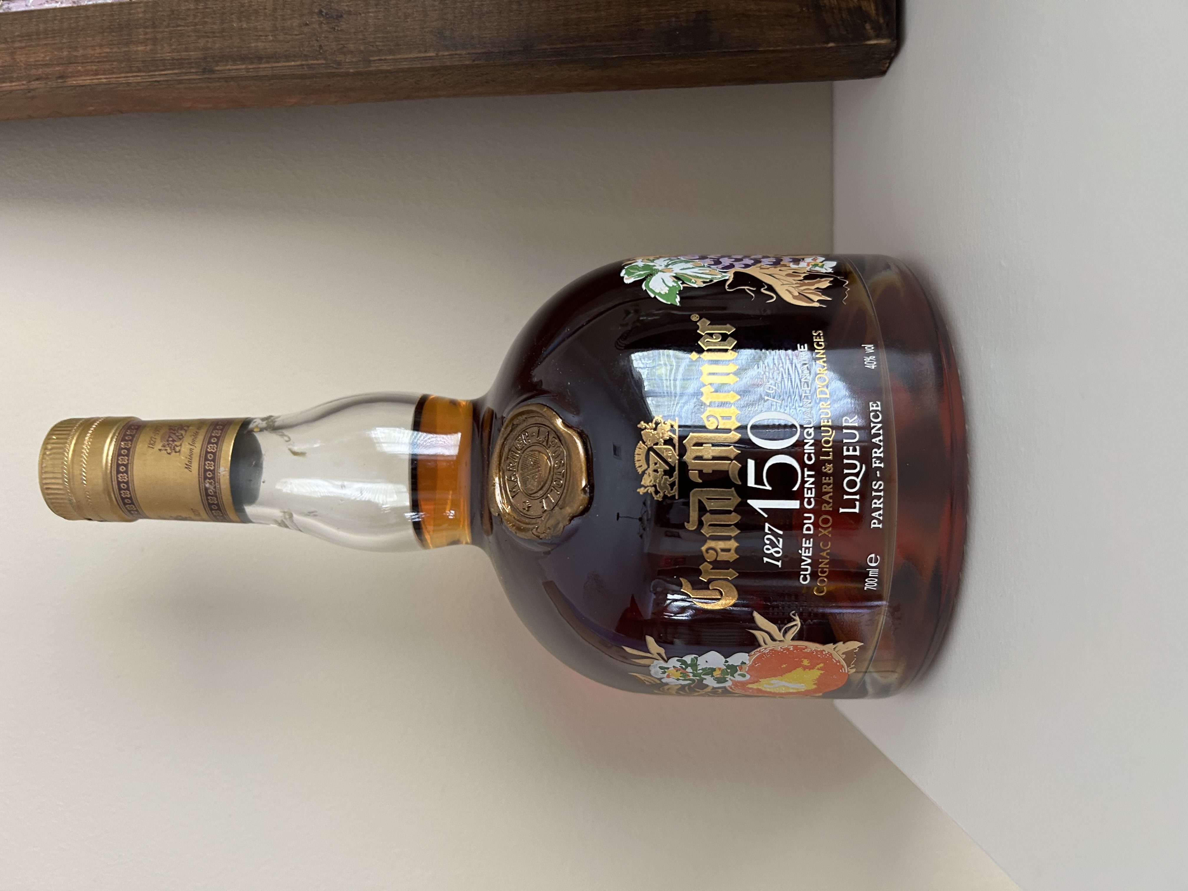 - 1827 150 1977 Cuvee Du Cent Cinquantenaire Cognac XO Rare & Liqueur D'Oranges. Liqueur Paris-France. 700 mL 40% vol. Introduced in 1977, Grand Marnier Cuvee du Cent Cinquantenaire commemorates the 150th Anniversary of the House of Grand Marnier. Cuvee du Cent Cinquantenaire is a flamboyant blend of rare XO cognacs (82%) mainly from Grande Champagne, combined with Citrus Bigaradia orange liqueur (18%). The decoration of the bottle, with its unique Art Nouveaux style, pays tribute to a GRAND MARNIER limited edition bottle created in 1927. Cuvee du Cent Cinquantenaire may be enjoyed either neat or on ice for a favourable drinking experience.