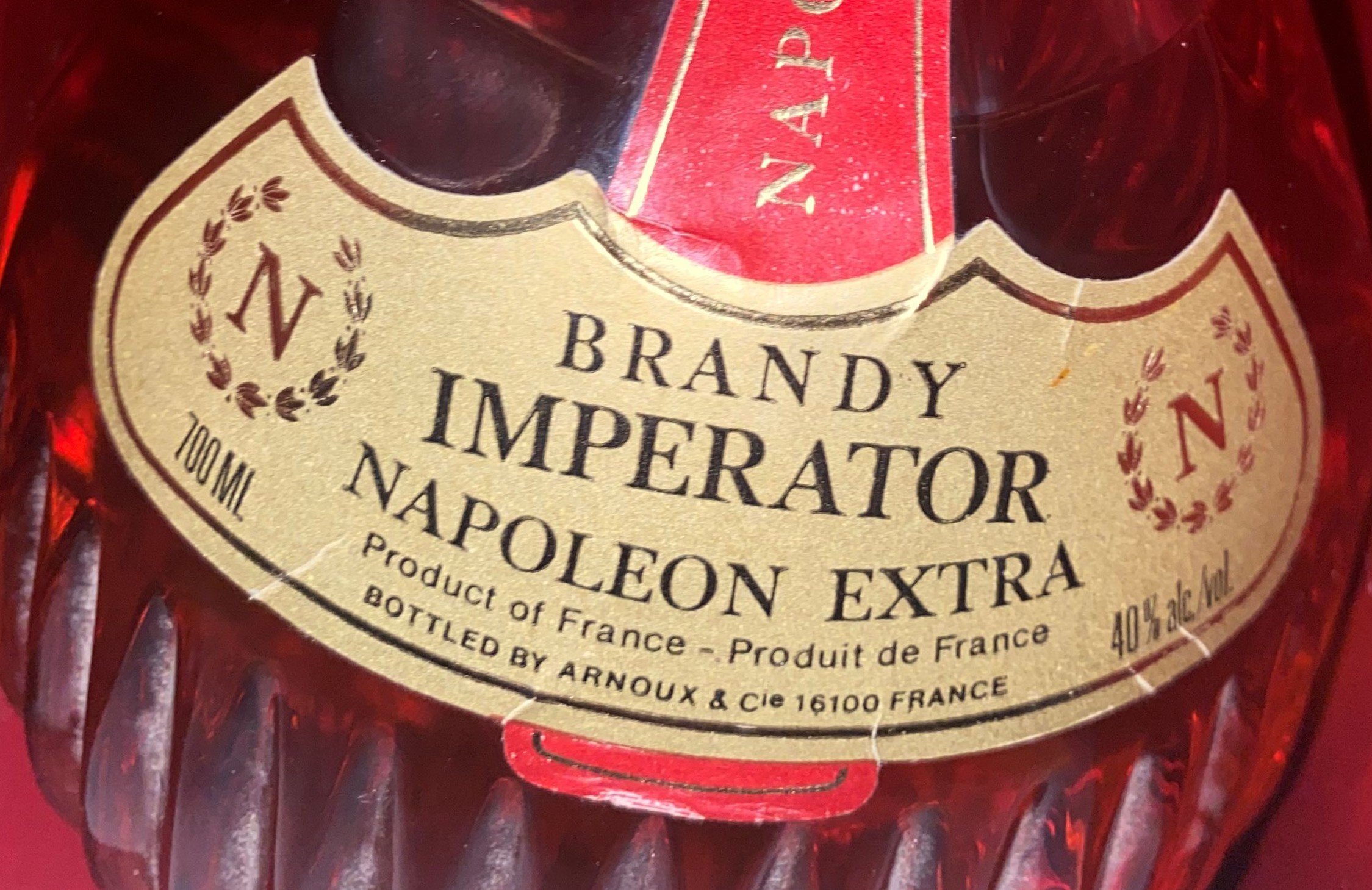 - Brandy Imperator Napoleon Extra Product of France - Produit de France 700 ML Bottled by Arnoux & Cie 16100 France 40% alc/vol