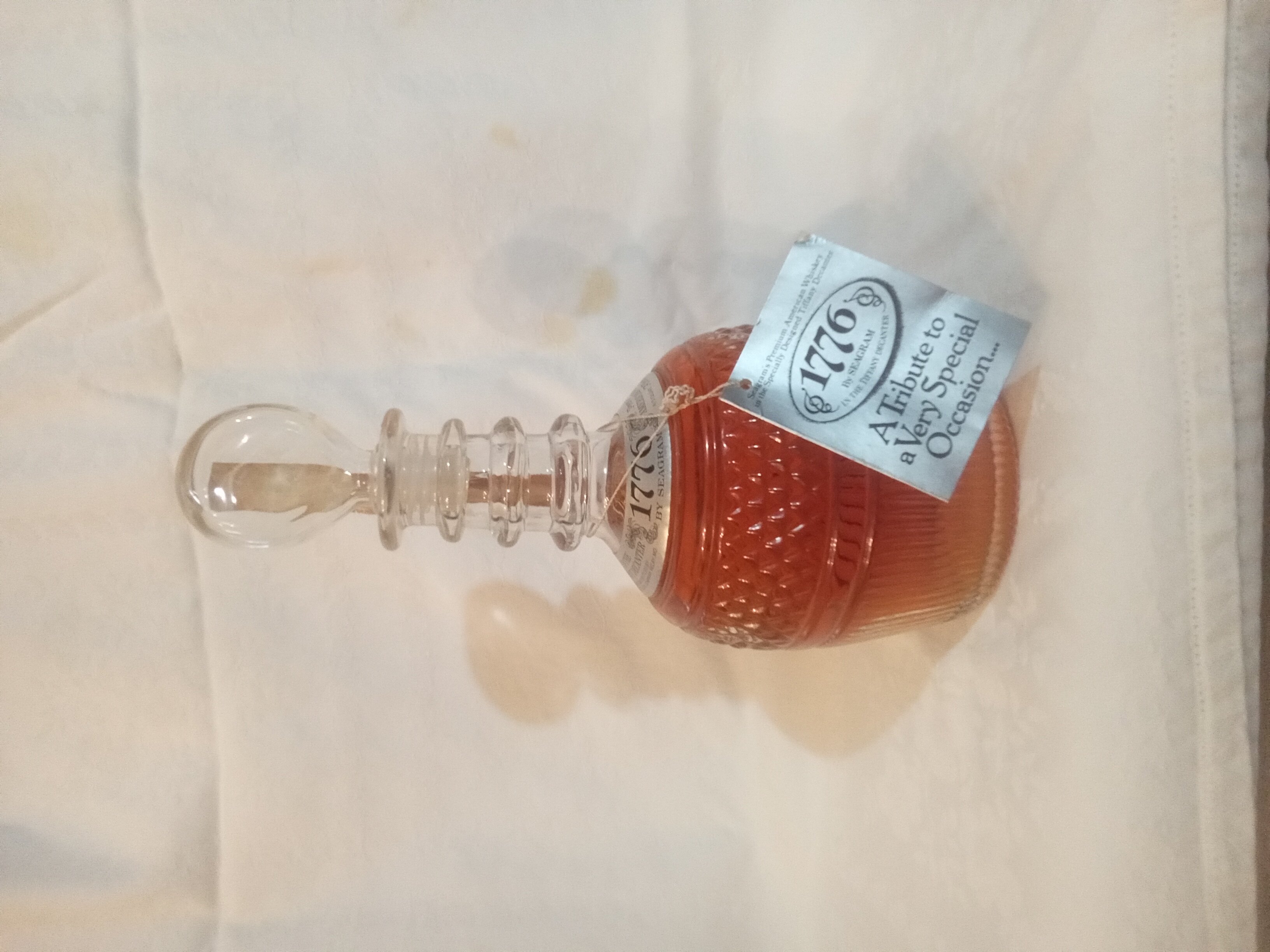 - IN THE TIFFANY DECANTER BLENDED AND BOTTLED BY SEAGRAM DISTILLERS COMPANY RELAY, MD. 1776 BY SEAGRAM, PREMIUM AMERICAN WHISKEY, 4/5 QUART A BLEND 80 PROOF