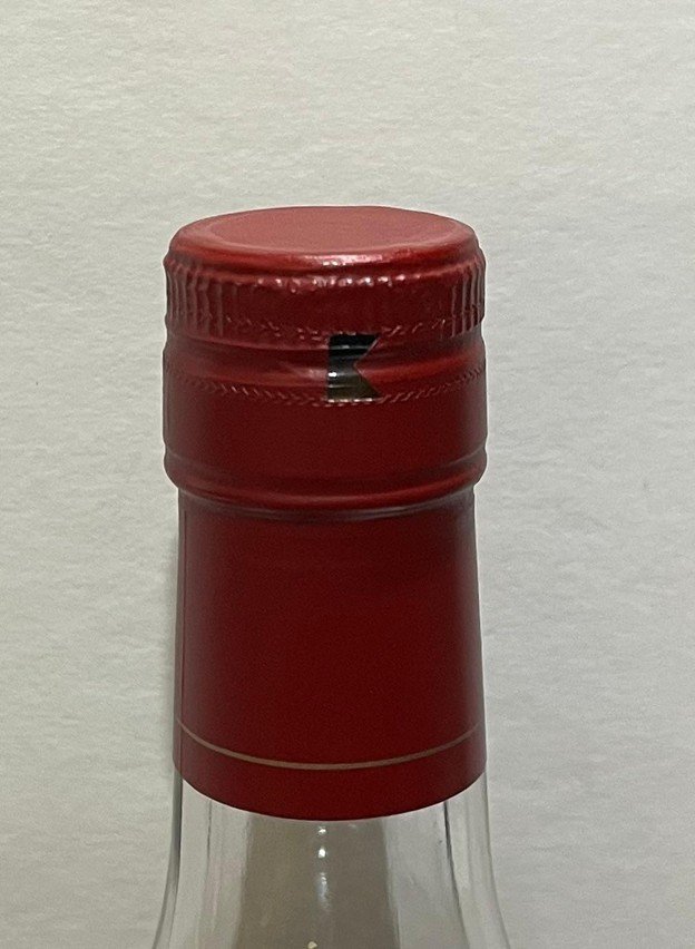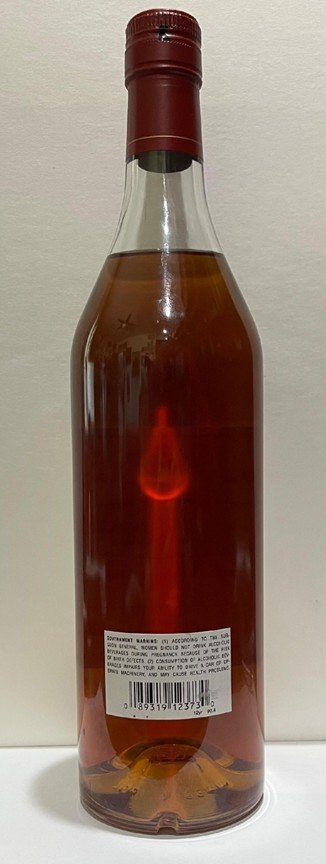 - 1) Text on label: Neck label (front): RÉMY MARTIN FINE CHAMPAGNE COGNAC Bottle NO 97368H Main body label (front): RÉMY MARTIN X.O EXCELLENCE Back label: WARNING (1) ACCORDING TO THE SURGEON GENERAL, WOMEN SHOULD NOT DRINK ALCOHOLIC BEVERAGES DURING PREGNANCY BECAUSE OF THE RISK OF BIRTH DEFECTS. (2) CONSUMPTION OF ALCOHOLIC BEVERAGES IMPAIRS YOUR ABILITY TO DRIVE A CAR OR OPERATE MACHINERY, AND MAY CAUSE HEALTH PROBLEMS. PRODUCED BY RÉMY COINTREAU USA, INC., NEW YORK, N.Y. PRODUIT DE FRANCE RÉMY COINTREAU – COGNAC X.O EXCELLENCE RÉMY MARTIN FINE CHAMPAGNE COGNAC "THE TRUE PLEASURE OF TASTING" Enjoy its velvet texture, its myriad of aromas, its exceptional richness. A Cognac for people who enjoy and demand U 24 A 00130. Contains only Grande and Petite Champagne grapes from the finest cru of Cognac. 750 ml PRODUCT OF FRANCE 40% ALC./VOL. Petite Champagne Grande Champagne THE MAP OF THE 6 COGNAC GROWTH AREAS Cork/Capsule (top): RÉMY MARTIN FINE CHAMPAGNE COGNAC (small centaur emblem in center) 2) Visual elements: Emblem: A gold Centaur (archer) is prominently featured on both the neck label and the main circular label on the front. A similar emblem is embossed on the top of the cork/capsule. Bottle Shape: The bottle has a distinctive "scalloped" or "shell-like" design, broad and multi-faceted at the base, tapering to a short neck. Labels: Neck label: Deep red with a subtle patterned texture, featuring gold text and borders. Main label (front): Circular, deep red with a matching subtle texture, gold text, and a thick gold border. Back label: Rectangular, white with black text, and includes a small graphic map of the Cognac region. Cork/Capsule: The top of the cork/capsule is deep red with gold text around its perimeter and a gold rim, featuring an embossed centaur emblem in the center. The neck below the capsule has a gold braided cord detail. Display Case: The bottle is shown inside a hexagonal wooden and glass display case. The base of the case has two small gold plaques, one stating "LOUIS XIII" and another below it reading "REMY MARTIN". Font Styles: Predominantly serif fonts are used for brand names and key descriptors ("RÉMY MARTIN", "X.O", "EXCELLENCE", "FINE CHAMPAGNE COGNAC"). A cursive/script font is used for the word "Bottle" on the neck label. Some smaller text on the back label appears to be a sans-serif font. 3) Fill level estimate: well above shoulder into neck: great