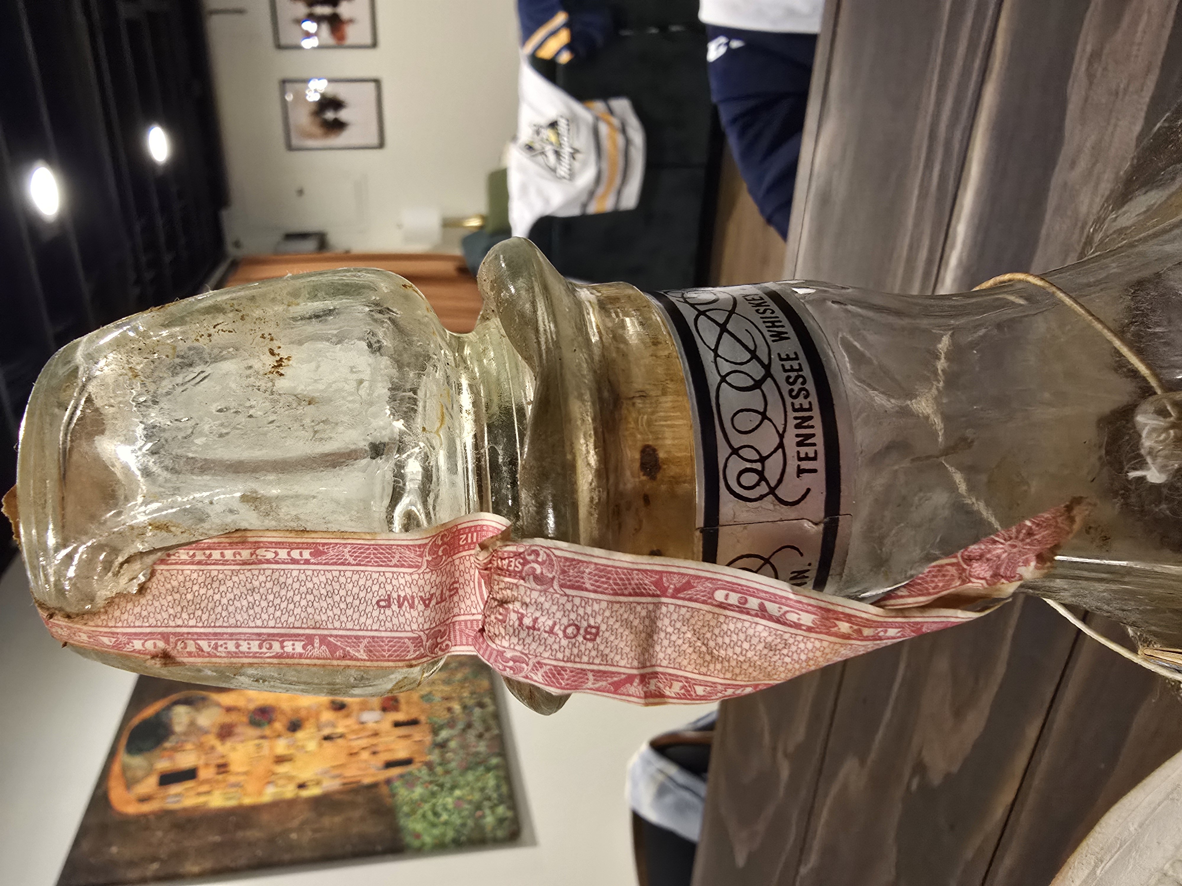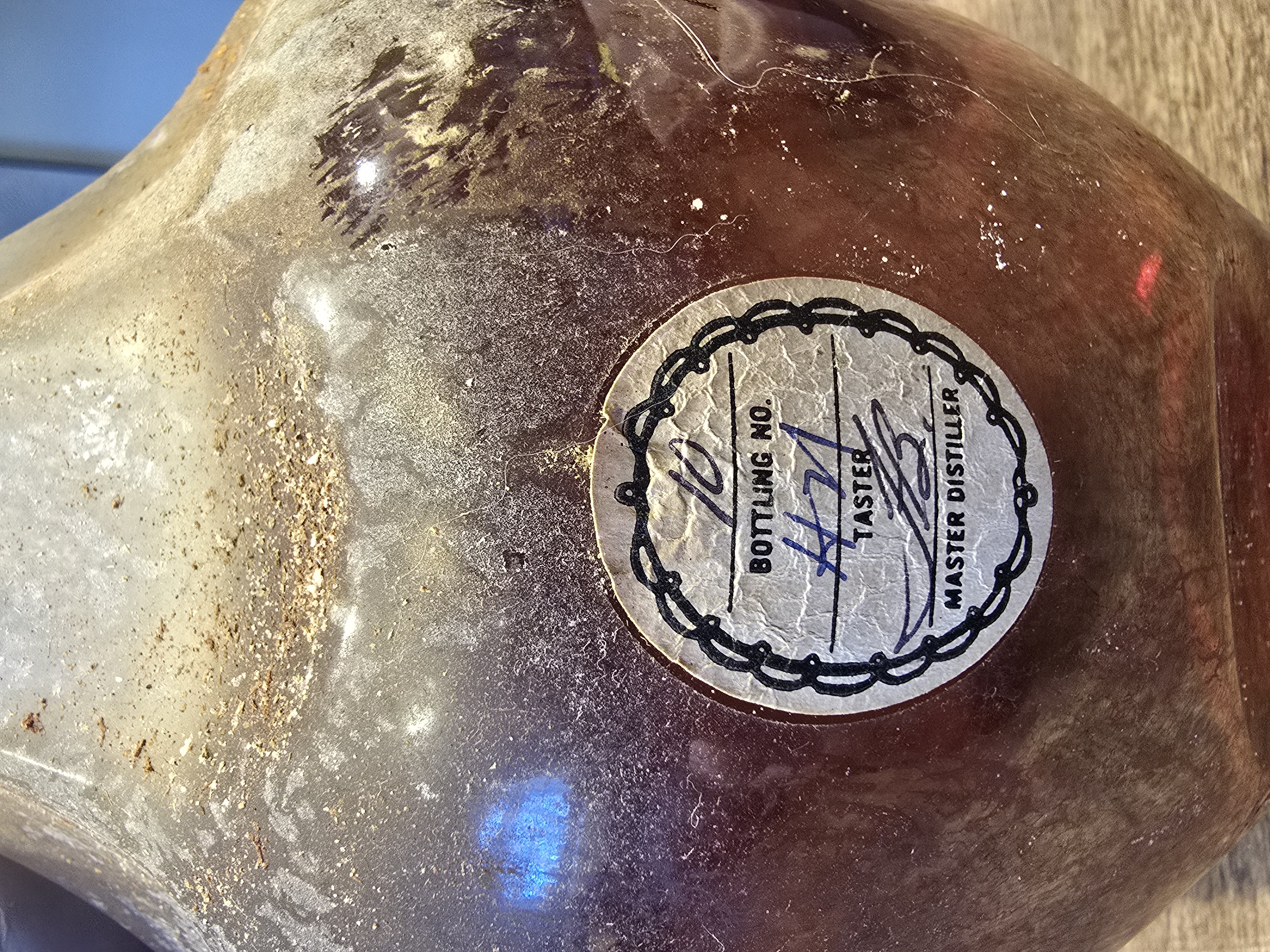 - This bottle has been sitting in my parents dark cold basement for the past 45 years. The bottle is very dusty. The hang tag and seal are in pretty rough shape but they're is no loss of whiskey.