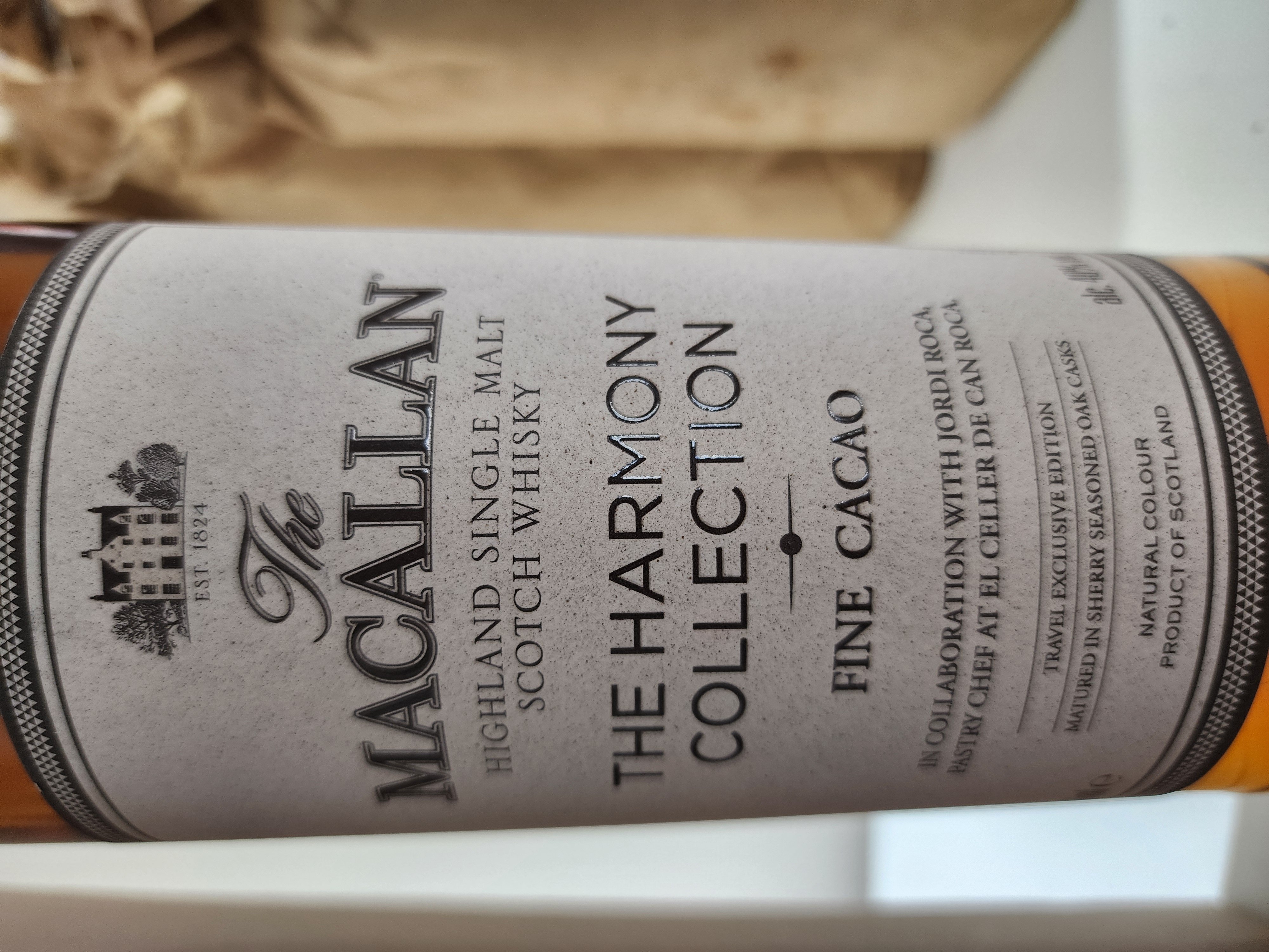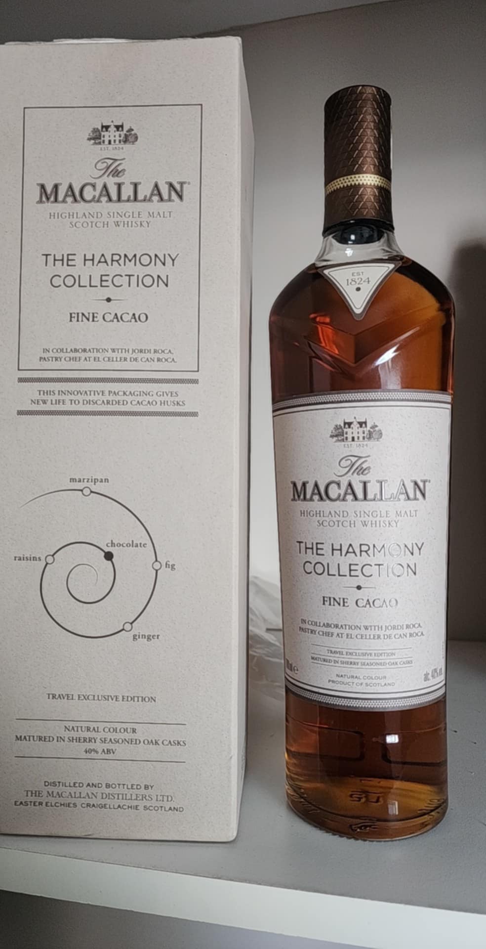- The macallan highland scoth single malt scotch whisky Harmony collection Fine Cacao. In collaboration with Jordi Roca, PastryChef at El Celler de Can Roca. This Innovative Gives New Life to Discarded Cacao Husks Mattured In Sherry Seasoned Oak Casks 40%Abv